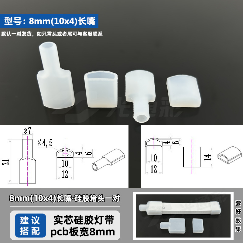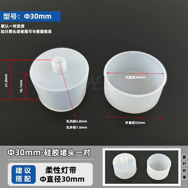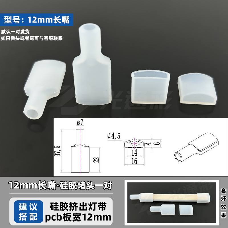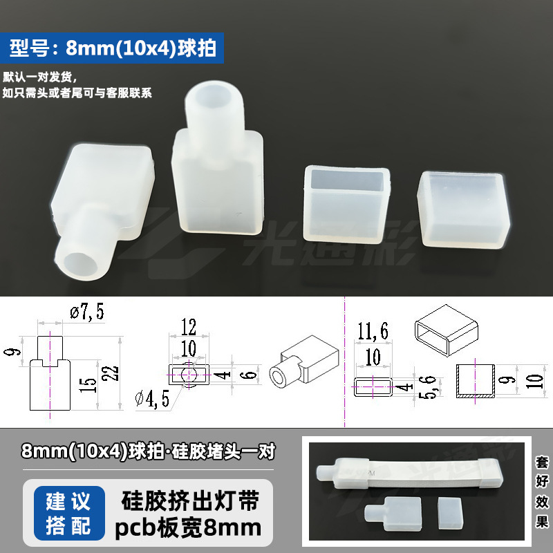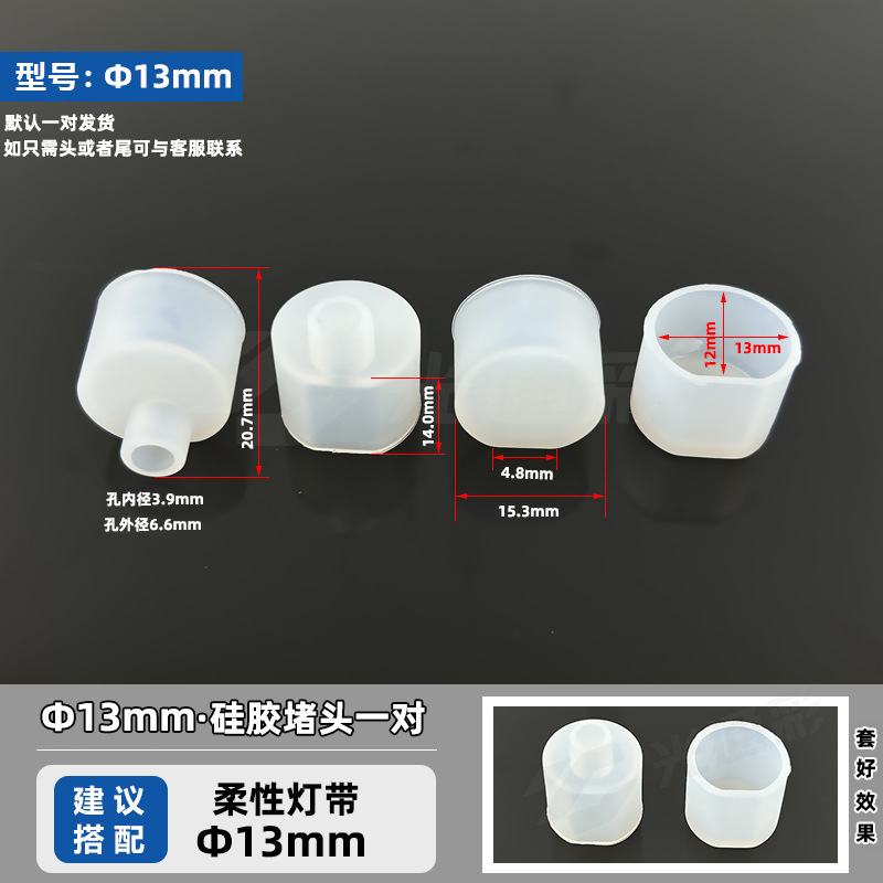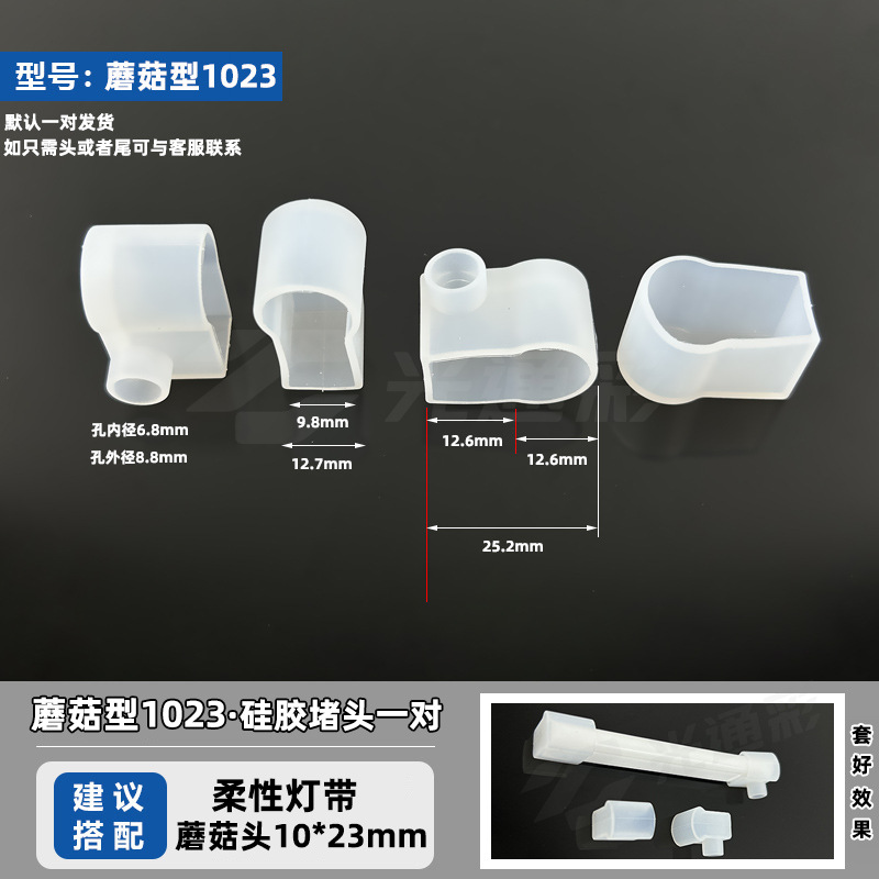LED硅胶灯带堵头方形/圆形/直出/侧出/长嘴球拍尾堵霓虹灯带尾塞