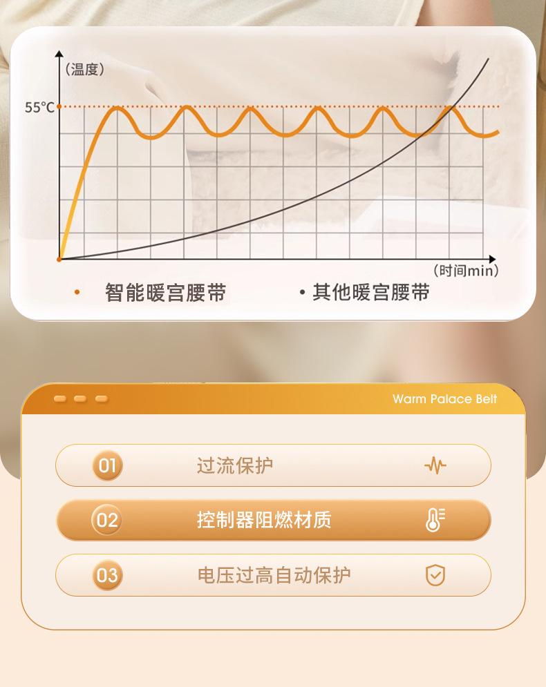 Умный нагревательный пояс с цифровым дисплеем для облегчения менструальной боли, менструального горячего компресса и пояс для защиты талии для женщин.