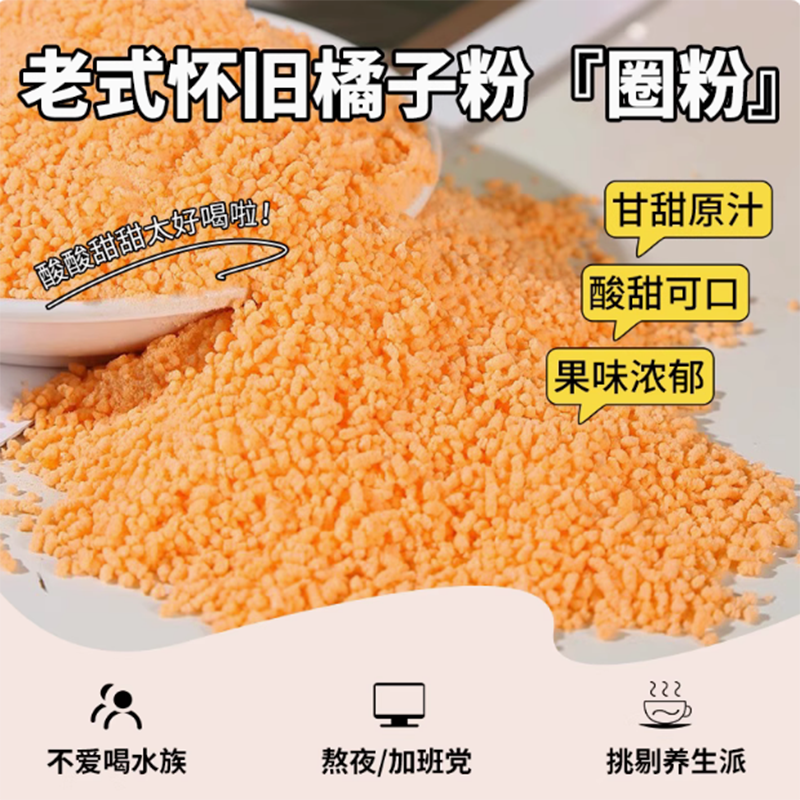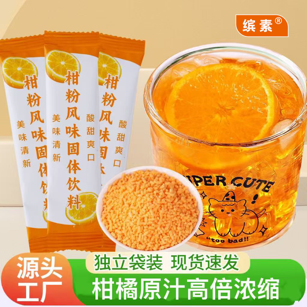 Оранжевый порошковый напиток, старый бренд поколения после 80-х годов, настоящий старомодный твердый напиток из порошка апельсина, фруктовый чайный напиток из порошка цитрусовых.