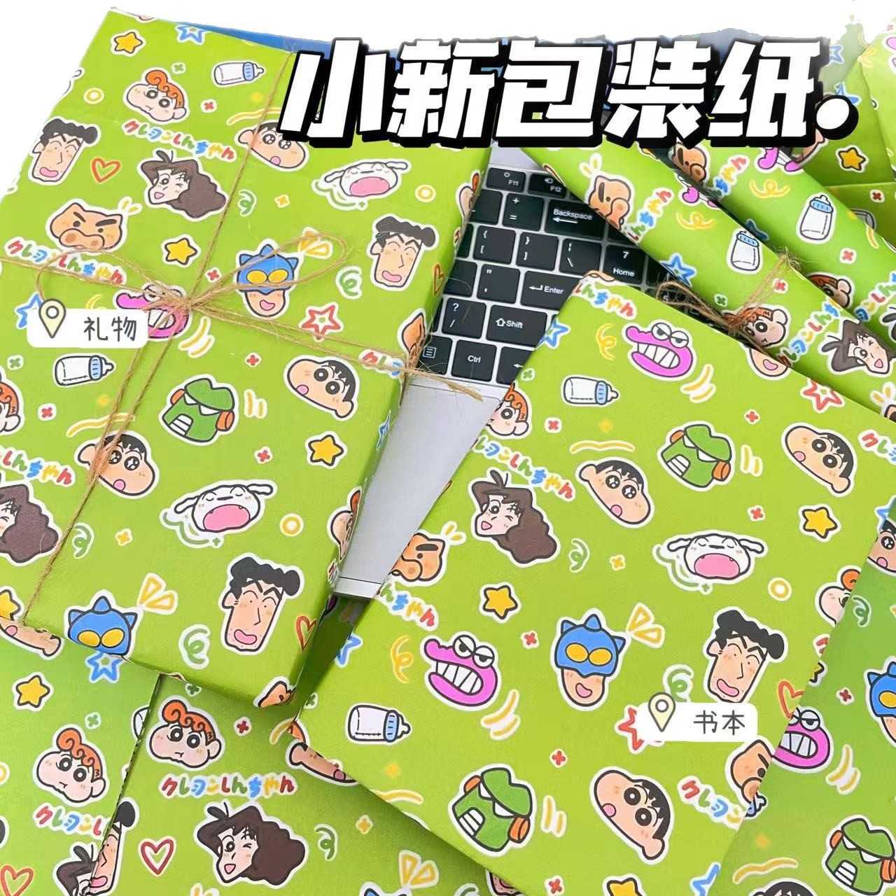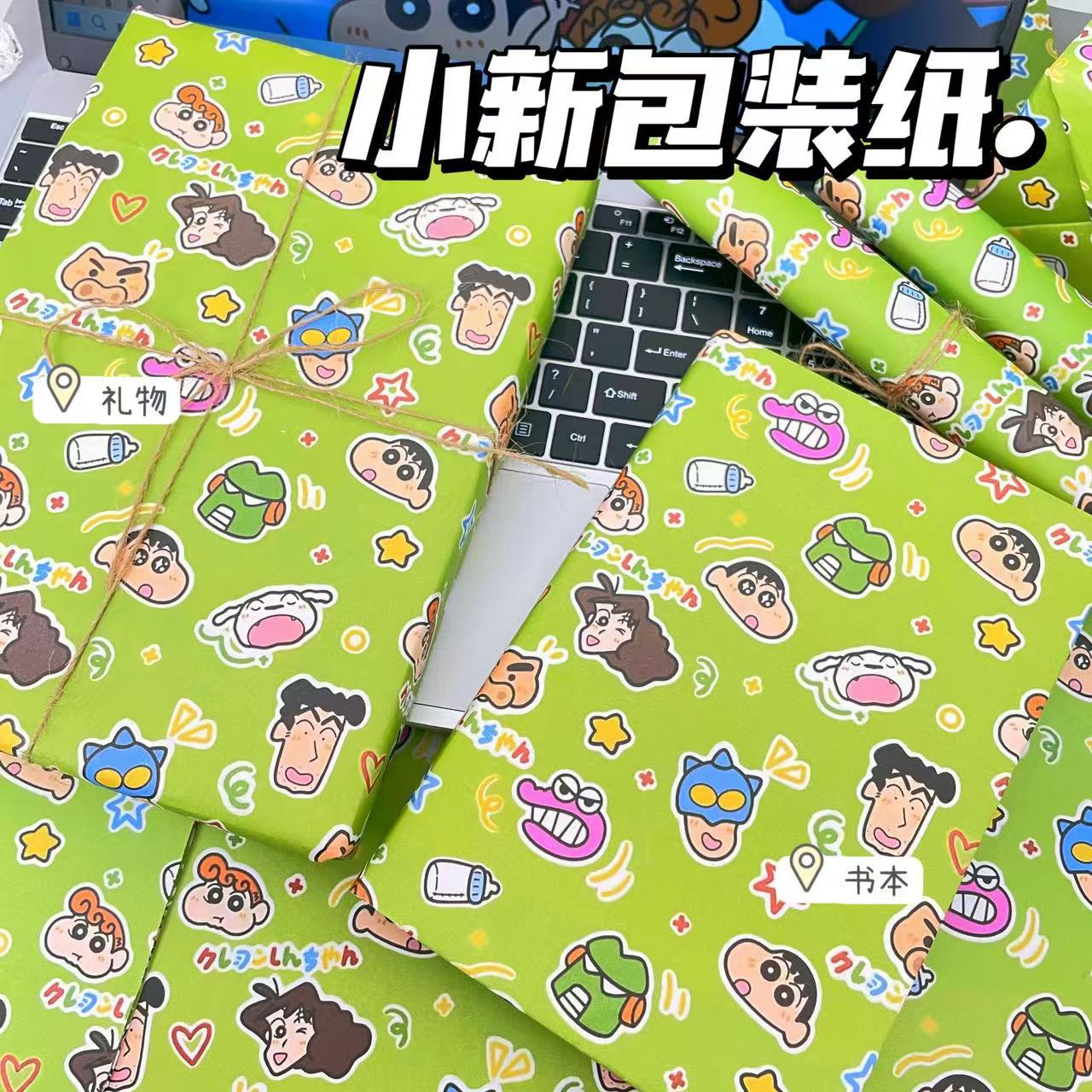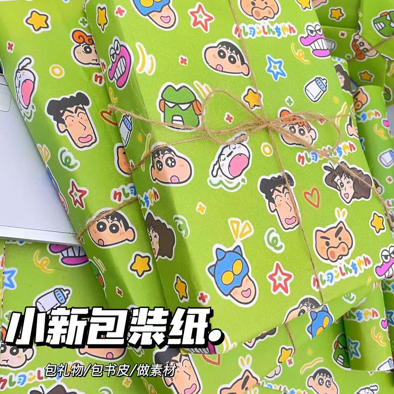Милая мультяшная зеленая оберточная бумага Crayon Shin-chan, обложка книги, оберточная бумага, милая дорогая оберточная бумага