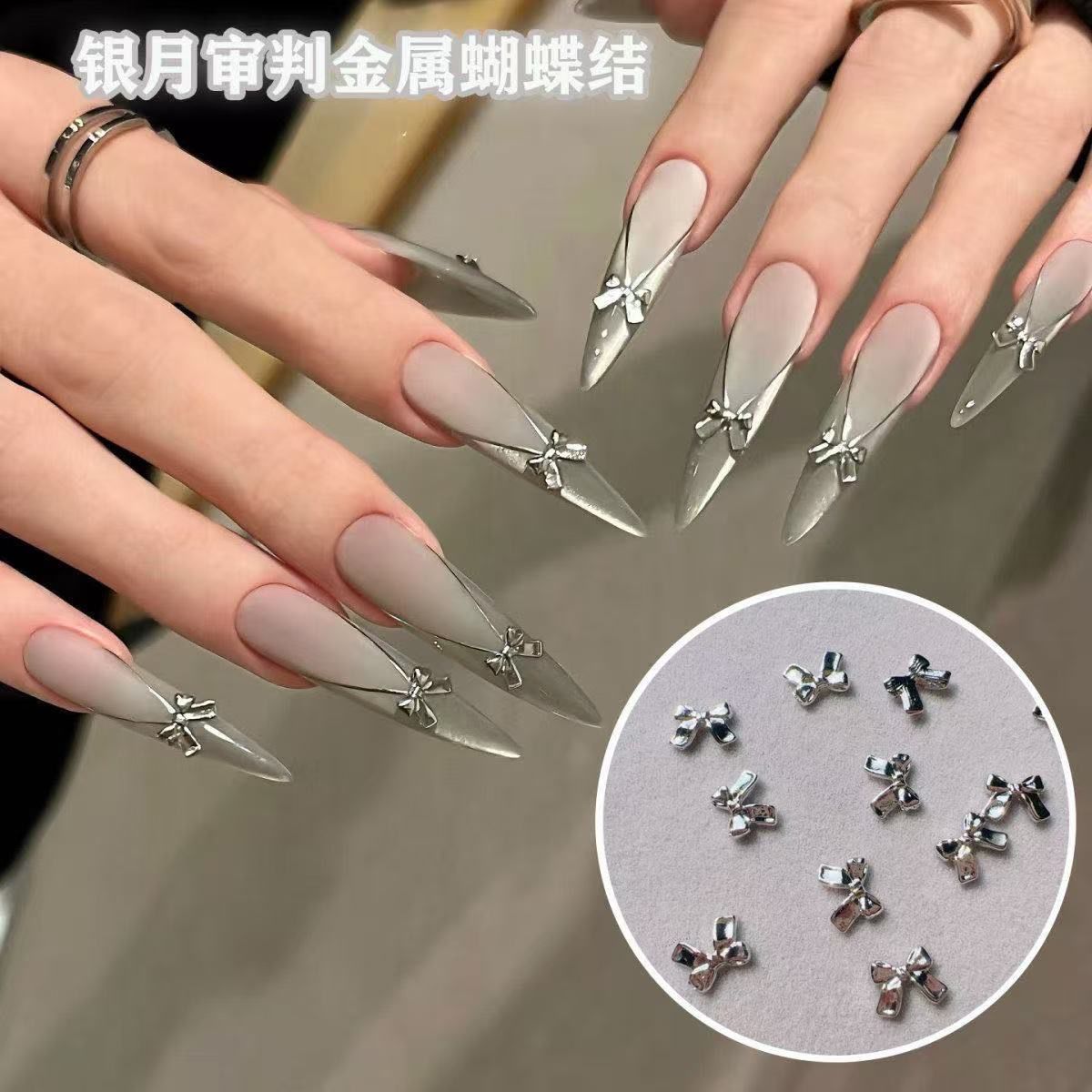 Модные популярные серебряные бантики для нейл-арта, металлические мини-бантики из серебра, украшения для ногтей