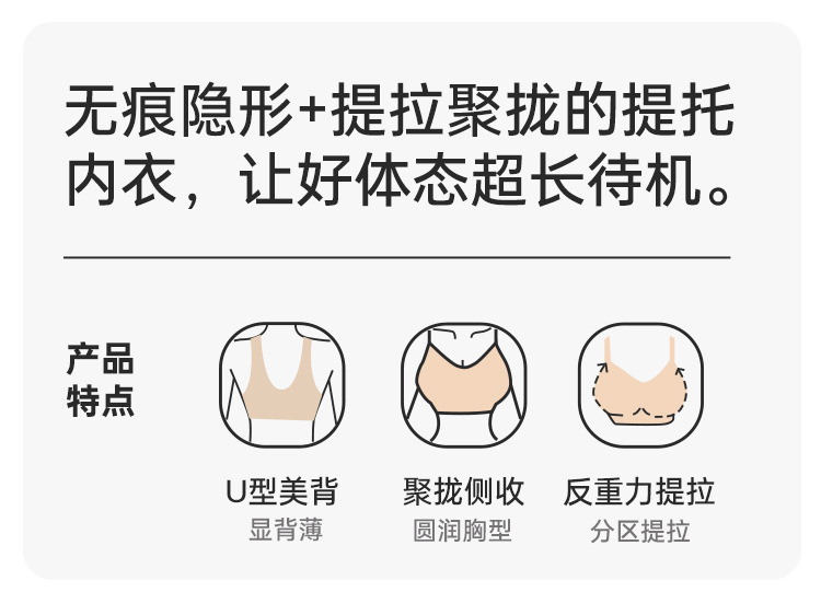 собрать; Бесследный; подталкивать вверх; Регулируемый тип; удобный; Закройте вторичные груди; Большая грудь кажется маленькой