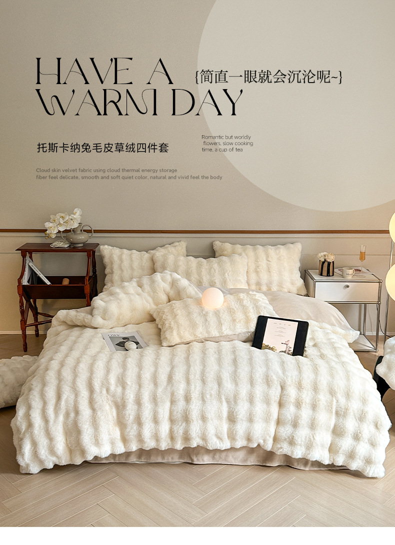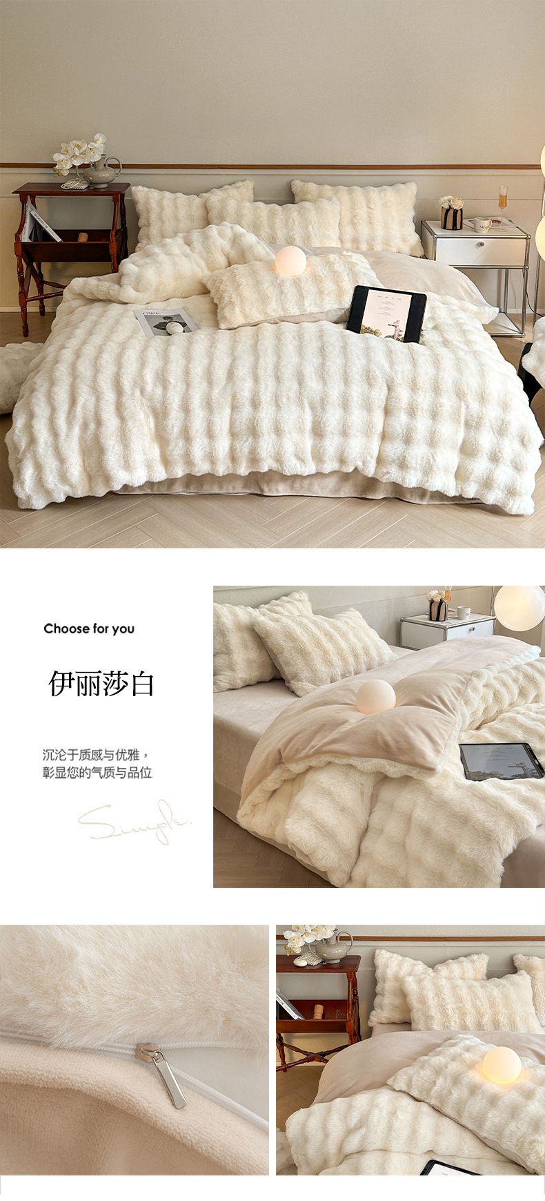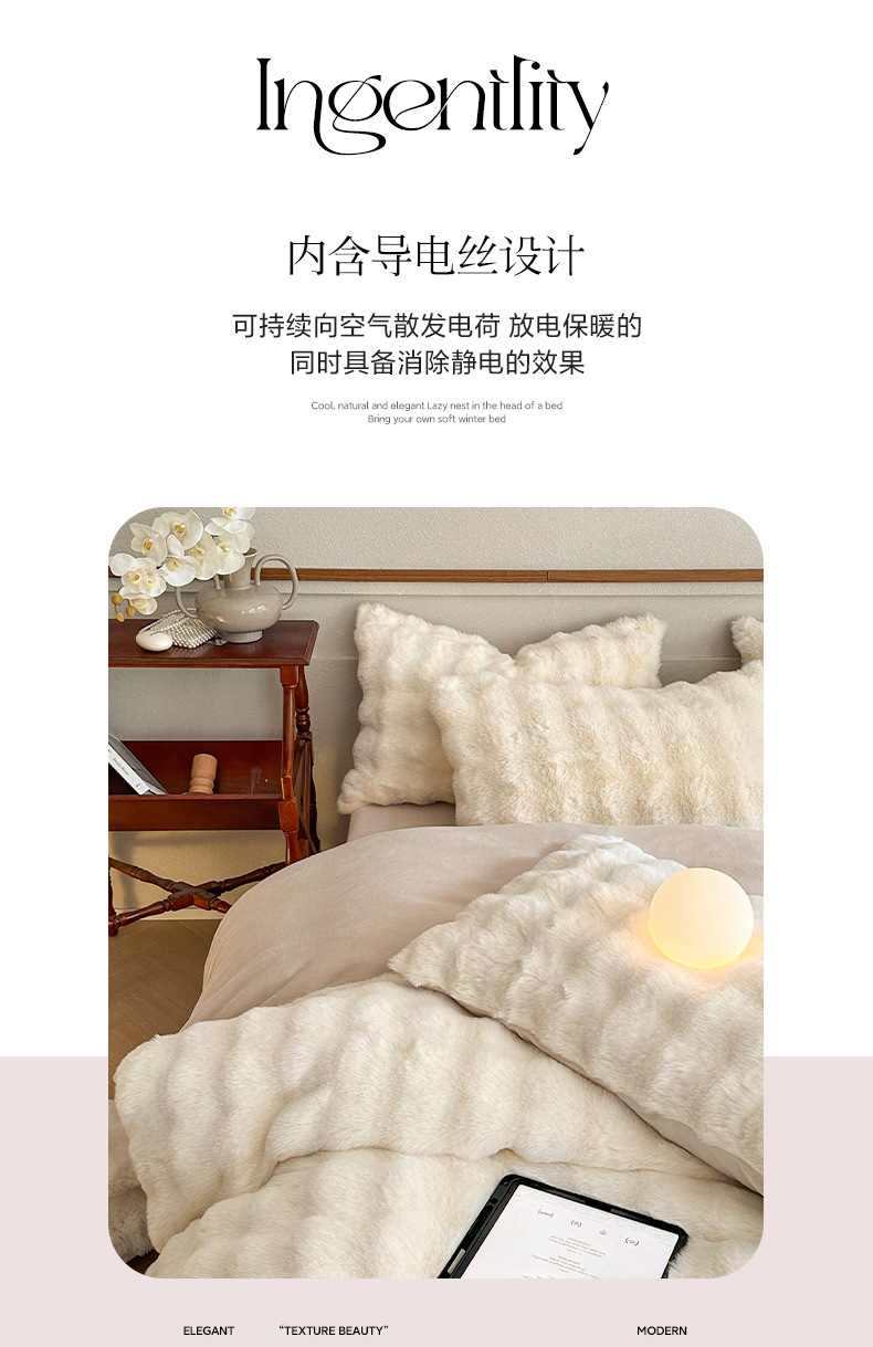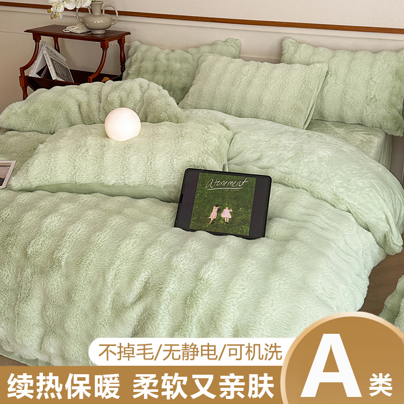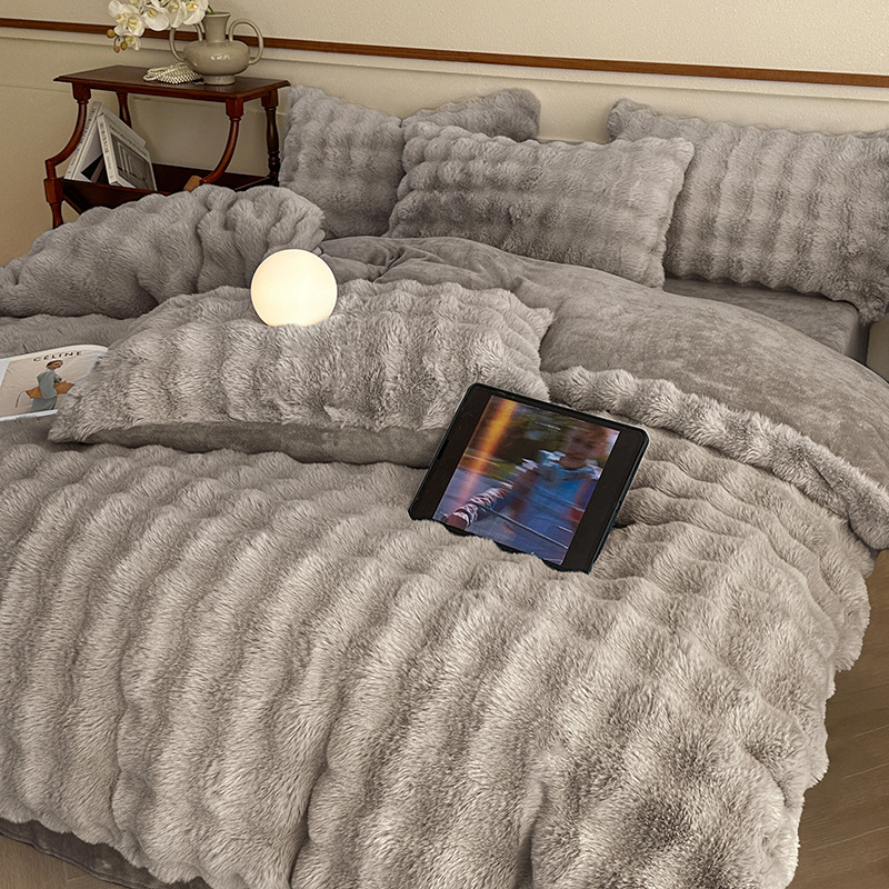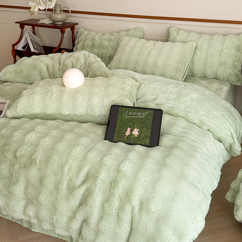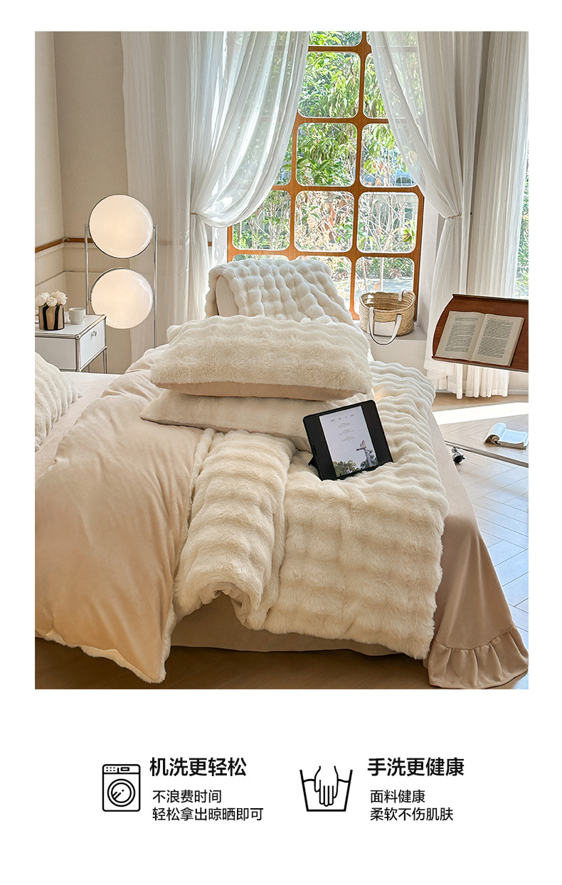 Постельный комплект из молочного вельвета класса «лайт-люкс», 4 предмета, утолщенный, теплый, на зиму