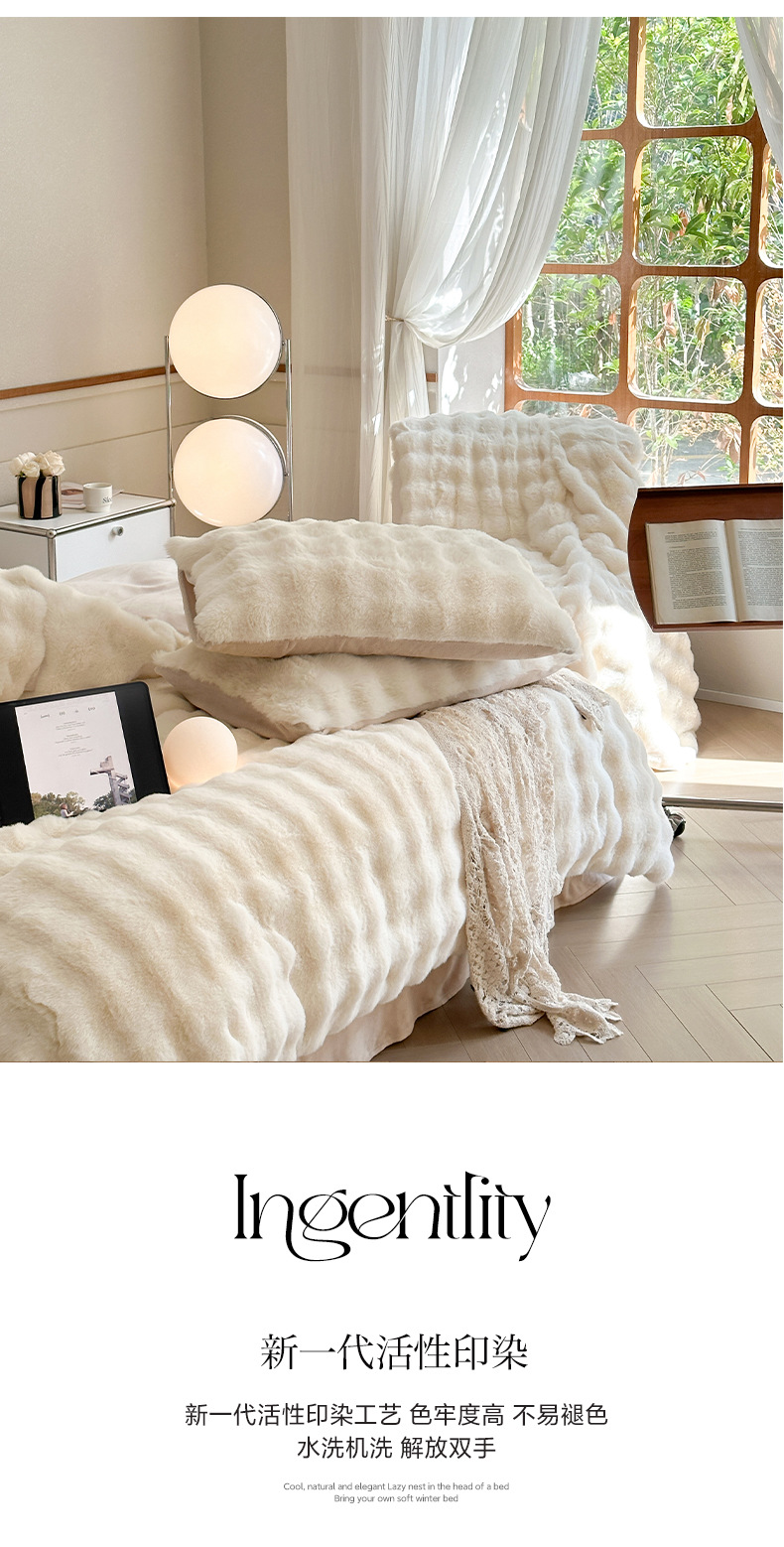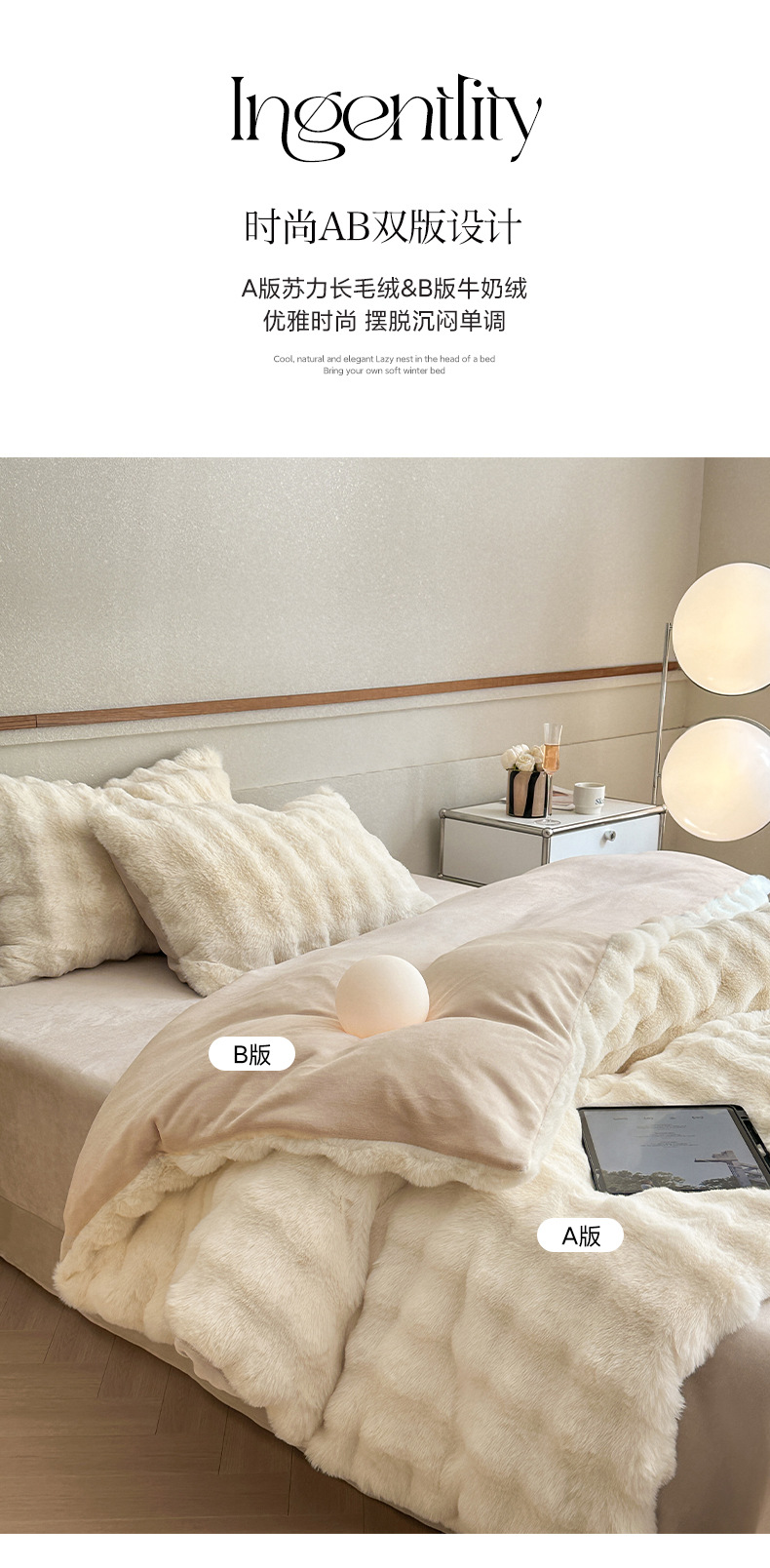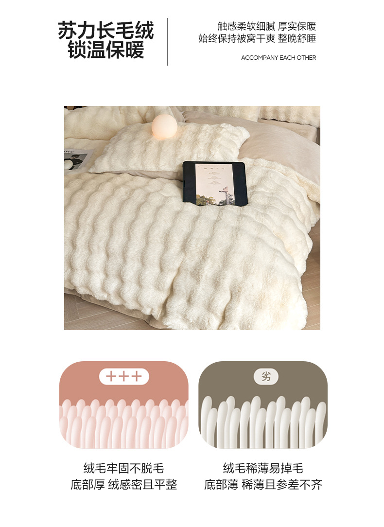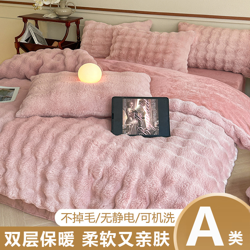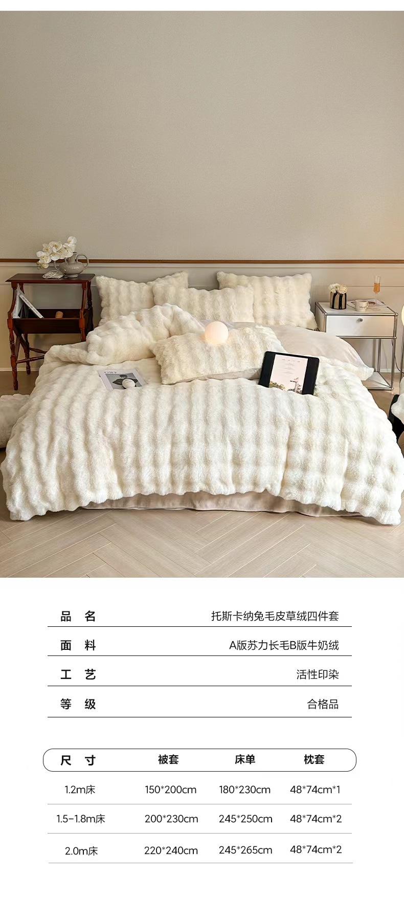 Постельный комплект из молочного вельвета класса «лайт-люкс», 4 предмета, утолщенный, теплый, на зиму