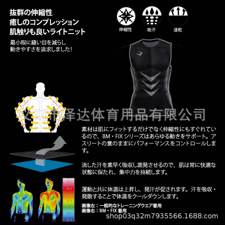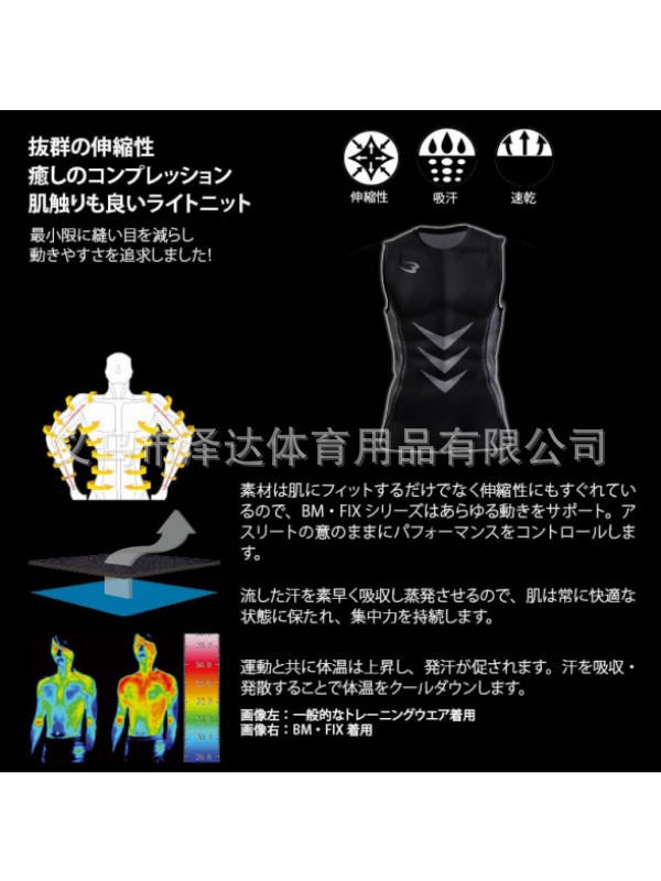 软压缩类型。无腋下接缝的轻薄针织训练服。抗菌除臭:抑制引起难闻气味的细菌的生长并发挥除臭