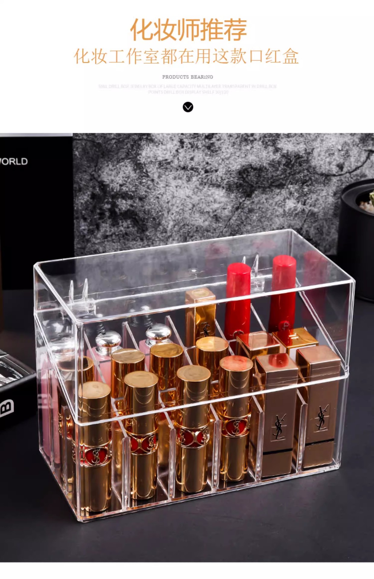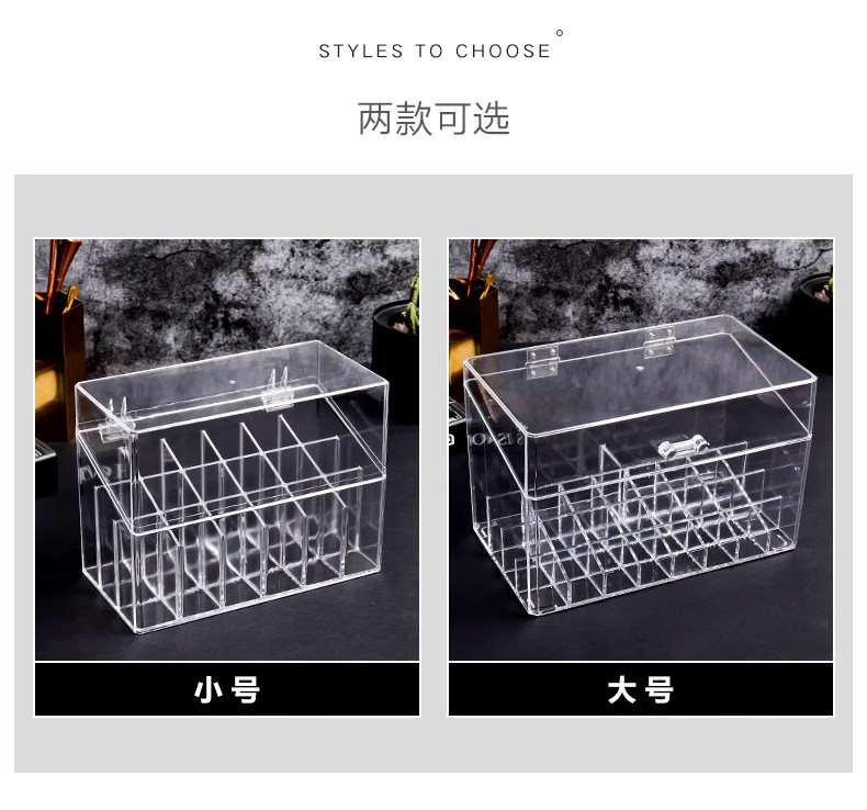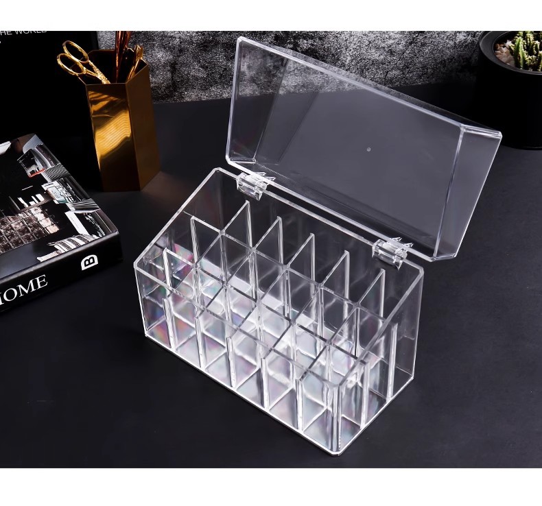 Коробка для губной помады на 18 отделений с крышкой.; Коробка для губной помады на 16 отделений с крышкой.; Коробка для губной помады на 24 отделения с крышкой.; Коробка для губной помады на 36 отделений с крышкой.; Коробка для губной помады с 44 отделениями и крышкой [увеличенная версия]; Многофункциональная коробочка для губной помады с крышкой.; Коробка для губной помады с 9 отделениями и плоским дном без крышки.; Коробка для губной помады с 12 отделениями и плоским дном без крышки.; Коробка-органайзер для губной помады — открытый верх, 10 отделений, плоское дно; Коробка-органайзер для губной помады — 16 отделений, плоское дно, без крышки; Коробка для губной помады с 18 отделениями и плоским дном без крышки.; Коробка для губной помады с 24 отделениями и плоским дном без крышки.; Коробка для губной помады с 36 отделениями и плоским дном без крышки.; Органайзер для помады — 36 отделений, без крышки, разная высота; Без крышки, сверхбольшой органайзер для помад с 44 отделениями и высоким дизайном; Многофункциональный органайзер для губной помады с плоским дном на 16 слотов; Коробка для губной помады с плоским дном и 16 отделениями в форме рыбы; Коробка для губной помады с плоским дном и 28 отделениями в форме рыбы.