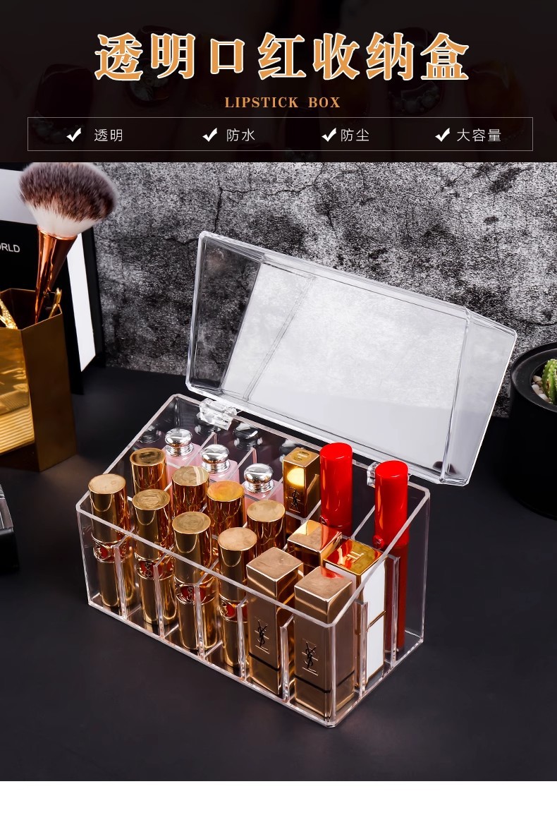 Пылезащитный ящик для хранения губной помады, настольная косметика, лак для ногтей, прозрачная коробка, высококачественная глазурь для губ, парфюмерия, многосеточная стойка для хранения