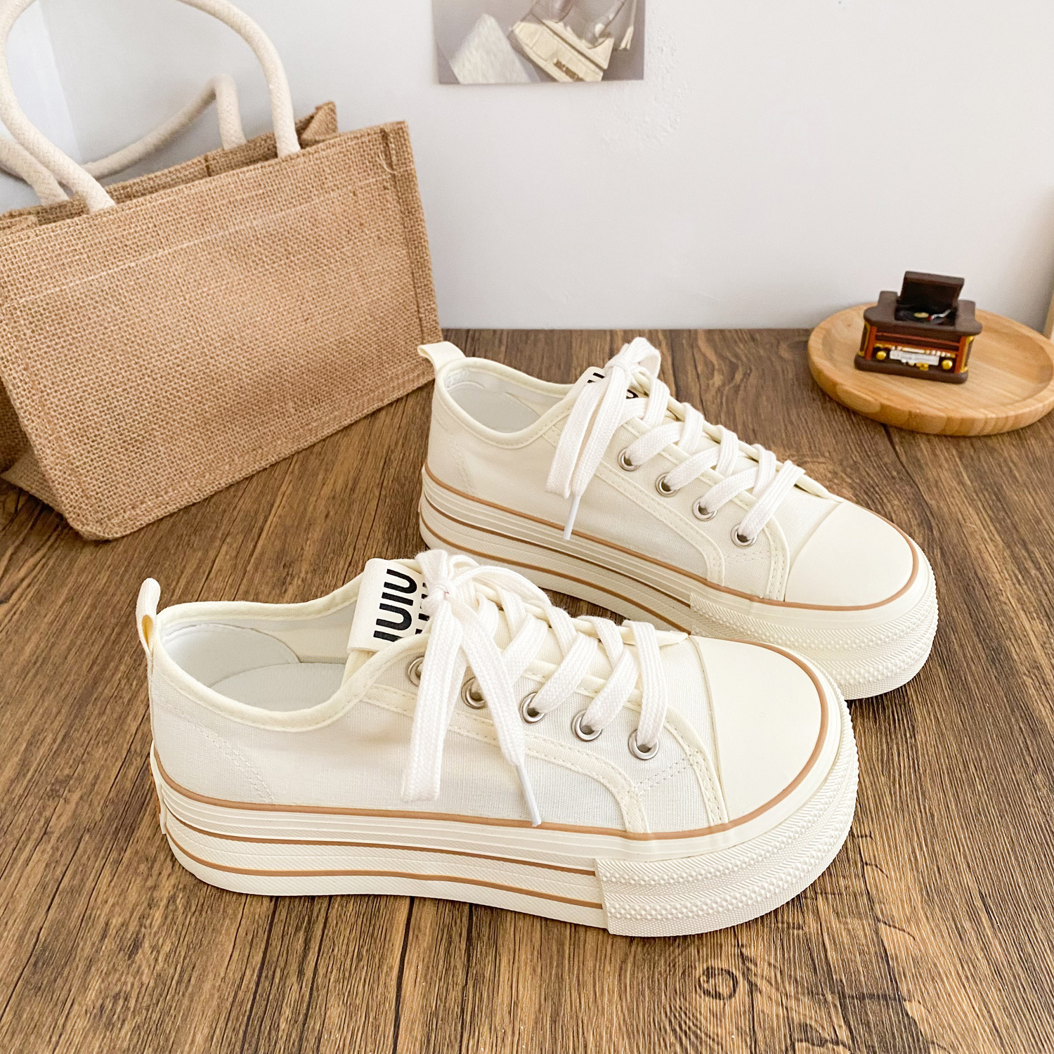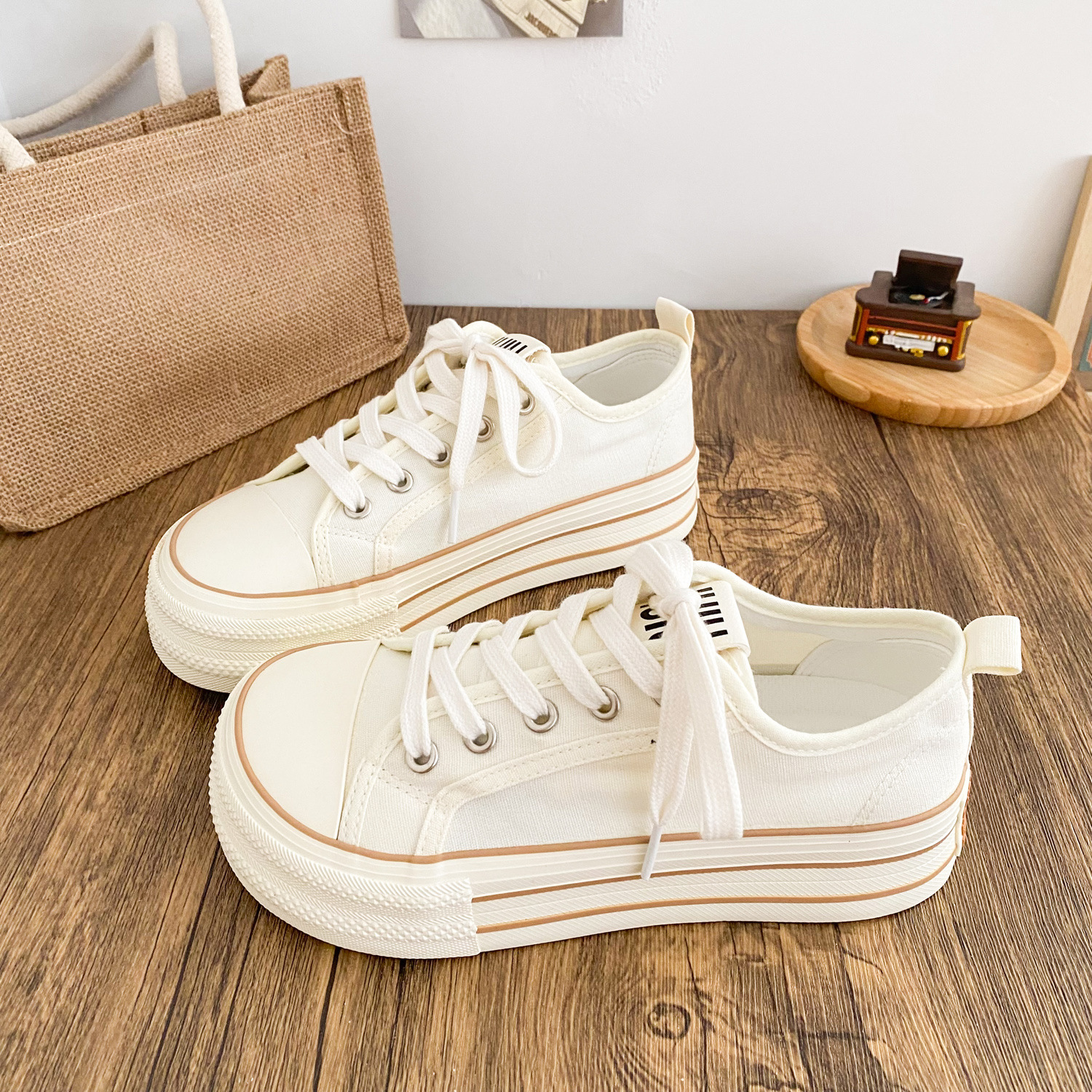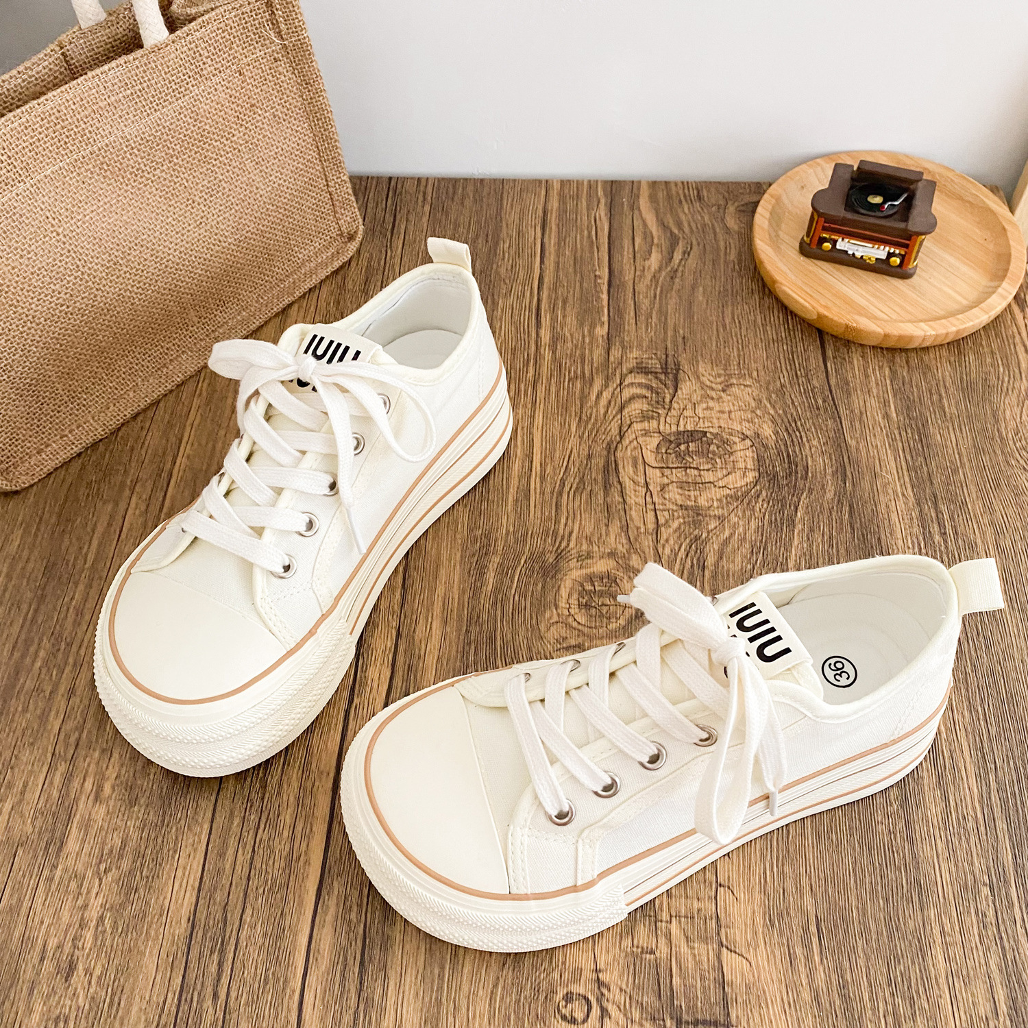 G1509 латексные стельки/холщовые туфли на толстой подошве Женские туфли с манго головкой большая голова тарелки 2025 новый тонкий маленький белый туфли