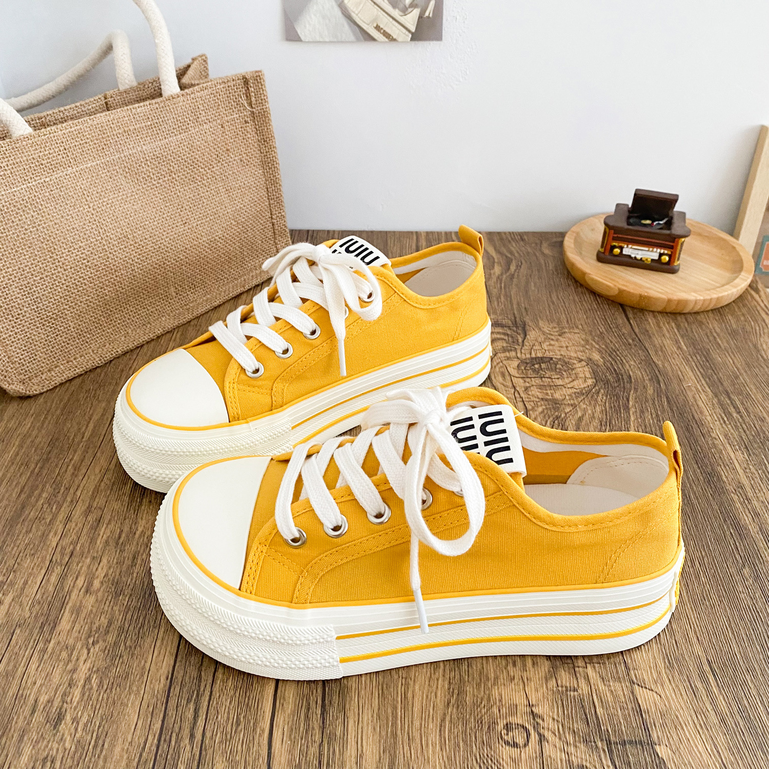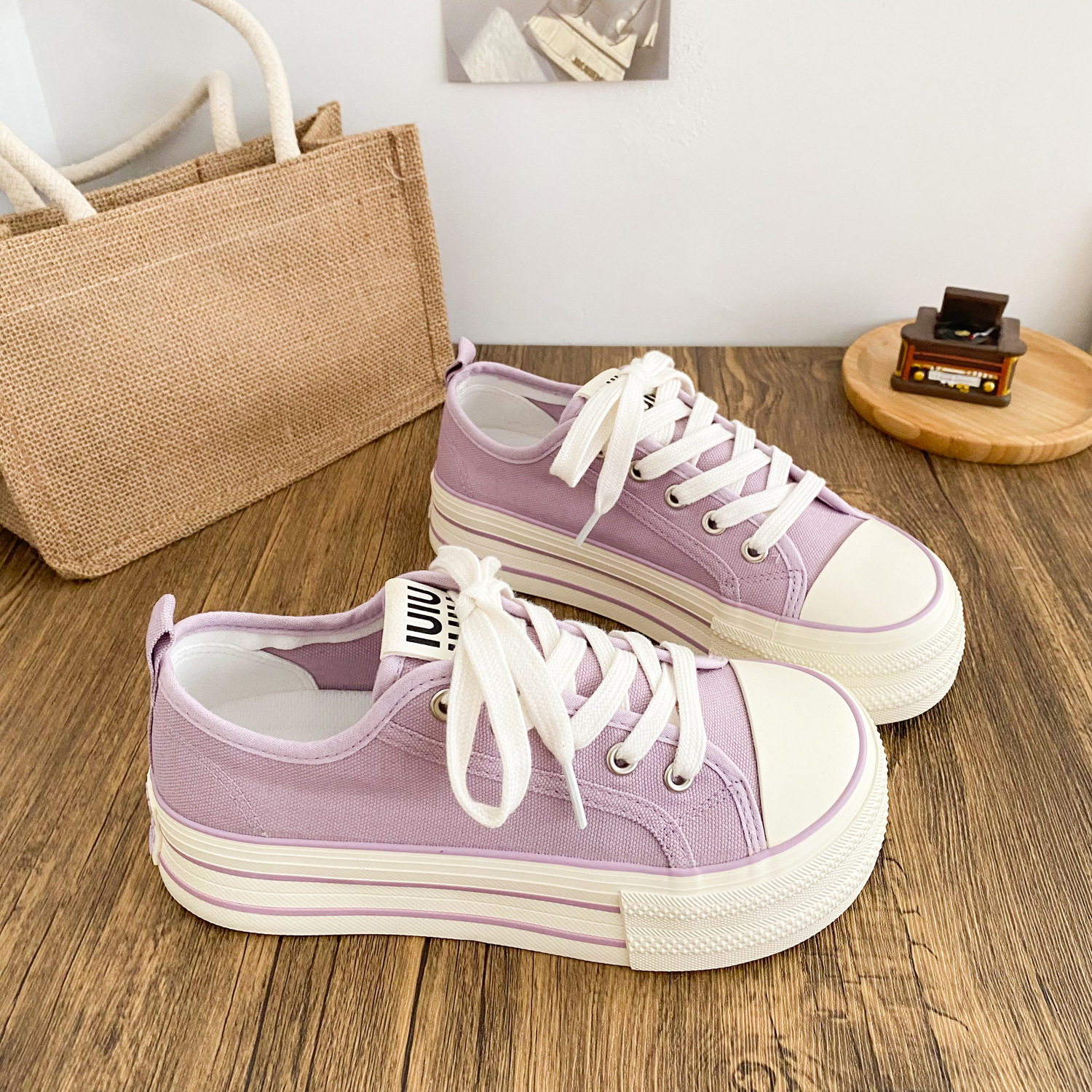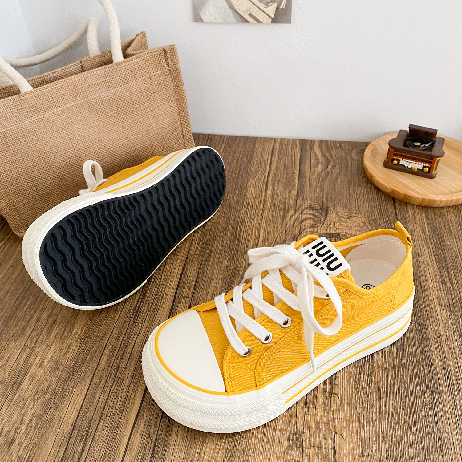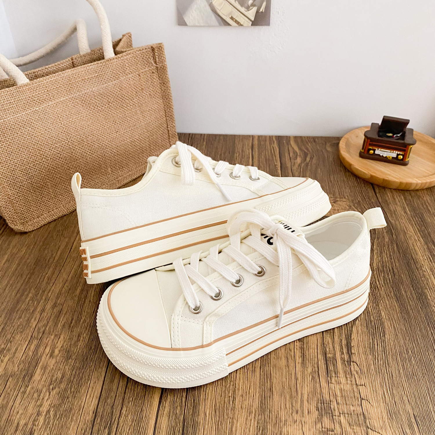 G1509 латексные стельки/холщовые туфли на толстой подошве Женские туфли с манго головкой большая голова тарелки 2025 новый тонкий маленький белый туфли