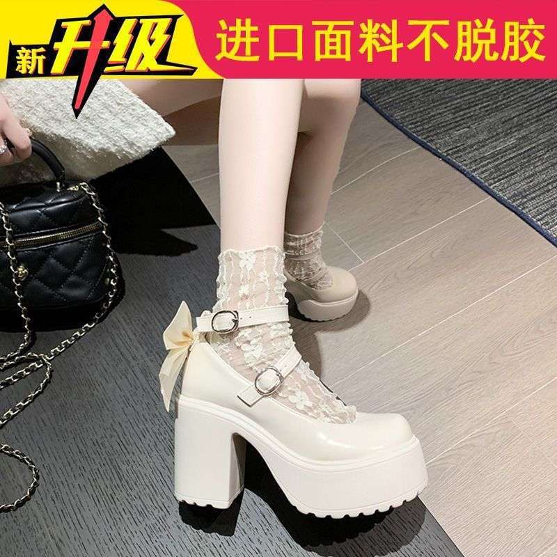 Женские белые туфли-лодочки на платформе с бантом, водонепроницаемые, весна 2025, новые, из кожи, на высоком каблуке.