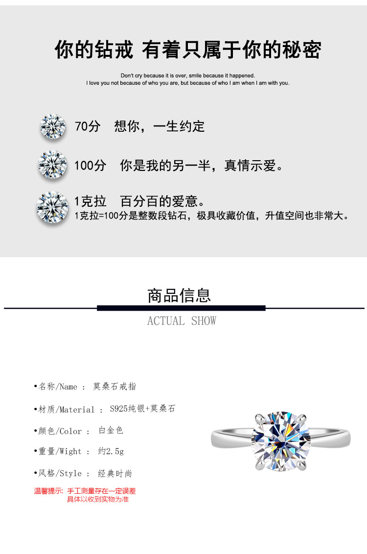 50 очков (циркон); Белый бриллиант 50 баллов (муассанит + сертификат GRA + черная карта + код талии); 1 карат (циркон); Белый бриллиант 1 карат (муассанит + сертификат GRA + черная карта + код талии); Оранжево-красный 1 карат (муассанит + сертификат GRA + черная карта + код талии); Порошок вишневого цвета 1 карат (муассанит + сертификат GRA + черная карта + код талии); Изумруд 1 карат (муассанит + сертификат GRA + черная карта + код талии); 1 карат красочный синий (муассанит + сертификат GRA + черная карта + код талии); Шампанское 1 карат (муассанит + сертификат GRA + черная карта + код талии); 2 карата (циркон); Белый бриллиант 2 карата (муассанит + сертификат GRA + черная карта + код талии); Оранжево-красный 2 карата (муассанит + сертификат GRA + черная карта + код талии); 2-каратный порошок вишневого цвета (муассанит + сертификат GRA + черная карта + код талии); Изумруд 2 карата (муассанит + сертификат GRA + черная карта + код талии); 2-каратный красочный синий (муассанит + сертификат GRA + черная карта + код талии); Шампанское 2 карата (муассанит + сертификат GRA + черная карта + код талии)
