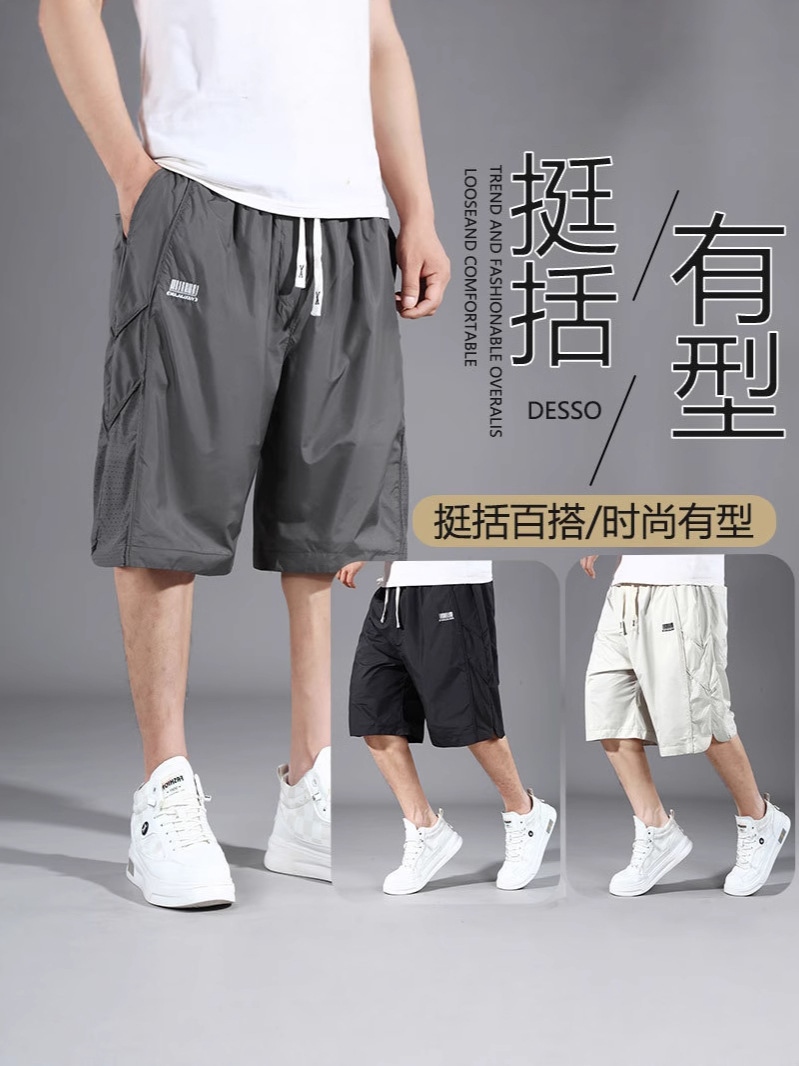 Мужские летние свободные быстрые сухие коньки-пляжные брюки Тонкий большой размер мужские укороченные брюки плюс толстые шорты 2532