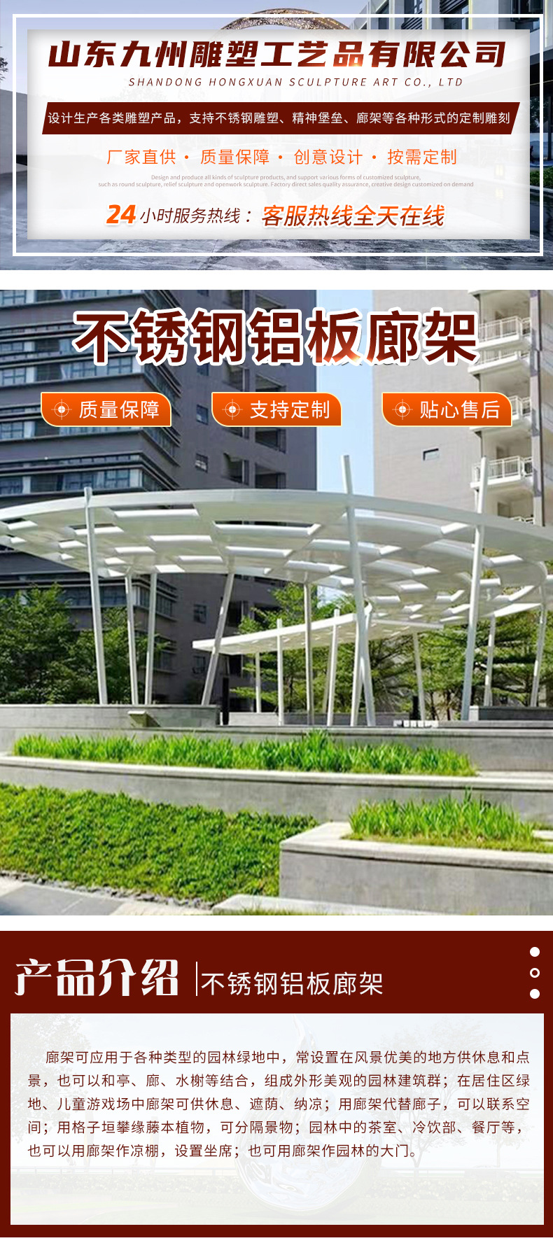 Уличная крупногабаритная скульптура-пергола из нержавеющей стали и алюминия, стальная конструкция для городских отелей, жилых комплексов, парков, школ, уличных объектов культурного наследия