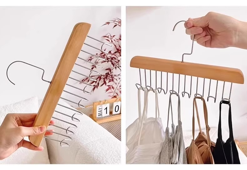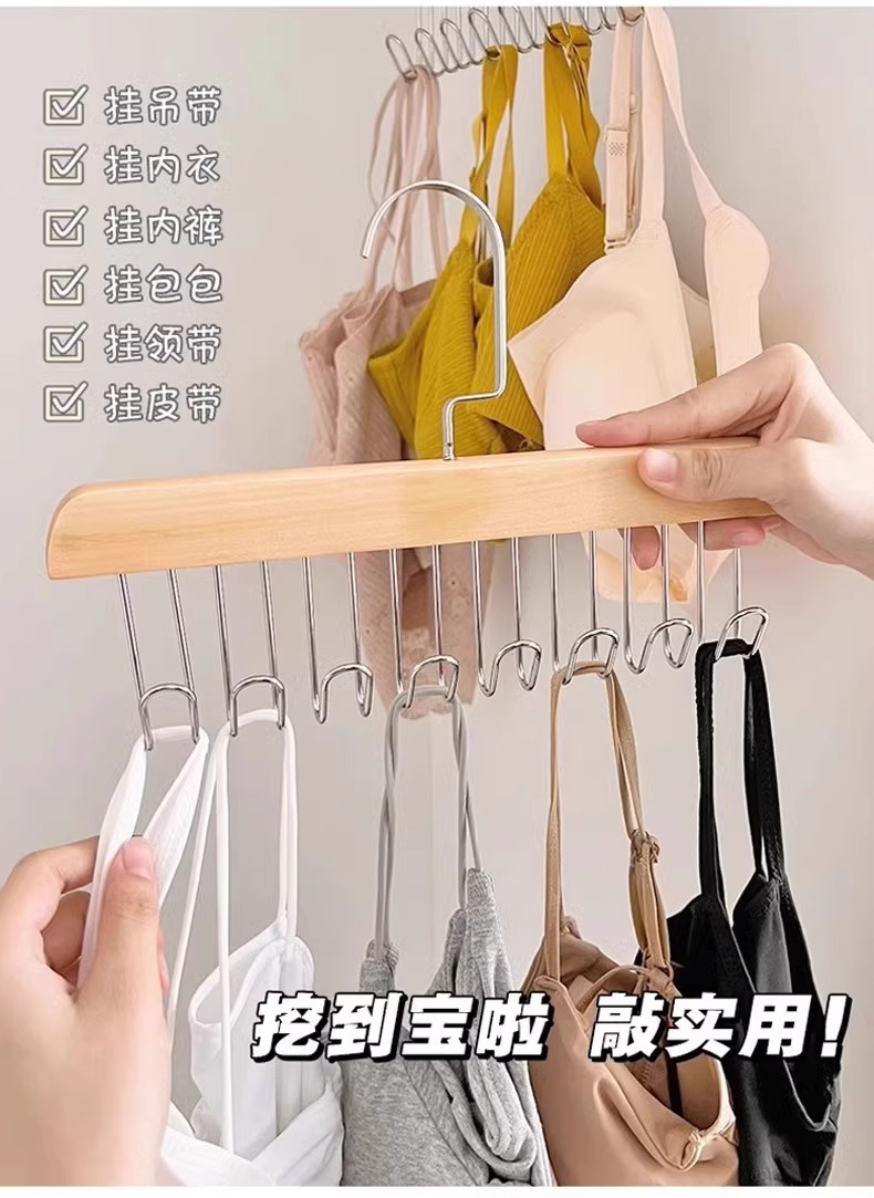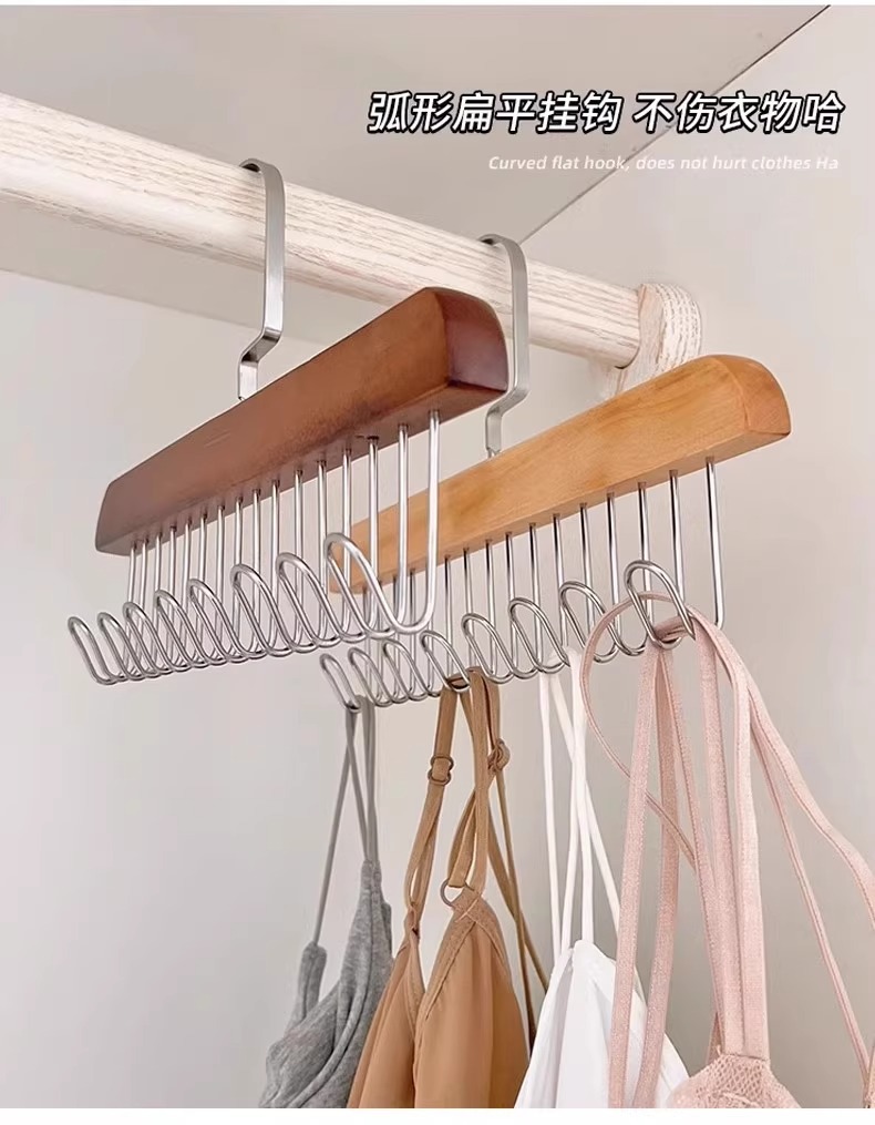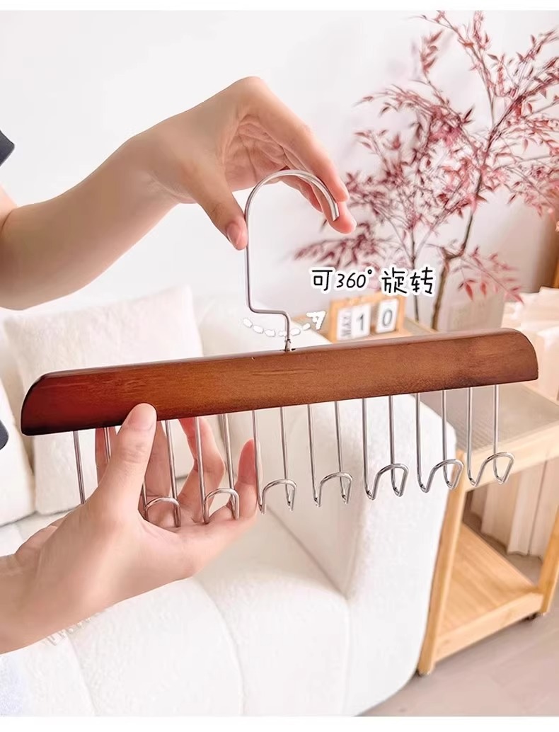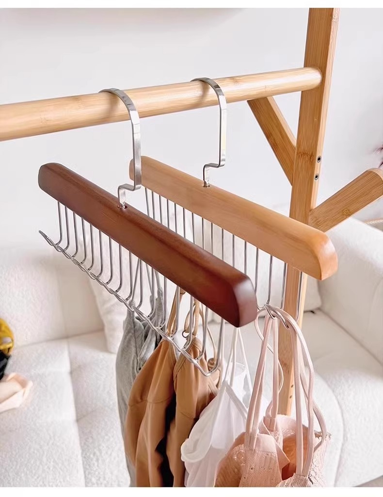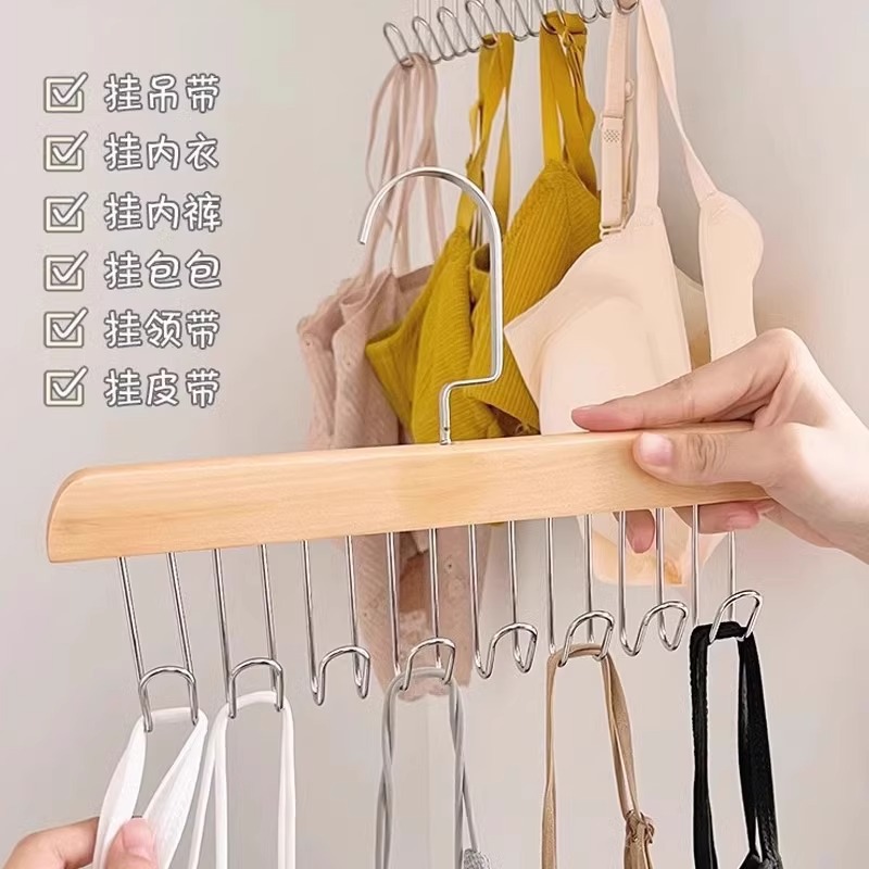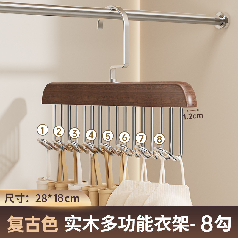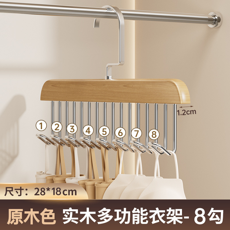 Деревянная вешалка с 8 крючками и несколькими крючками для использования в общежитии дома, подходит для подвешивания нижнего белья и брюк, многофункциональная вешалка с восемью крючками из цельного дерева.