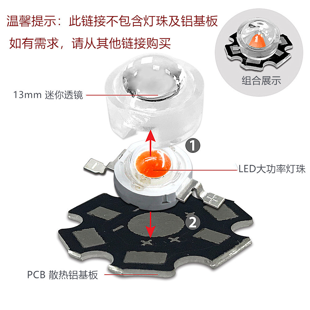 Высокая мощность светодиодная лампа с линзой 13 мм мини 1w3w5w прожектор 30/60/90/100 градусов абажур DIY аксессуары