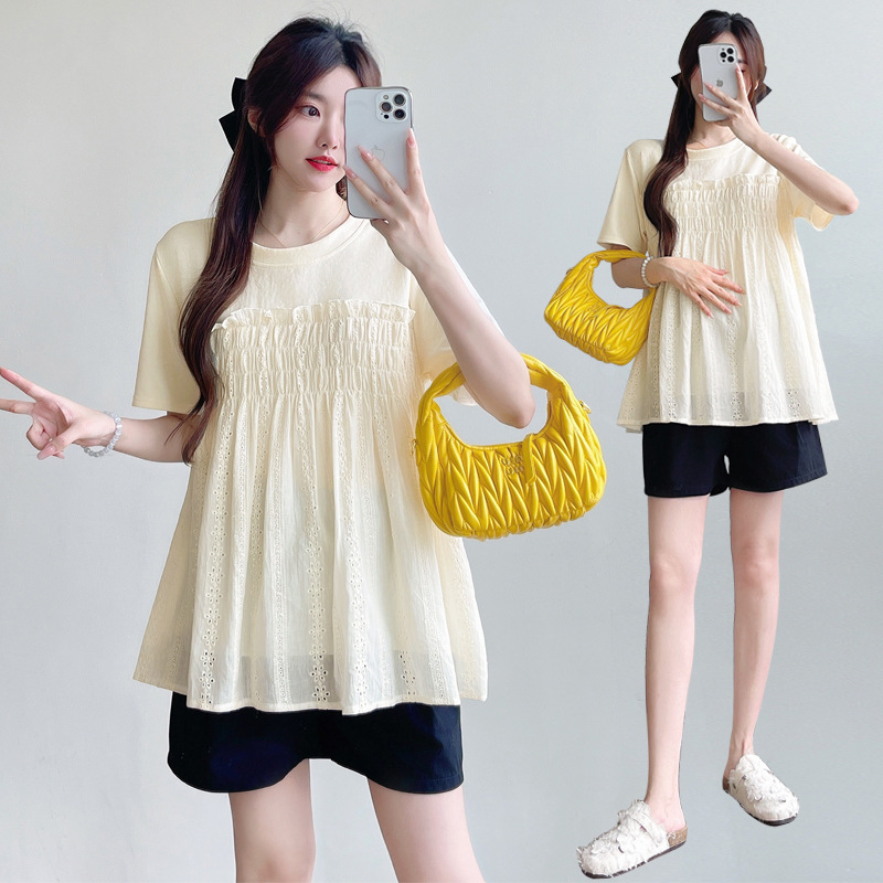 Одежда для беременных 2025 Весенняя детская рубашка рубашка с короткими рукавами