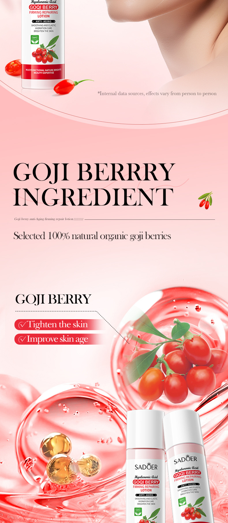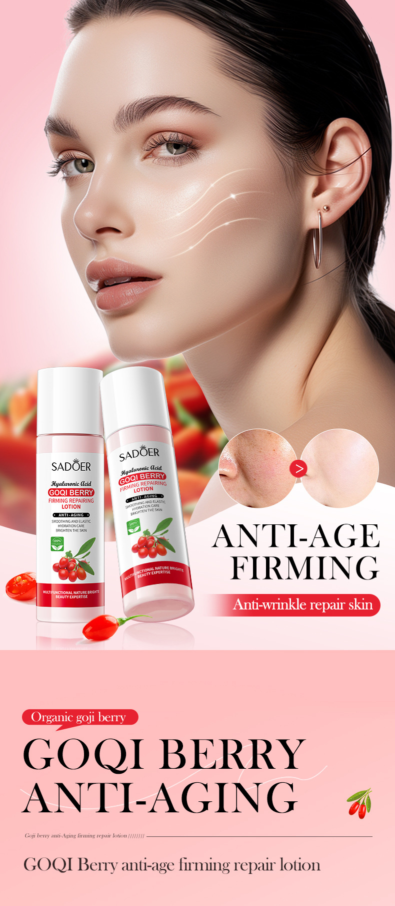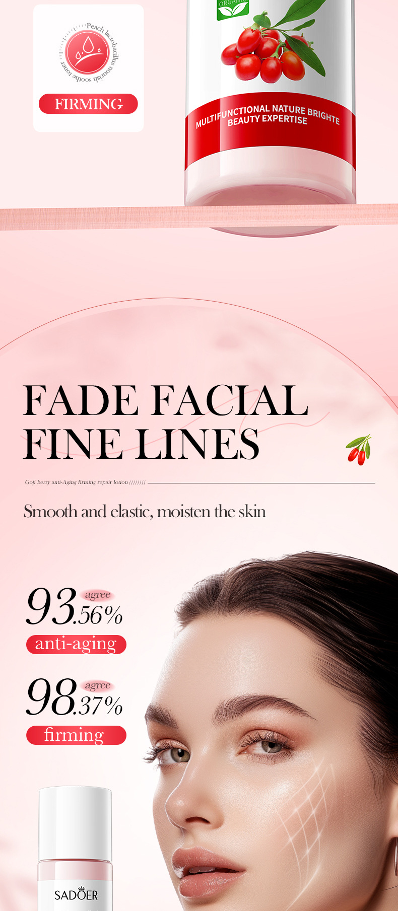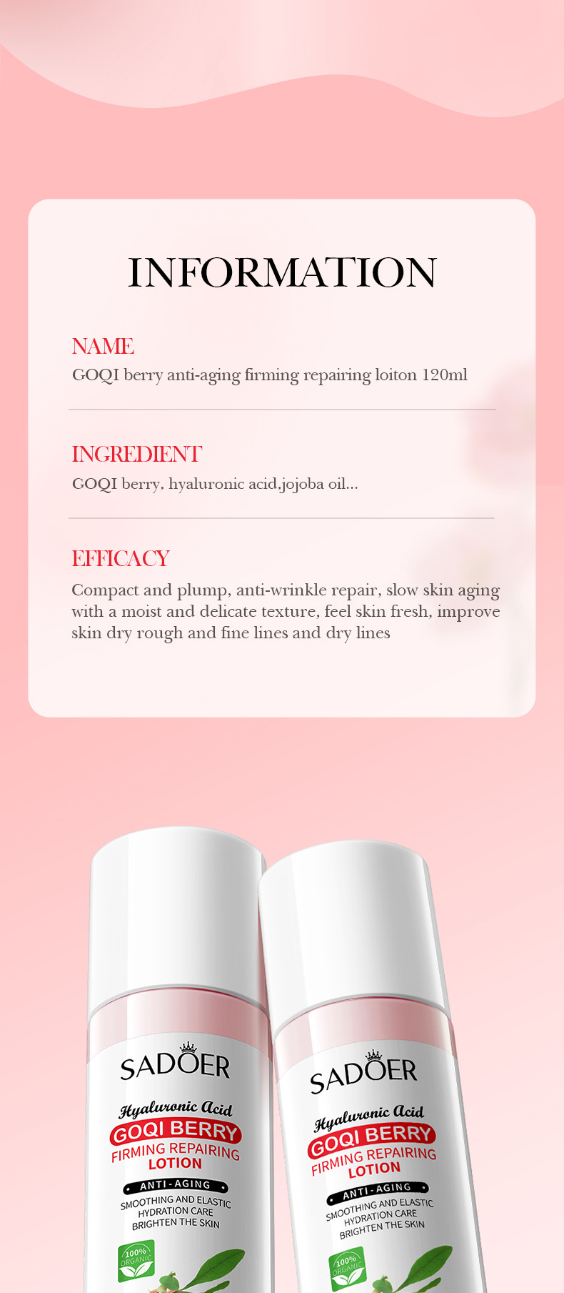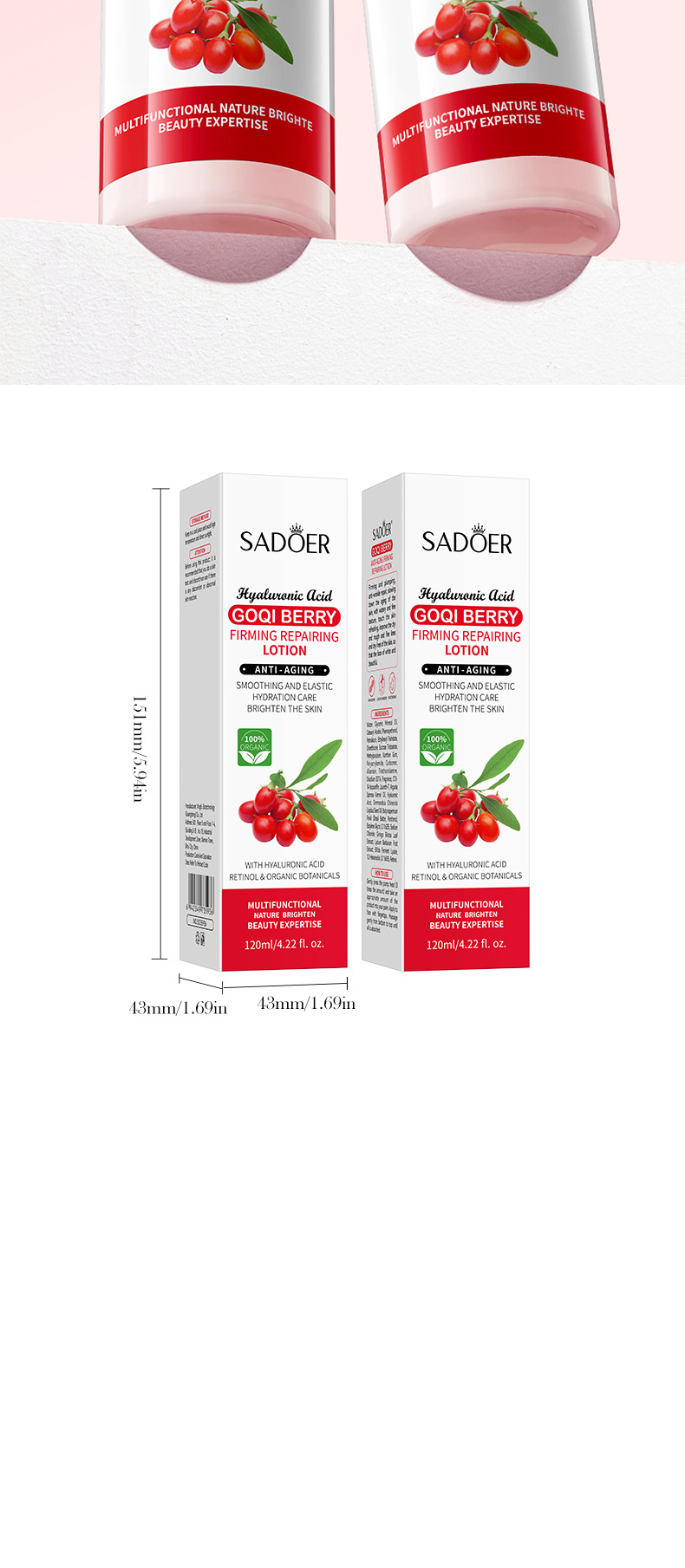 Молочко для лица с волчьей ягодой SADOER, 120 мл, укрепляющее, антивозрастное, увлажняющее, оптовая продажа, экспорт, трансграничная торговля