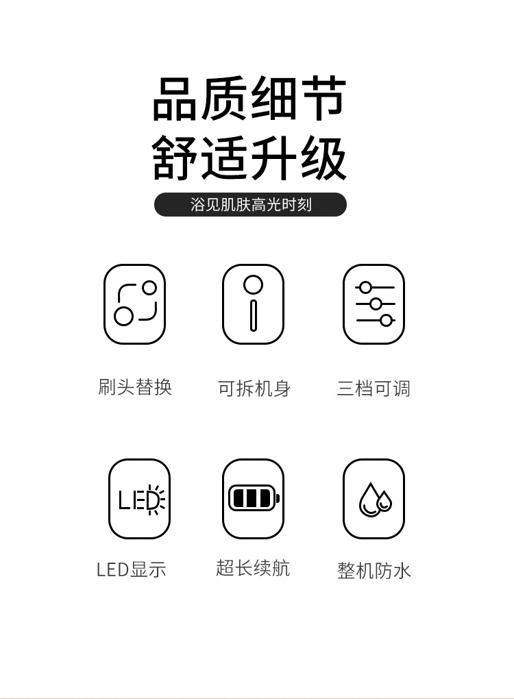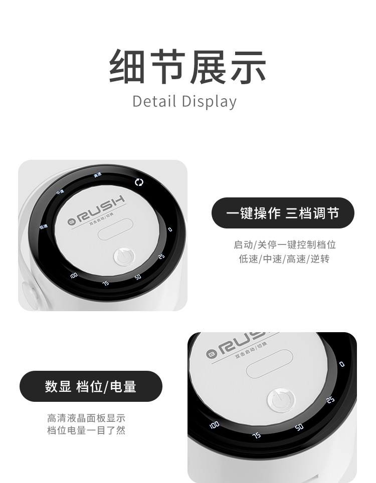 Цифровой экран, сенсорный переключатель, машина двойного назначения, съемный хост, 5 функциональных насадок для щеток.