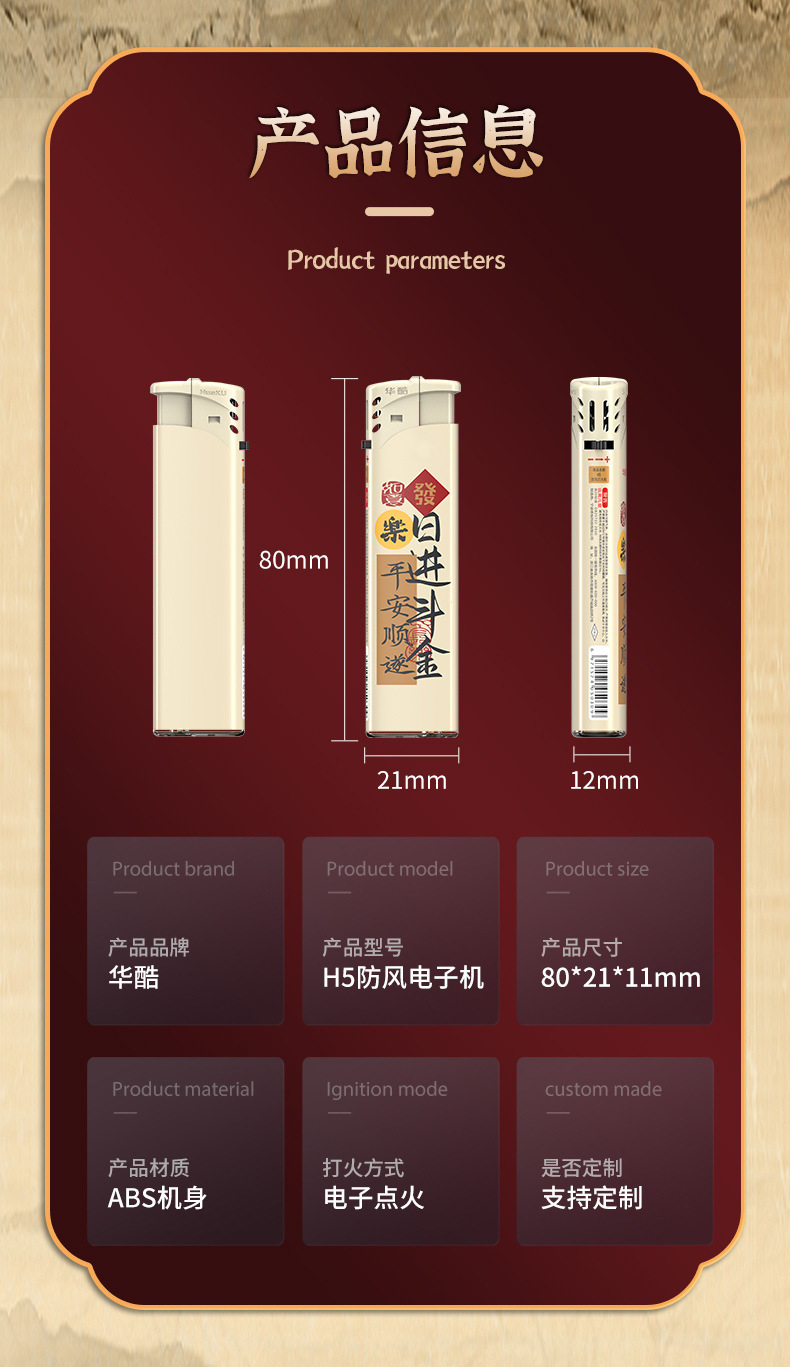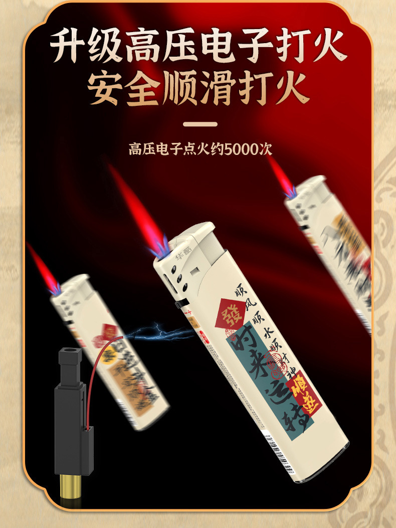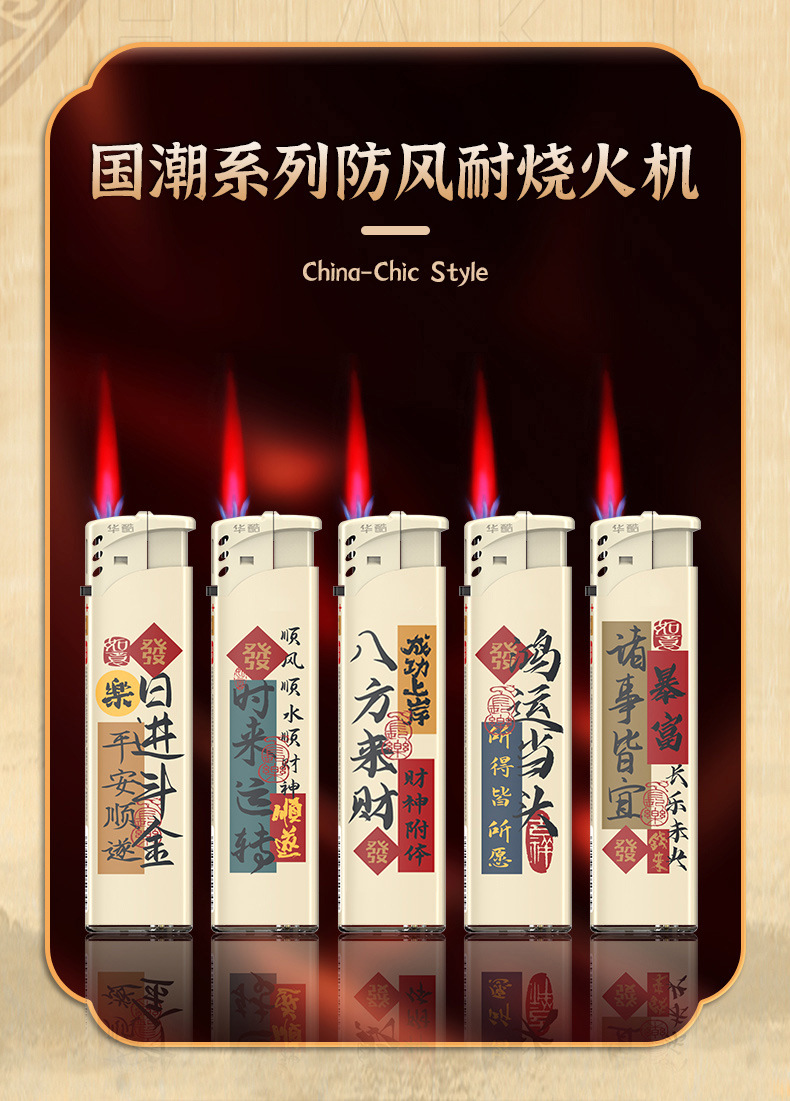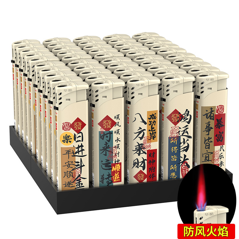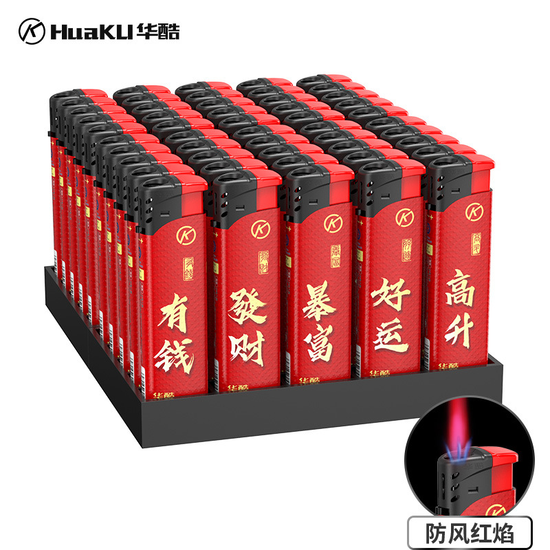 Зажигалка Huaku H5 Daily Fortune, ветрозащитная, одноразовая, с красным пламенем, в национальном стиле, большая, прочная, утолщенная, оптом для супермаркетов