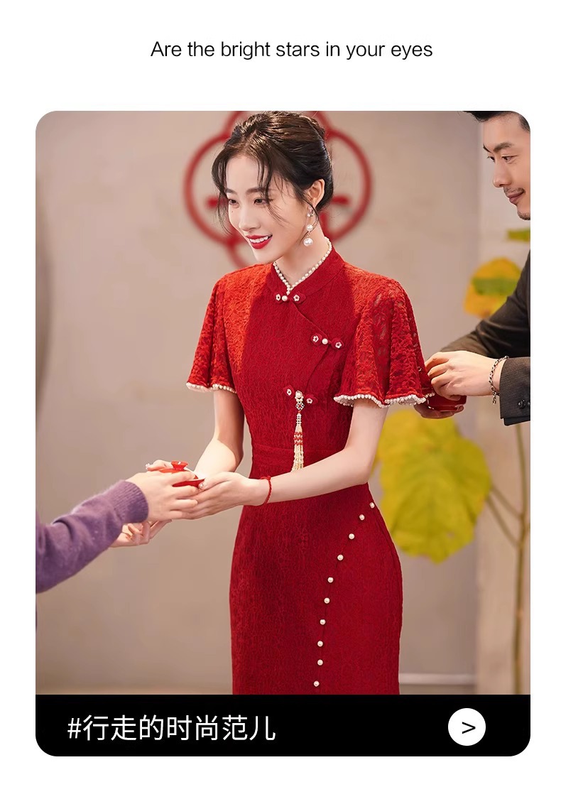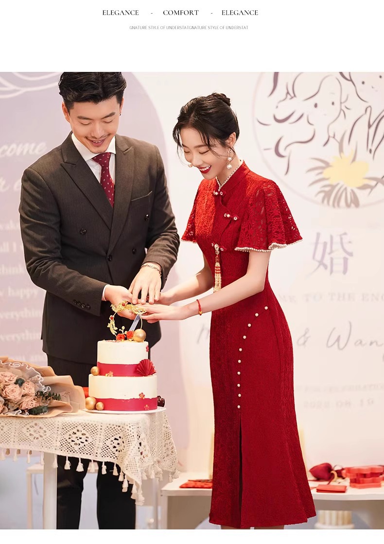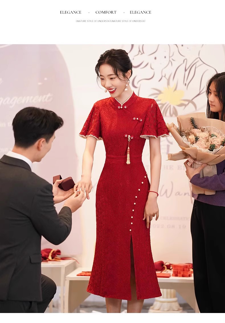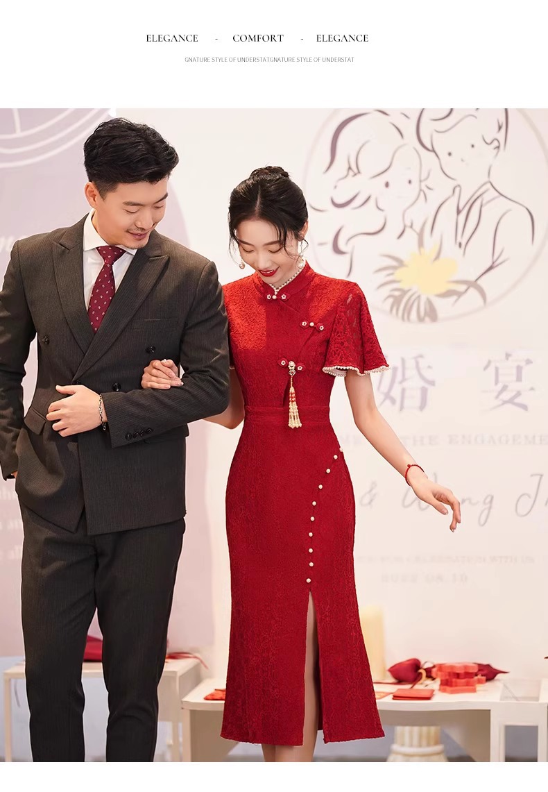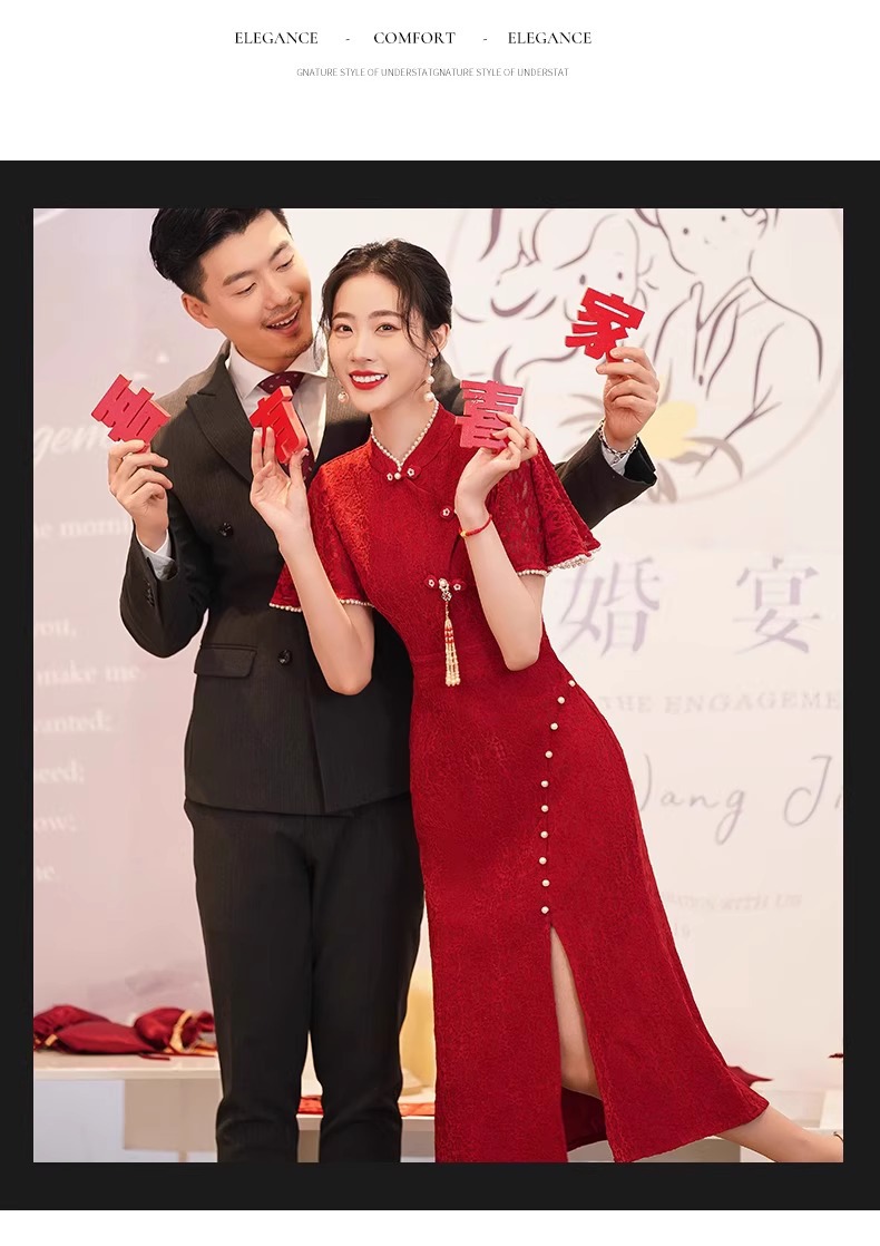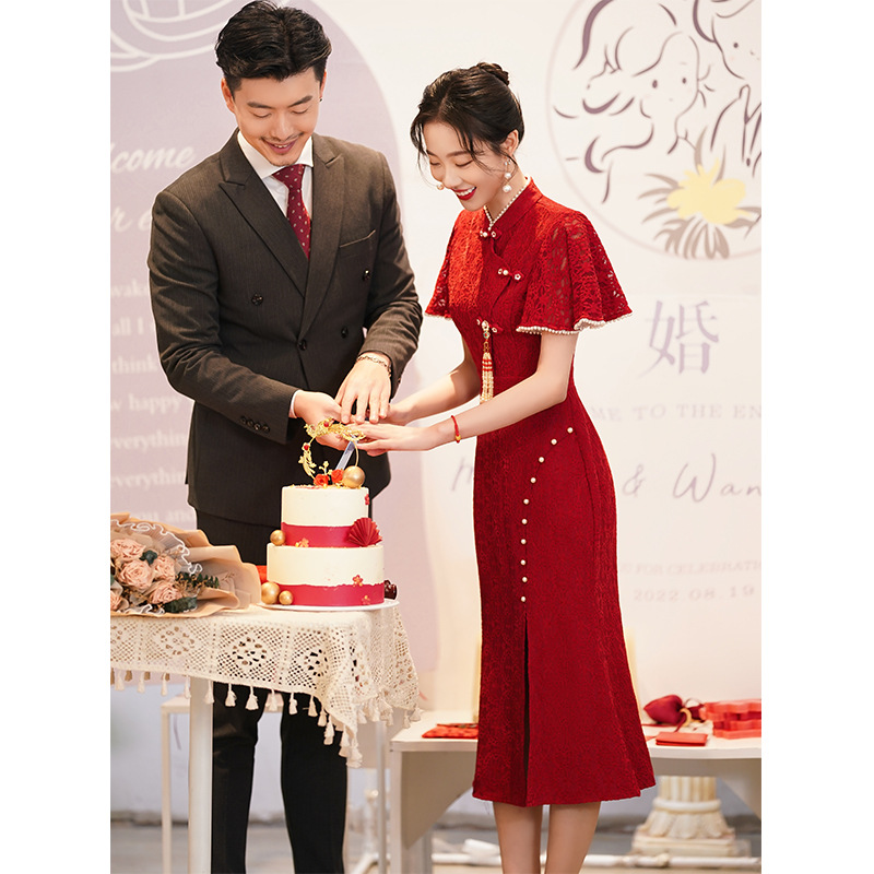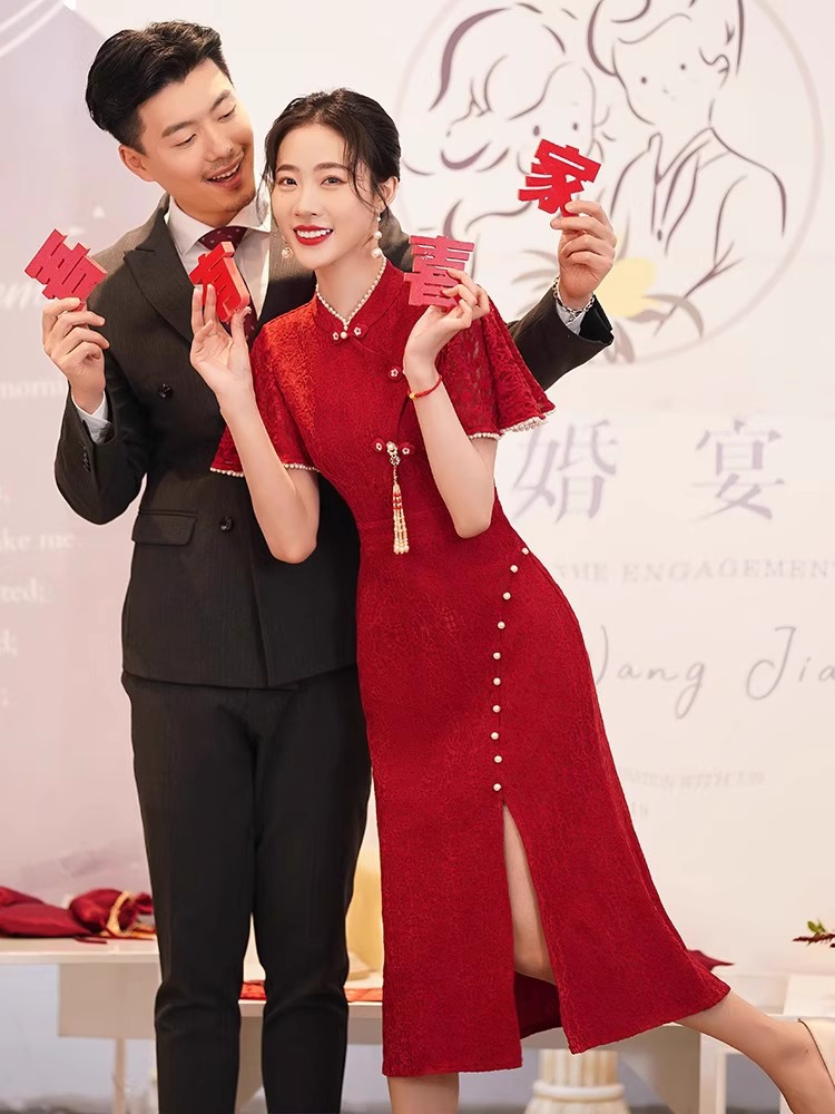 Алстный костюм невесты чонсам маленький помолвка платье женское красное в китайском стиле