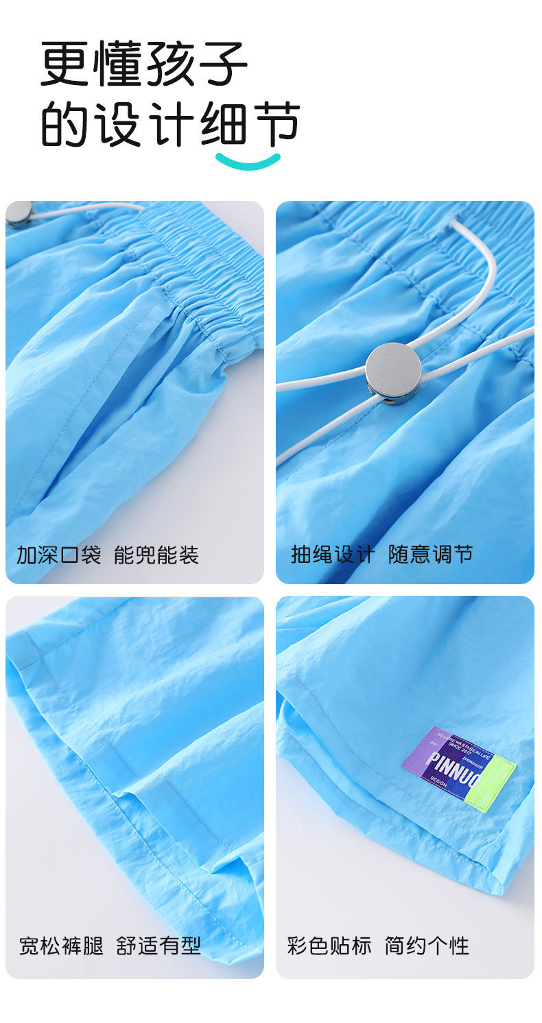 Детские спортивные шорты, летние тонкие детские быстросохнущие повседневные брюки средней длины из ледяного шелка, большие детские пляжные штаны для мальчиков