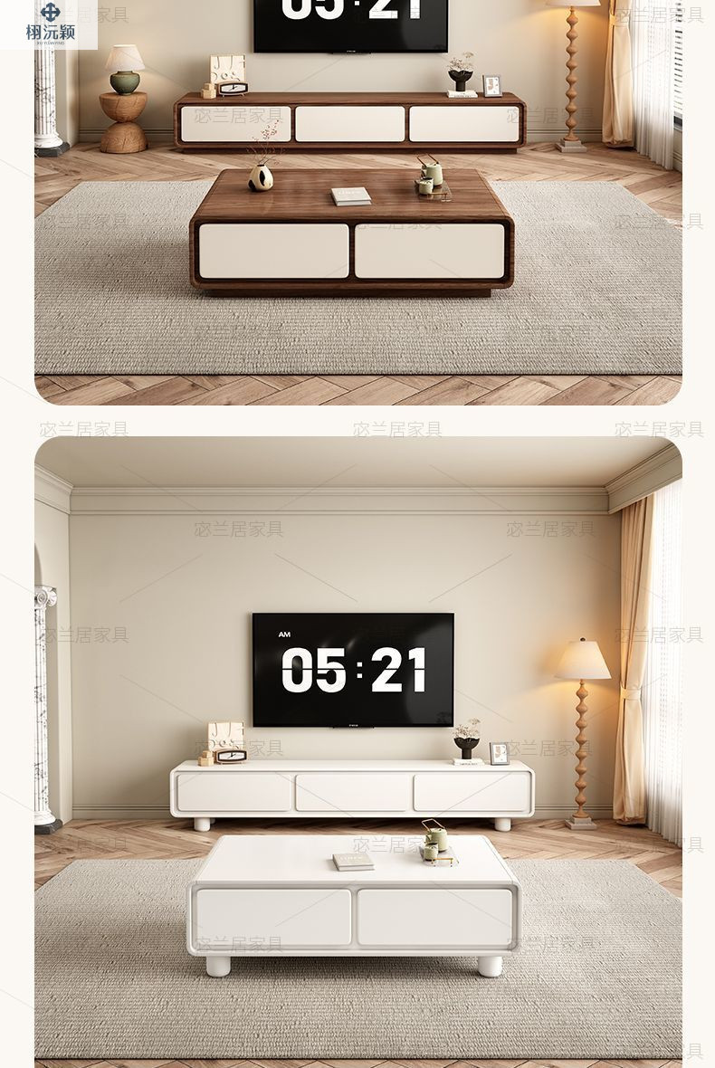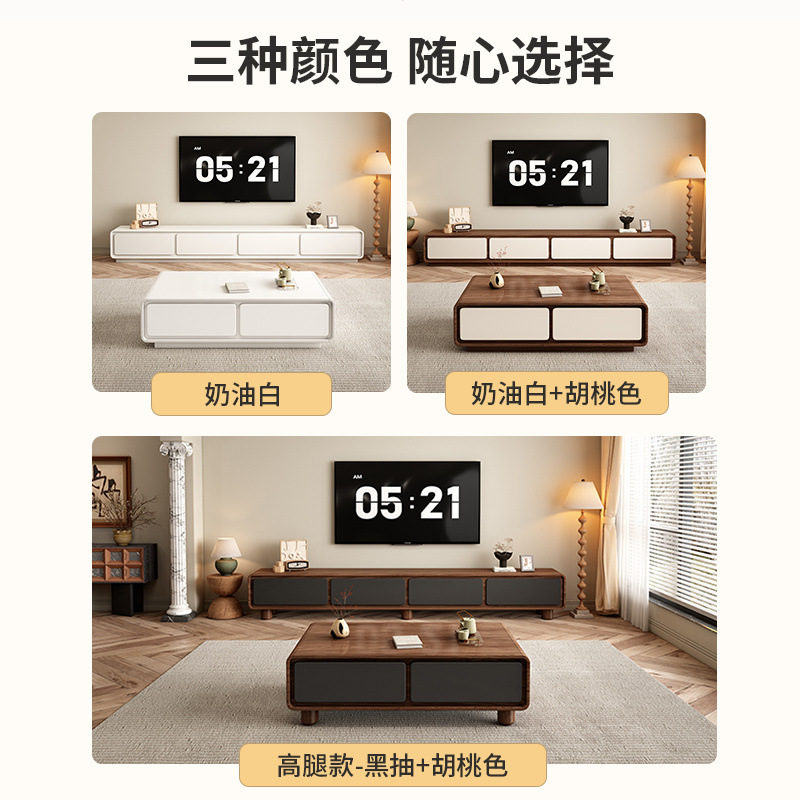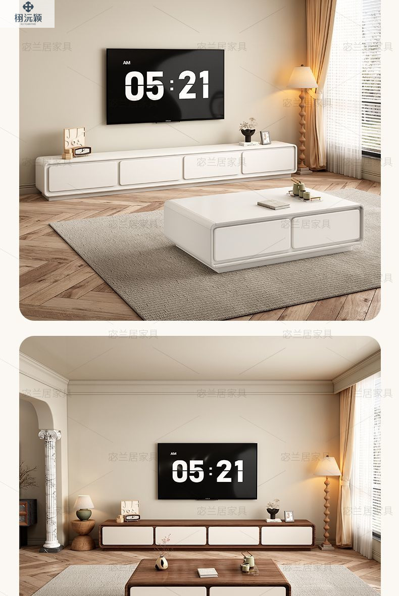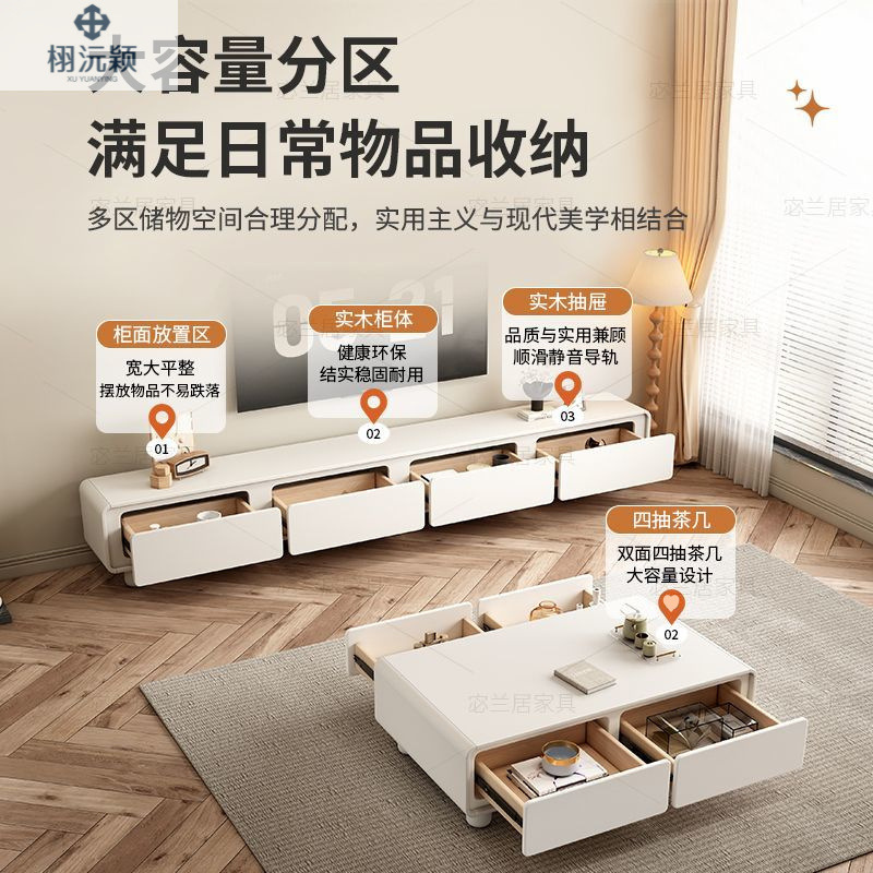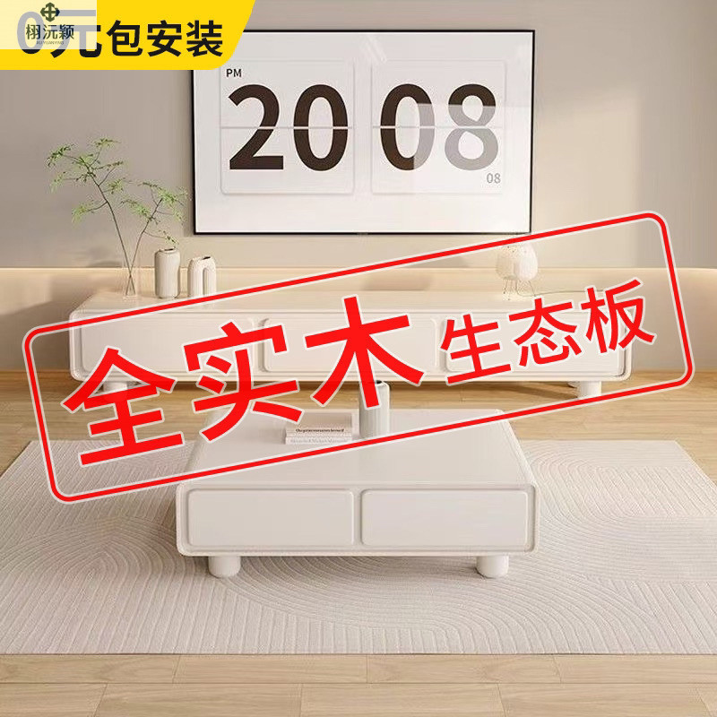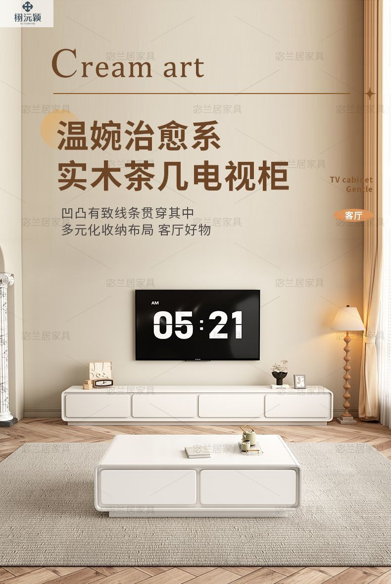 Тумба под телевизор из массива дерева, новая модель 2026 года, комплект с журнальным столиком в современном минималистичном стиле, цвет кремовый, для большой квартиры, гостиная в стиле минимализм