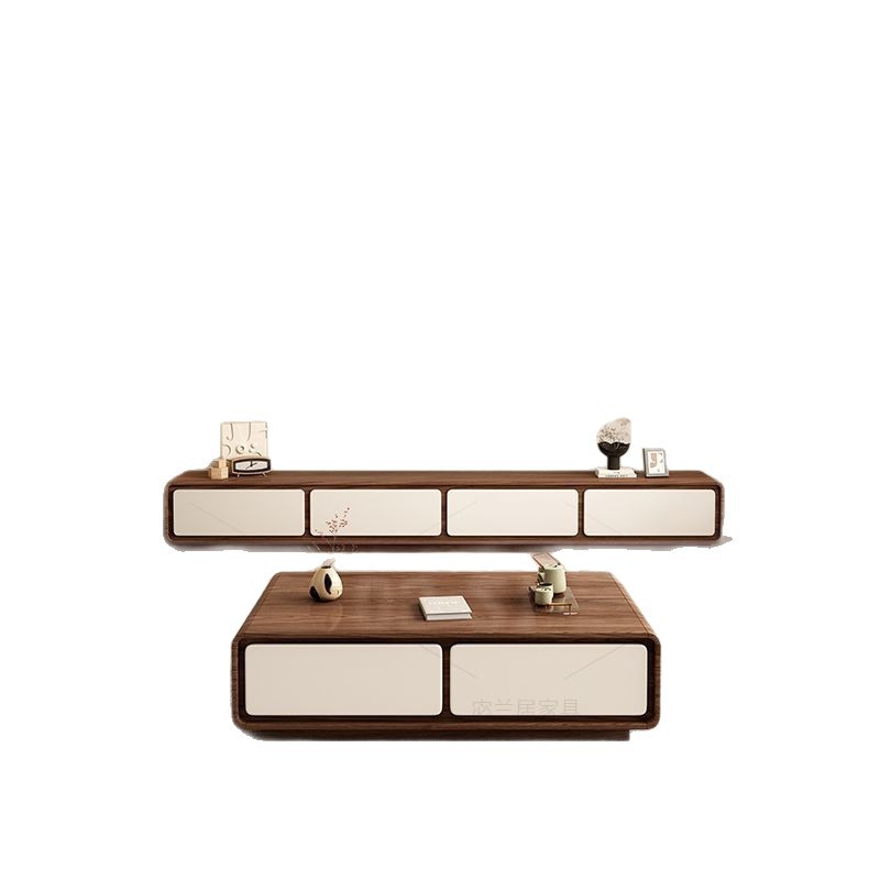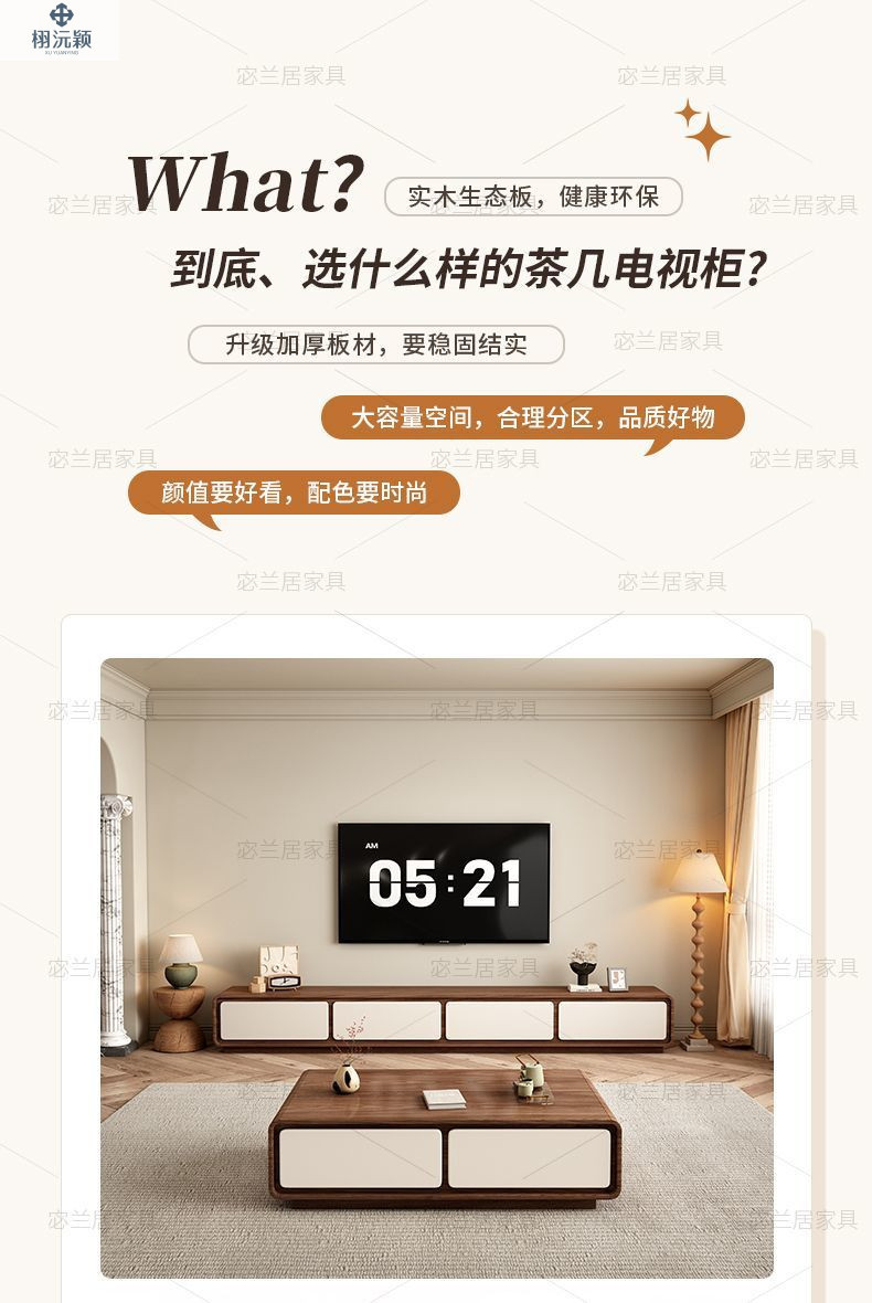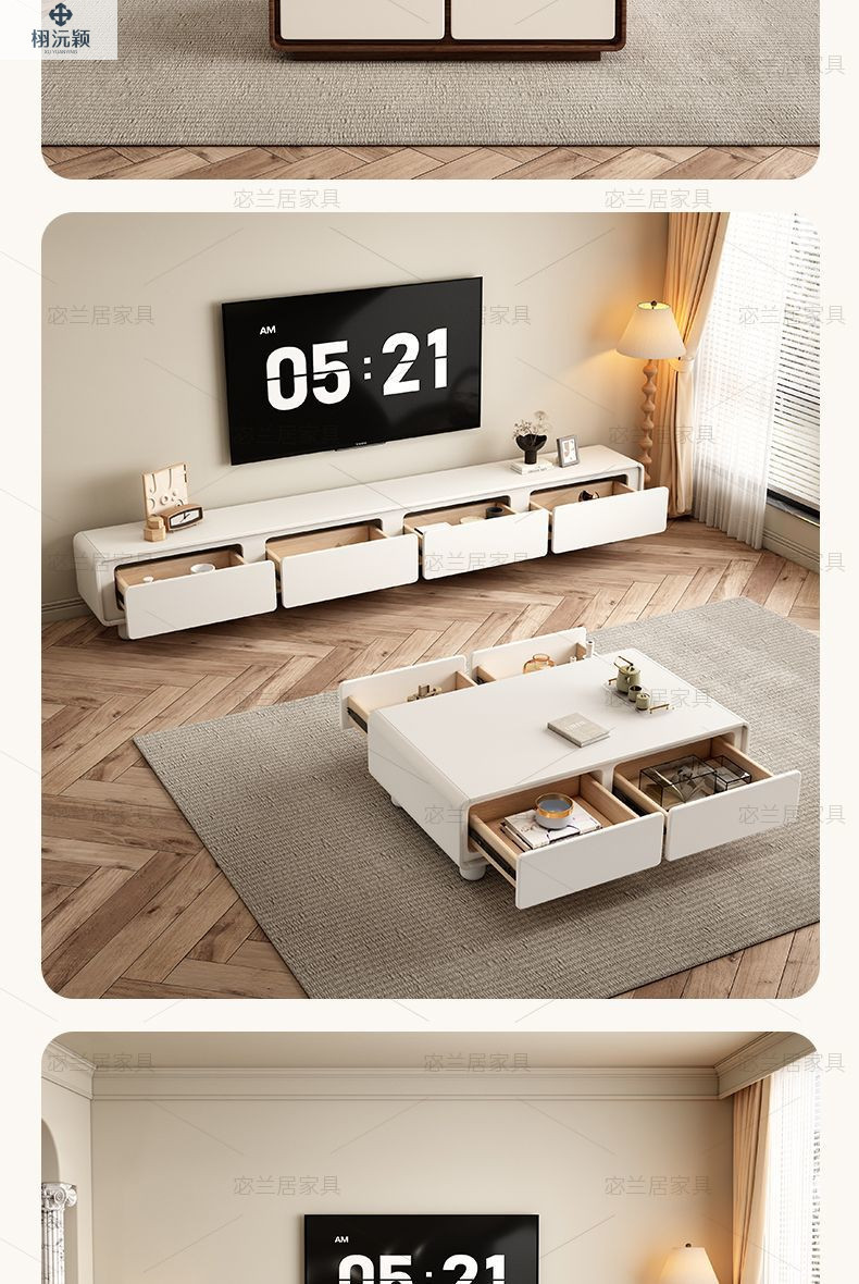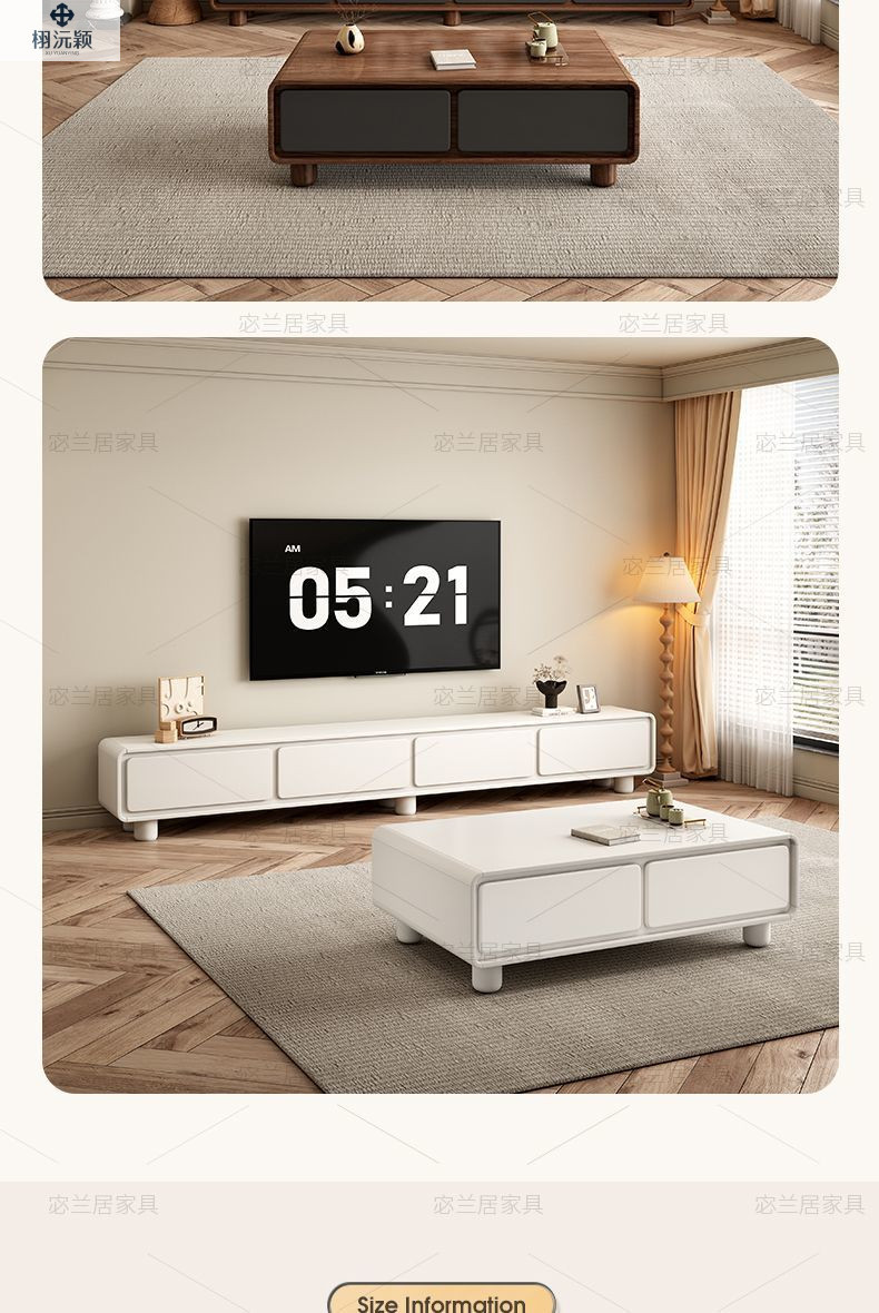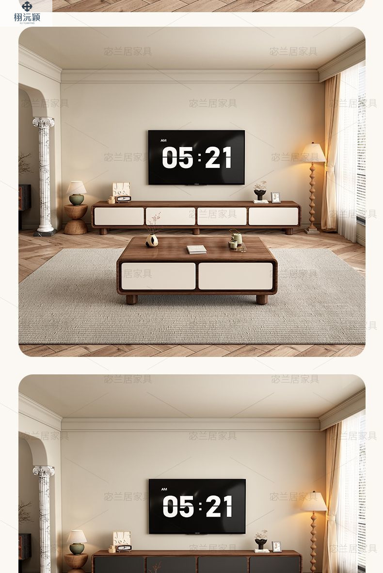 Тумба под телевизор из массива дерева, новая модель 2026 года, комплект с журнальным столиком в современном минималистичном стиле, цвет кремовый, для большой квартиры, гостиная в стиле минимализм