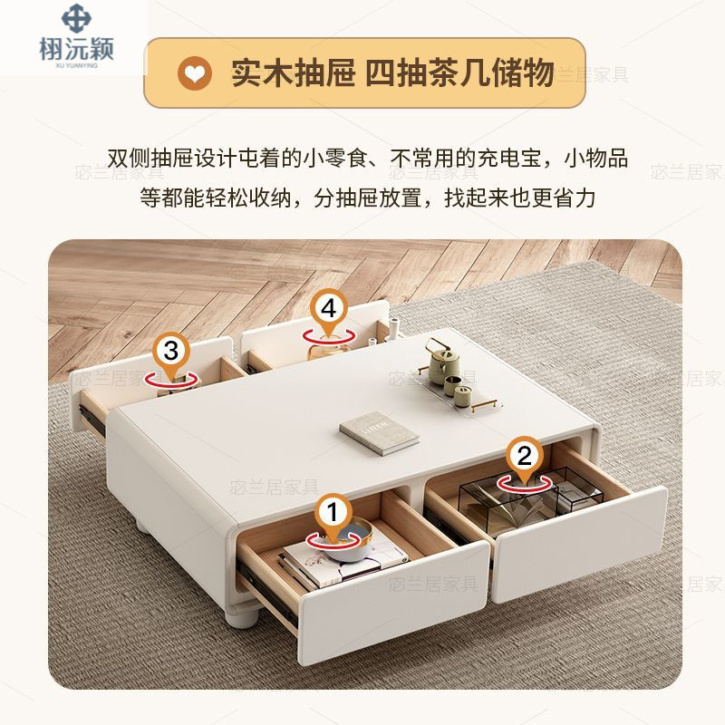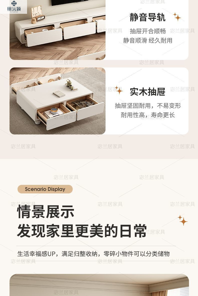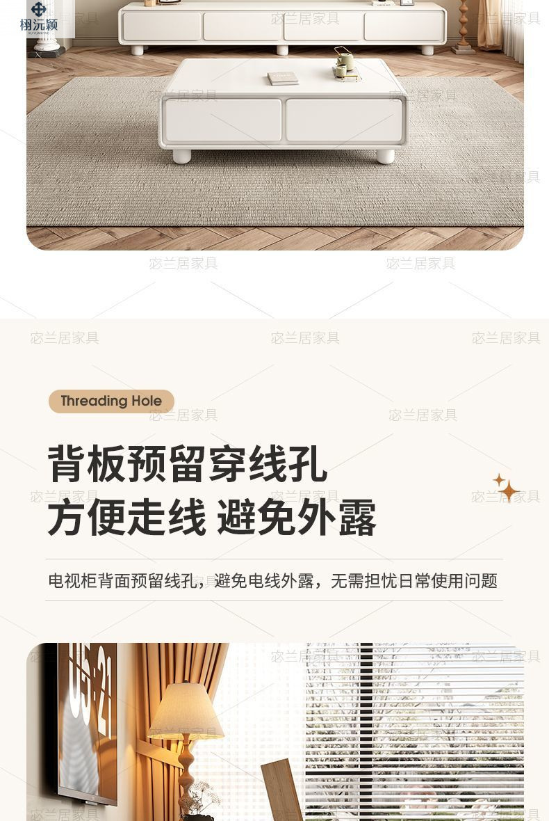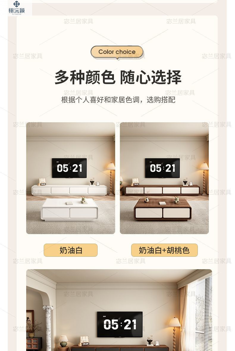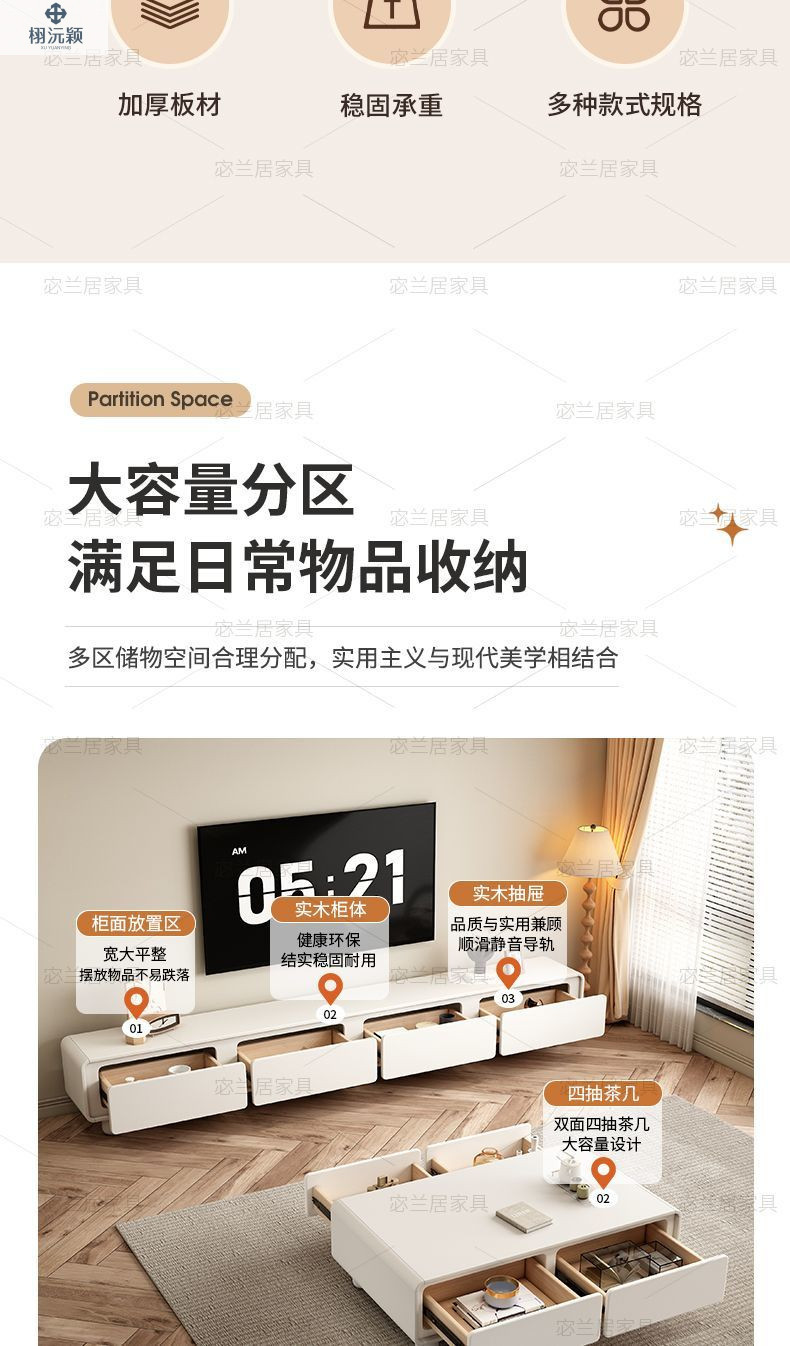 Тумба под телевизор из массива дерева, новая модель 2026 года, комплект с журнальным столиком в современном минималистичном стиле, цвет кремовый, для большой квартиры, гостиная в стиле минимализм