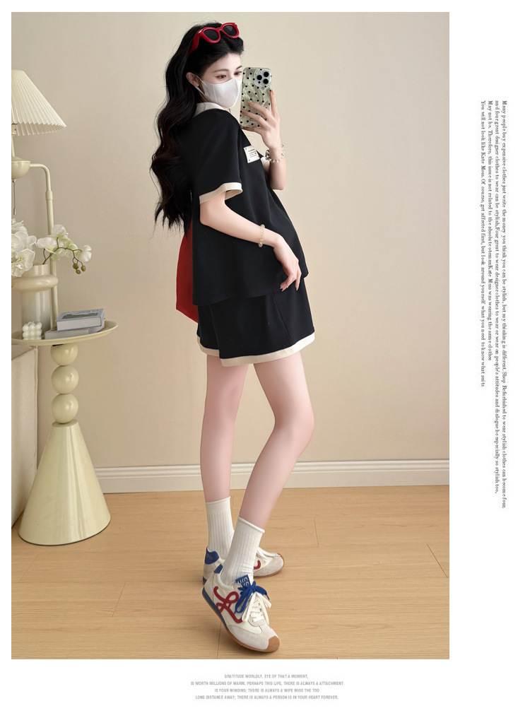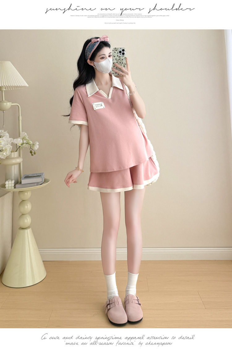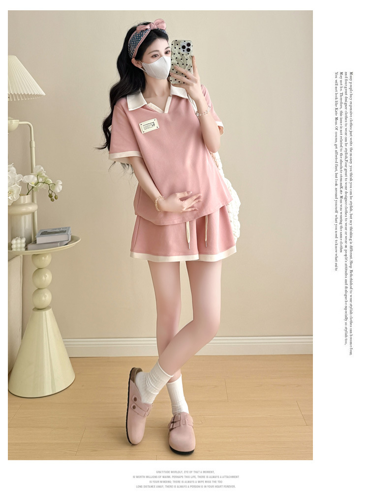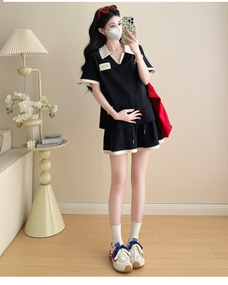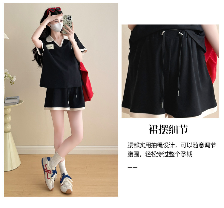 Одежда для беременных 2025 Летний новый повседневный спортивный стиль костюм маленький маленький свободный тонкий топ шорты набор из двух частей