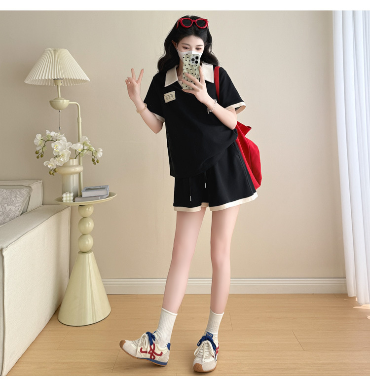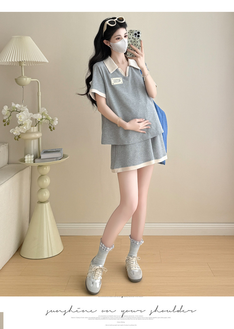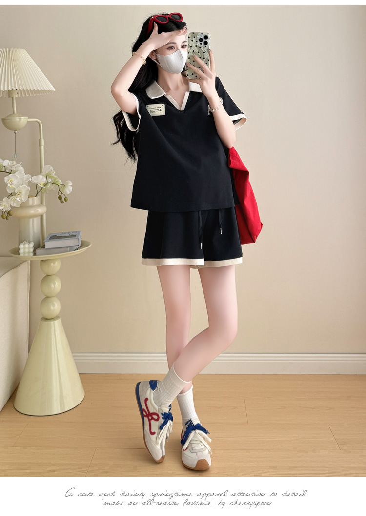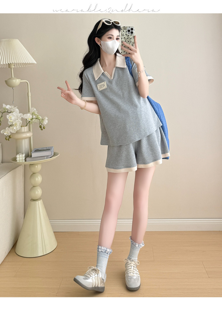 Одежда для беременных 2025 Летний новый повседневный спортивный стиль костюм маленький маленький свободный тонкий топ шорты набор из двух частей