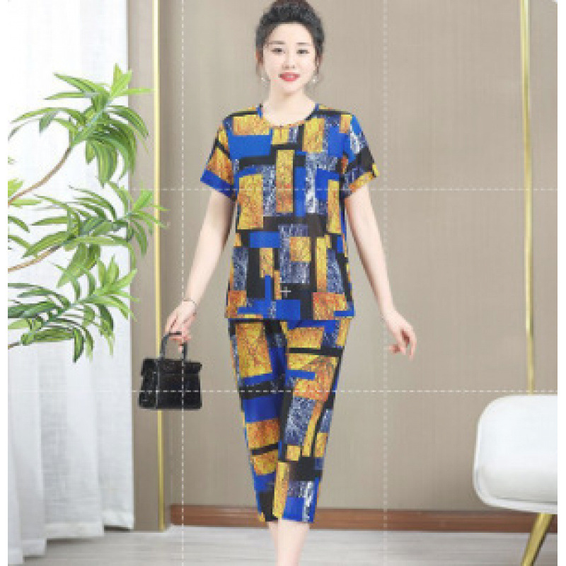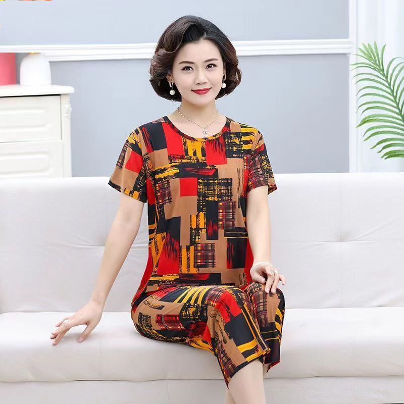 Пижамы для мамы, летняя одежда для старухи, одежда для мам среднего и пожилого возраста, летние женские костюмы-футболки с короткими рукавами, одежда для бабушки.