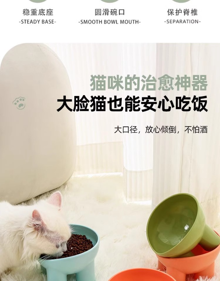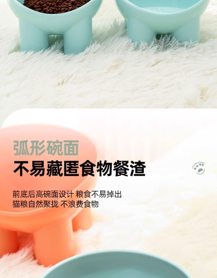 Товары для домашних животных цвета макарон, миска для корма для кошек, защита шеи, косой рот, миска для кошек, антидетонационная пластиковая миска для домашних животных, высокая миска для кошек