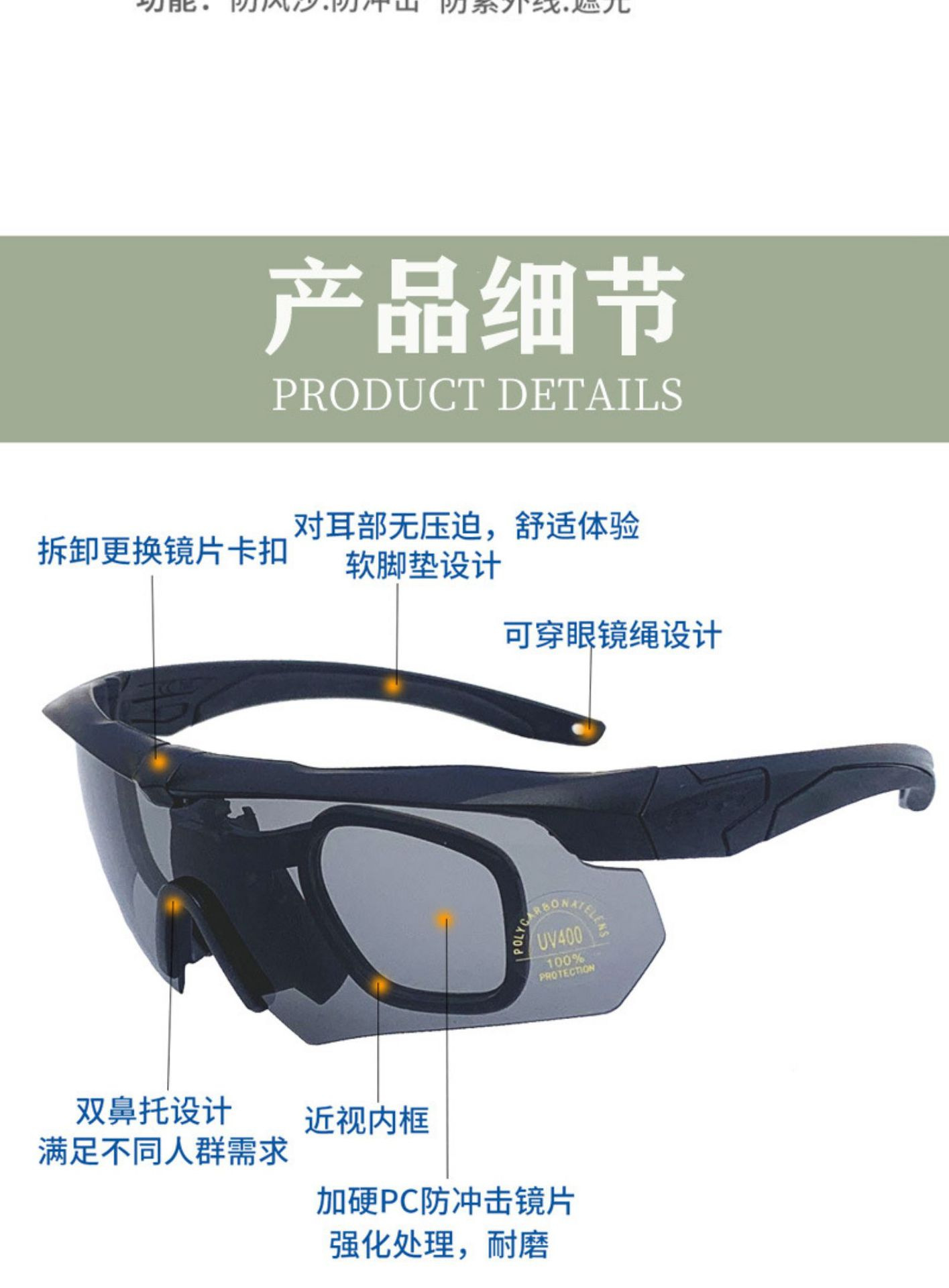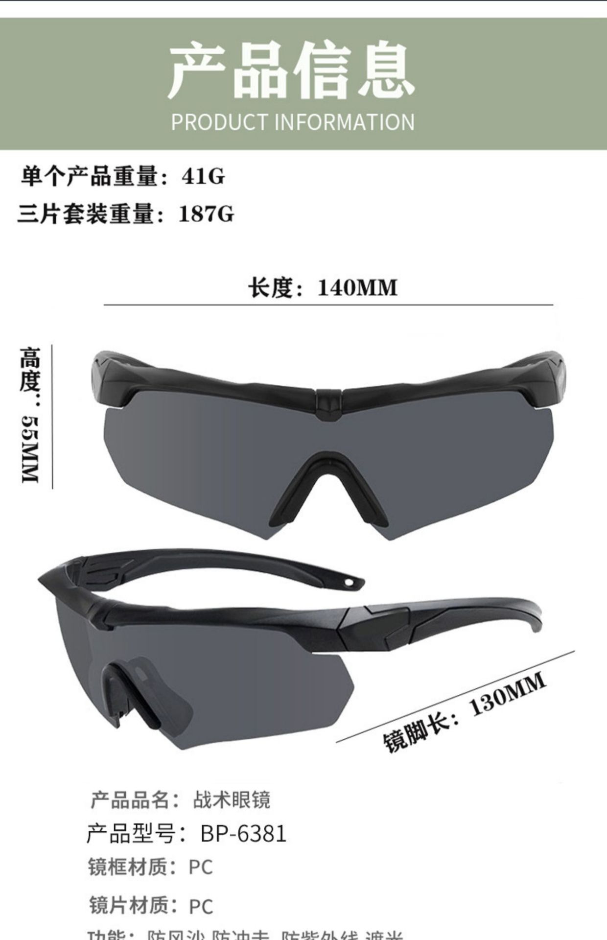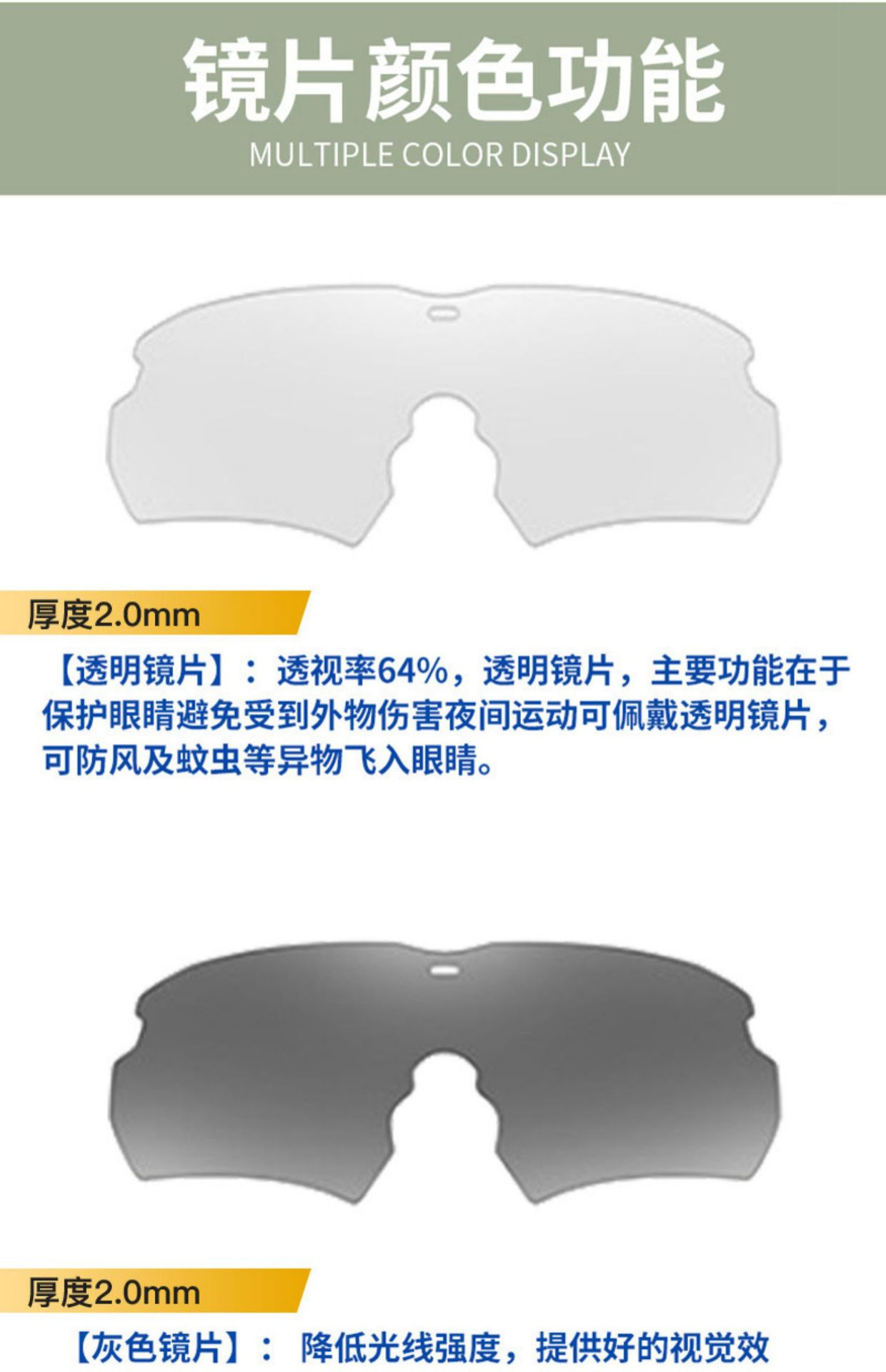 Черная рамка (упаковка из трех частей) Версия для ПК; Рамка цвета хаки (набор из трёх частей) Версия для ПК; Черная оправа (три штуки в упаковке), поляризованная версия; Оправа цвета хаки (в упаковке три штуки), поляризационная версия; Черная оправа (в упаковке шесть штук), поляризованная версия; Оправа цвета хаки (в упаковке шесть штук), поляризационная версия; Черная оправа, серая линза (одинарная); Прозрачная пленка с черной рамкой (одинарная); Черная оправа, желтая линза (один экземпляр); Черная оправа, серая пленка (антизапотевающая версия) (один экземпляр); Черная рамка, прозрачная (антизапотевающая версия) (один экземпляр); Черная оправа, прозрачные линзы, меняющие цвет на серый (один экземпляр); Хаки Прозрачный Фотохромный Серый (Один)