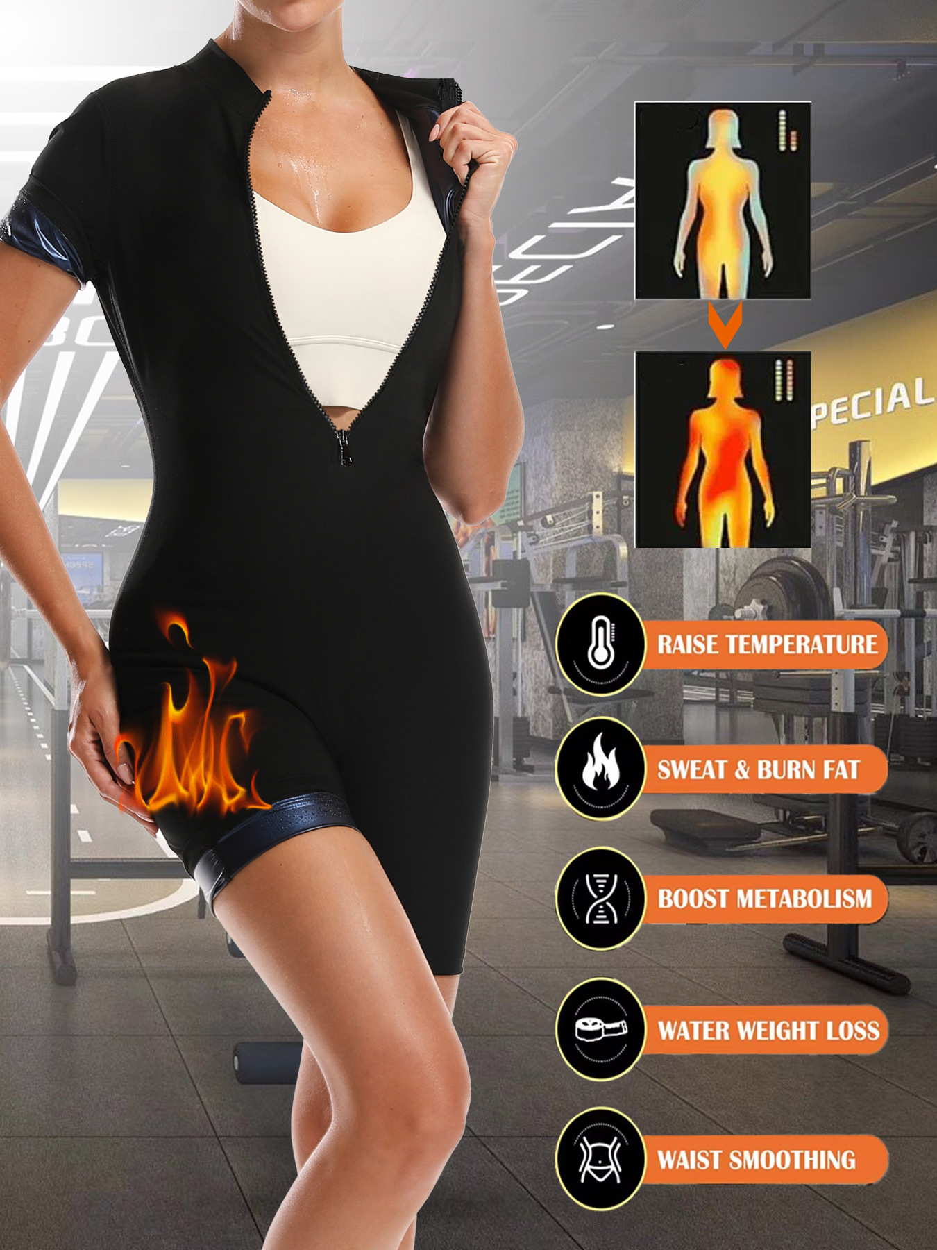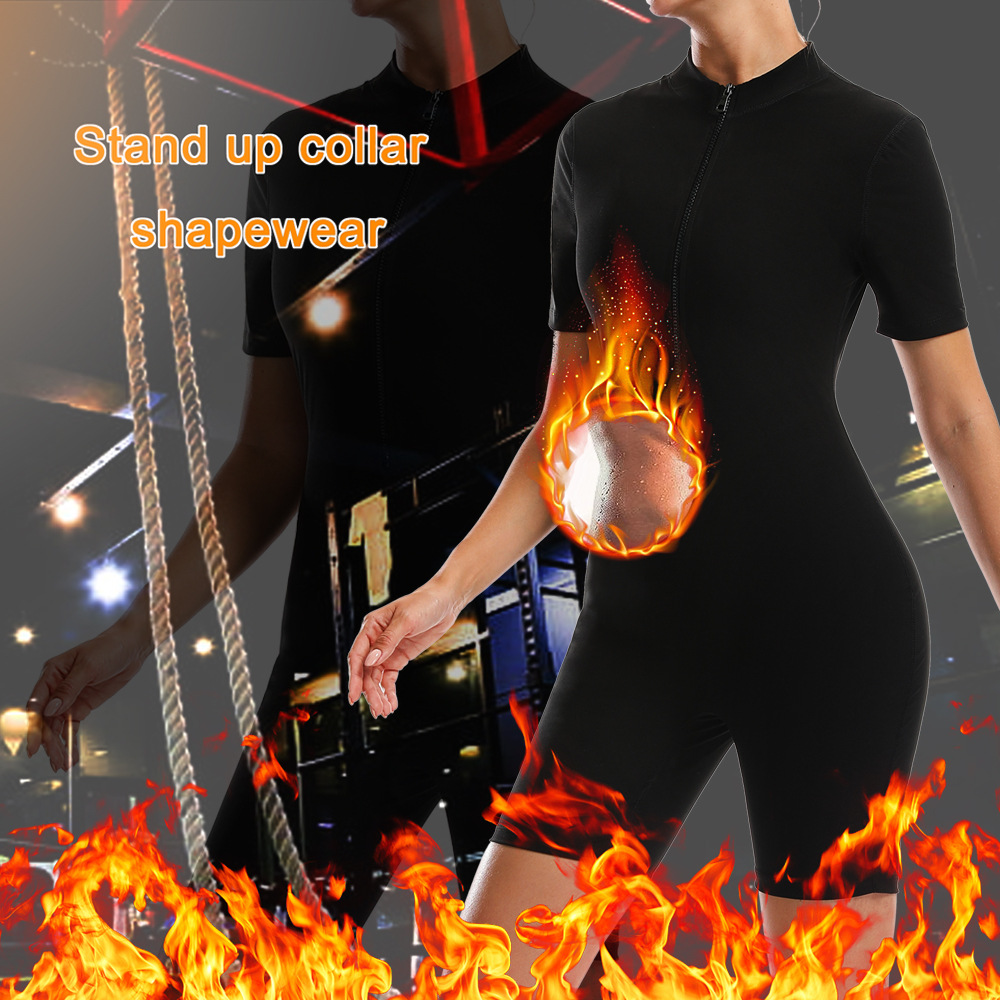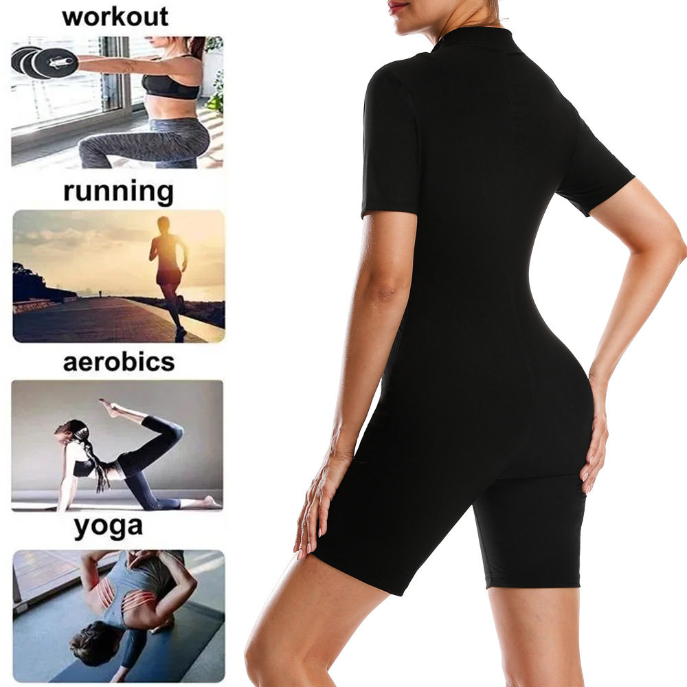 Хит продаж: корректирующий комбинезон для йоги с эффектом похудения, короткими рукавами, молнией, утягивающий талию, высокоэластичный, подтягивающий ягодицы