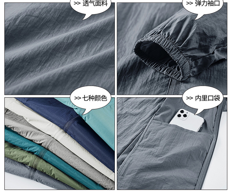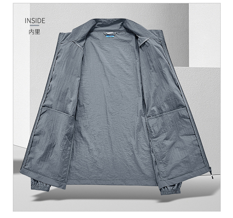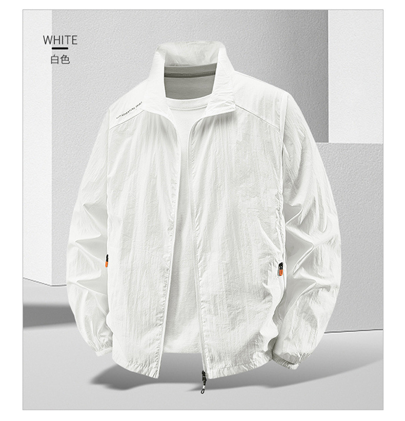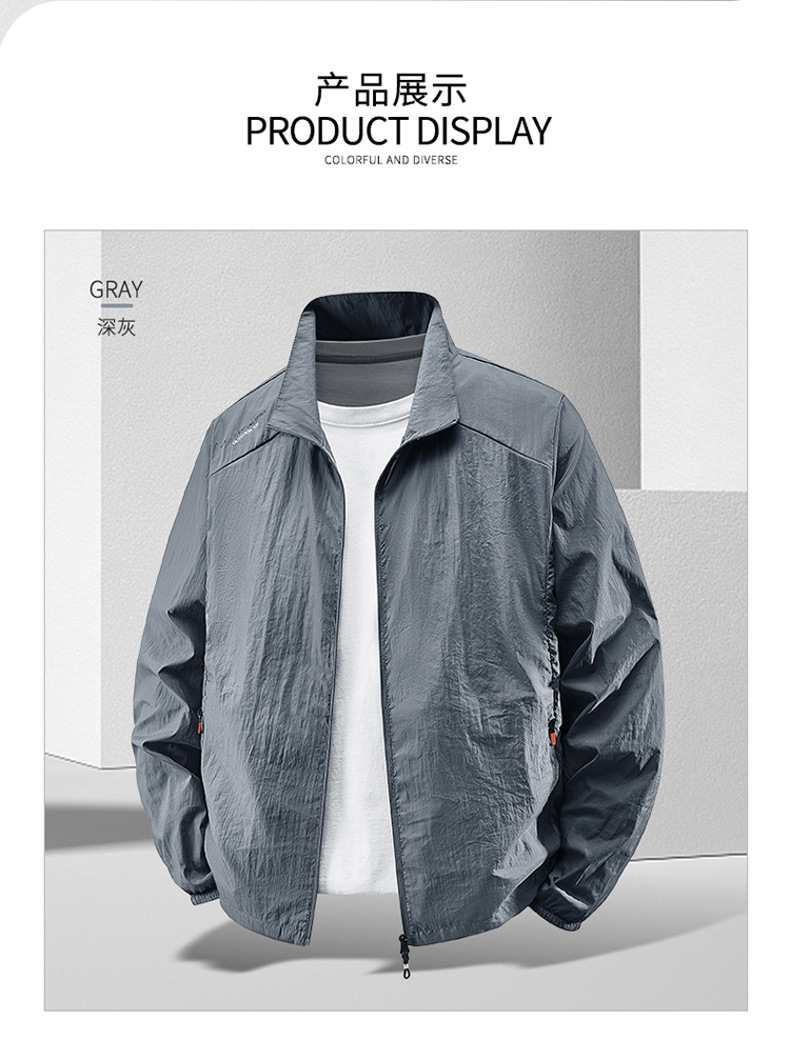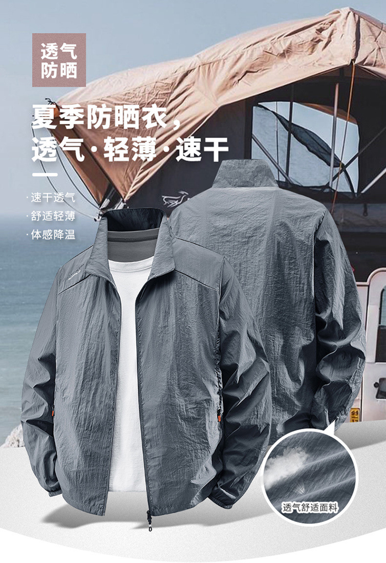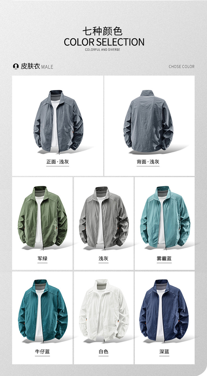 Солнцезащитная одежда для мужчин, одежда из ультратонкой кожи, дышащая быстросохнущая ветровка, красивый воротник-стойка, спортивная солнцезащитная верхняя одежда для занятий спортом на открытом воздухе.