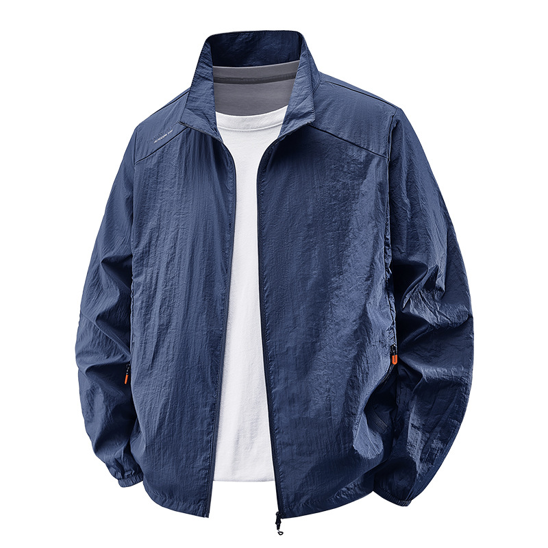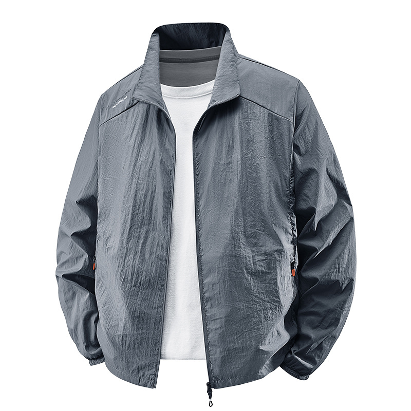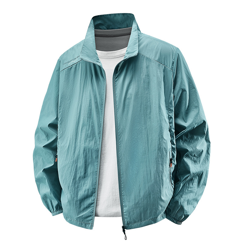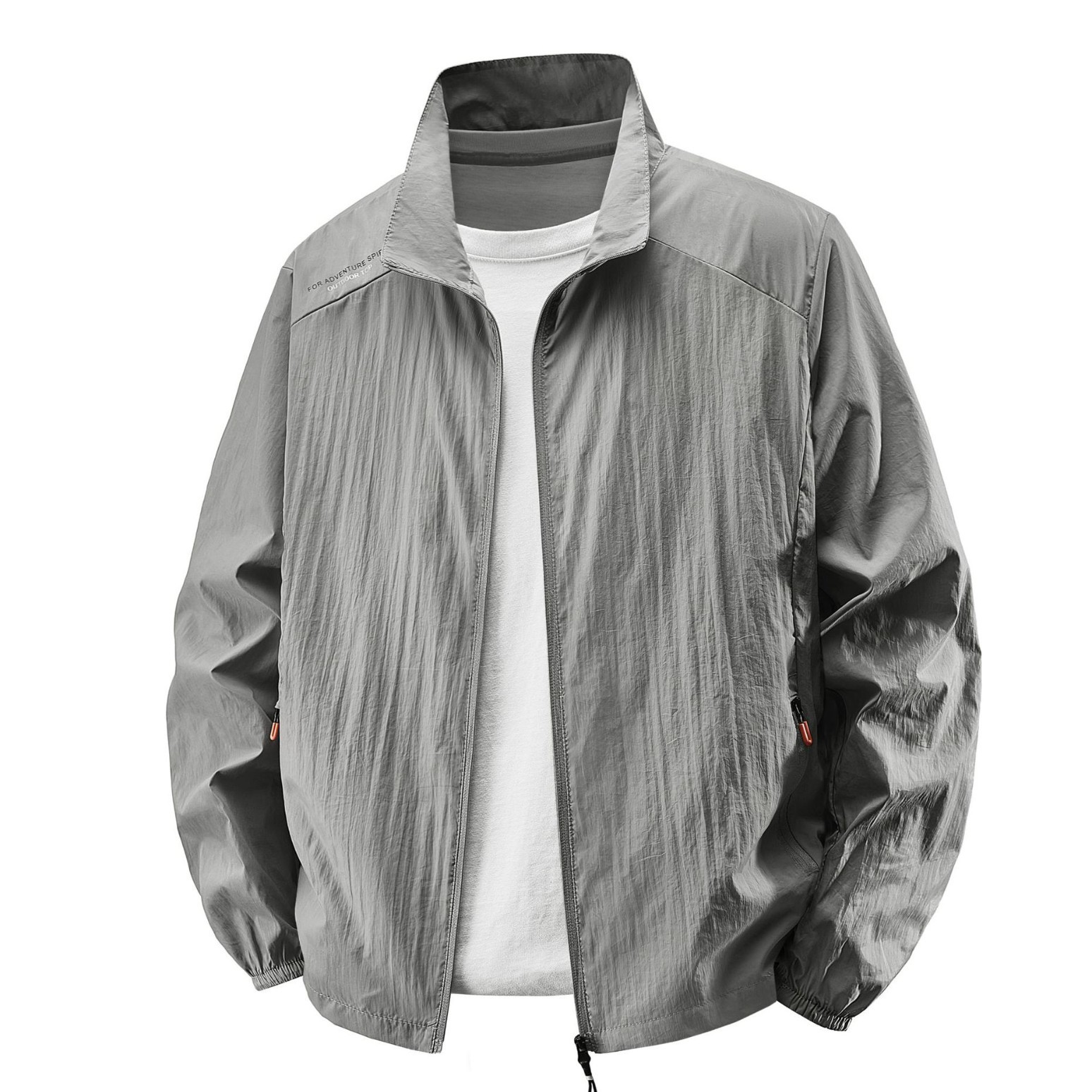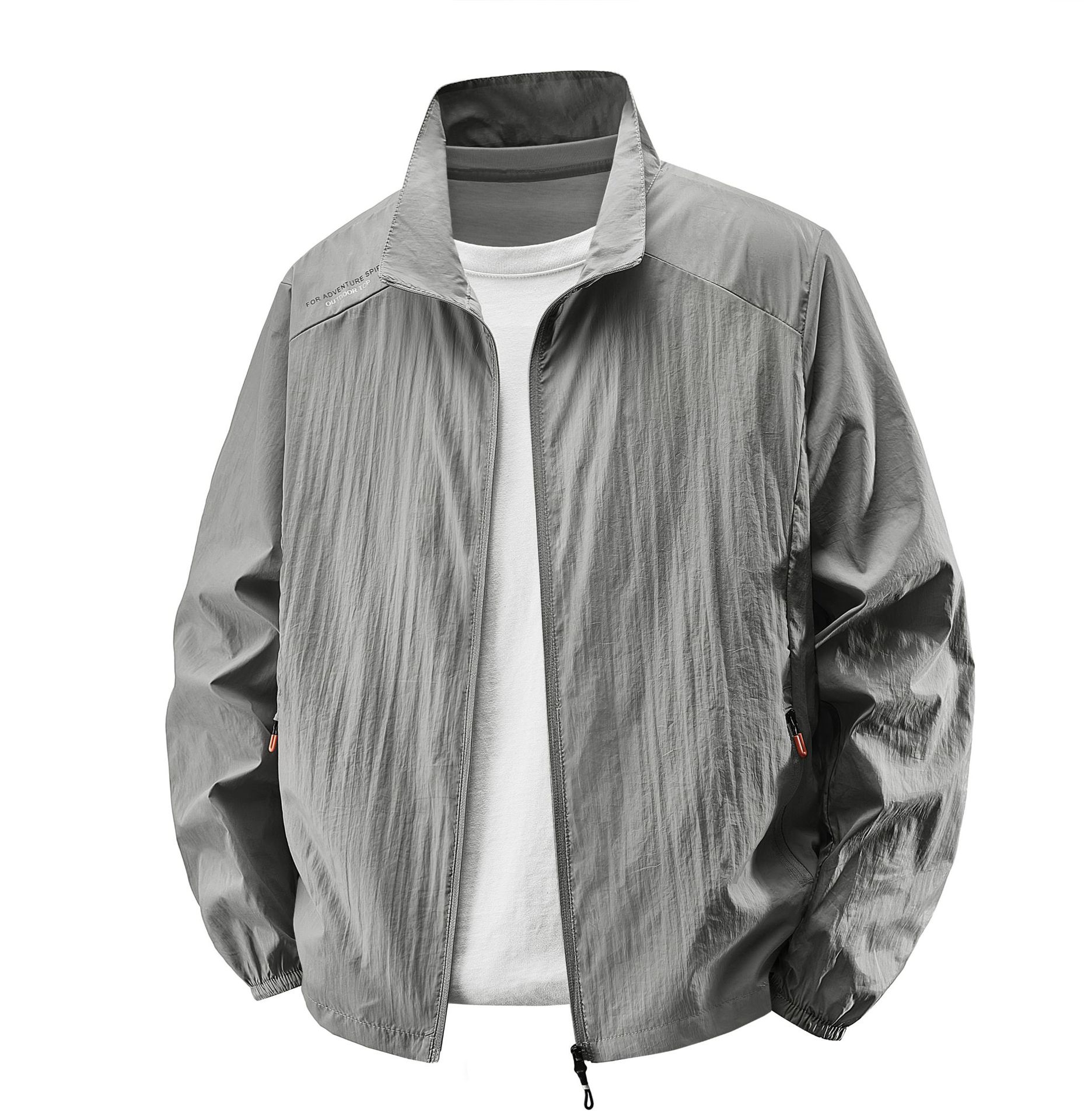 Солнцезащитная одежда для мужчин, одежда из ультратонкой кожи, дышащая быстросохнущая ветровка, красивый воротник-стойка, спортивная солнцезащитная верхняя одежда для занятий спортом на открытом воздухе.