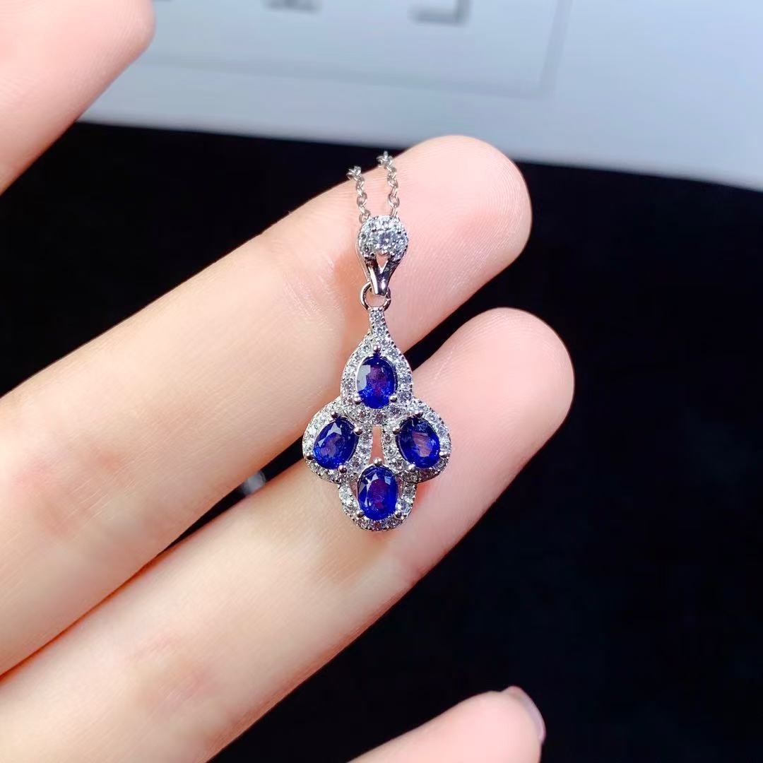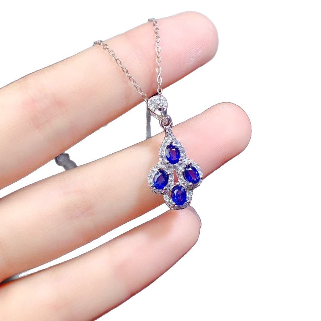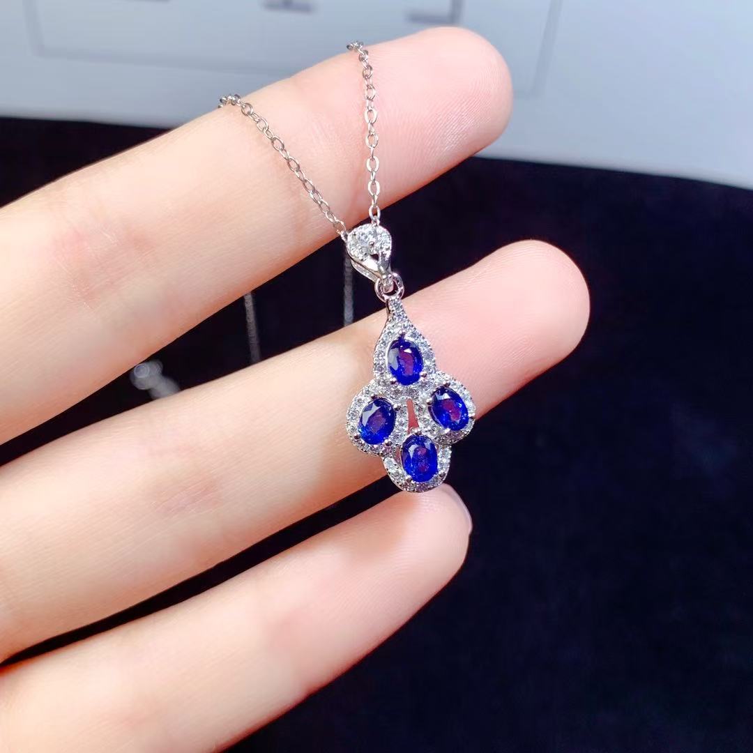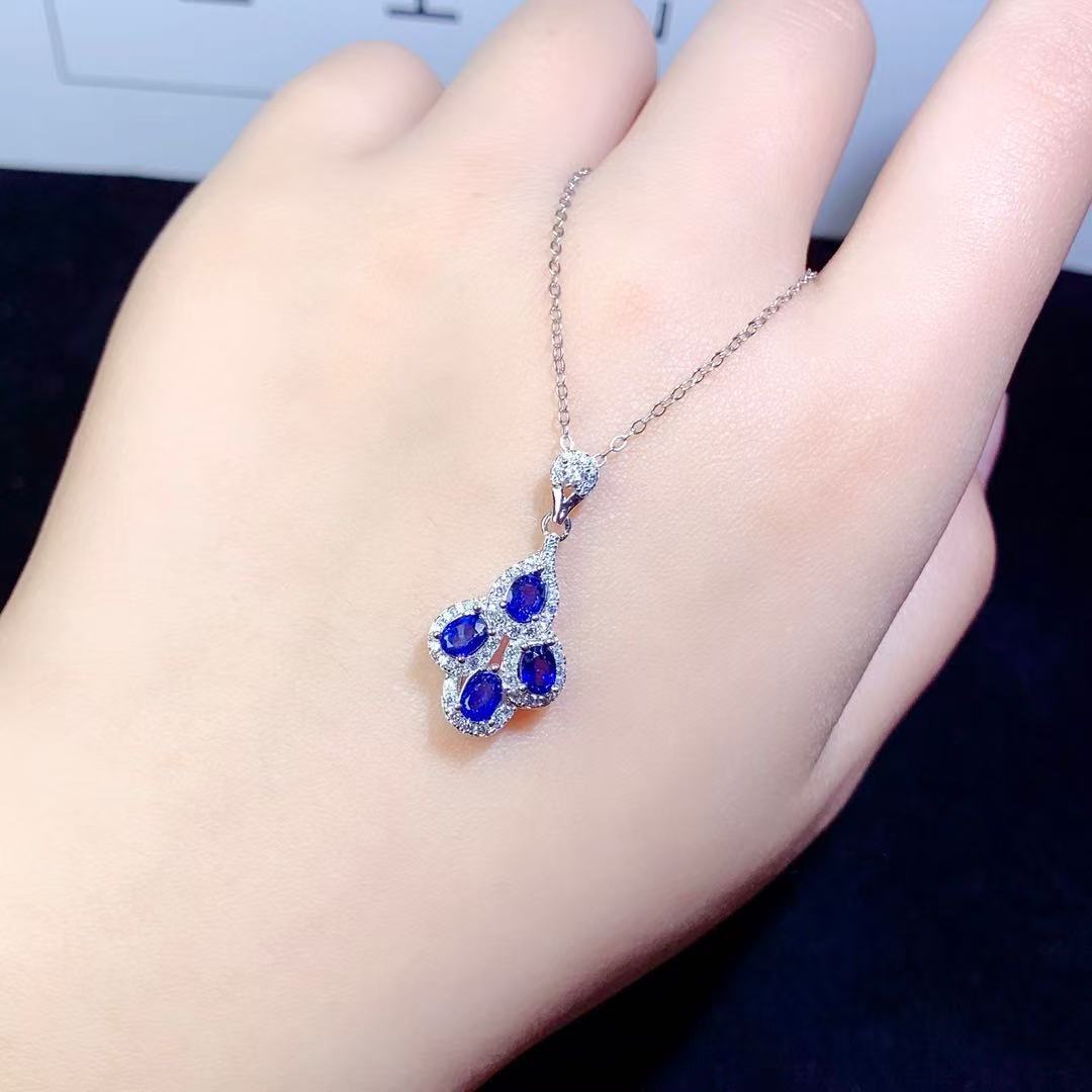 Подвеска из натурального сапфира, стерлинговое серебро 925 пробы, инкрустация, хит продаж, модная, самая простая для сочетания, ювелирные изделия из драгоценных камней, цепочка на ключицу