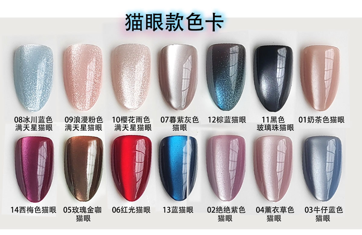 Кошачьи глаза цвета чая с молоком; Лавандовый кошачий глаз; Джинсовый синий кошачий глаз; Романтический розовый гипсофила «кошачий глаз»; Лезерк синий гипсофила кошачий глаз; ледяной синий; Абсолютно фиолетовые кошачьи глаза; красный; фасолевая паста розовая; красный свет кошачий глаз; Сакура Rain Color Gypsophila Cat Eye; черный; Мягкий туман фиолетовый; карамельный цвет; Кляйн синий; Элегантный фиолетовый; ковбойский синий; красный бархат; Французское желе; Французский таро голый; Французский молочный абрикос; Порошок французской фасоли; темно-синий; цвет мокко; Крема «кошачий глаз» синего цвета; Цвет мокко позолоченный французский стиль; Позолоченный бордовый кошачий глаз; Позолоченный призрак синий кошачий глаз; Сумеречный фиолетовый серый кошачий глаз; Хали Французский; Шоколад Хайли черный; Розовое золото, коричневый кошачий глаз; синий кошачий глаз; Тень-бабочка из красного золота; Коричневые и синие кошачьи глаза; водный красный желейный цвет; Теплый и однотонный белый; снежная гора белая; чили красный; розовое желе; кофе, молоко, чай; красные волны; Сплошное дно в французском стиле; Виртуальный французский край; Королевский синий с позолотой в французском стиле; Однотонный набор, 8 цветов в коробке.; Нежное мерцание, позолоченное кошачье глаз.; Кошачий глаз с покрытием из розового золота; Телесный розовый·позолоченный кошачий глаз; Синий розовый золотой кошачий глаз; Сушка кошачьего глаза; Половина таро телесного цвета; резиновый розовый; розовый градиент; Теплый коричневый градиент