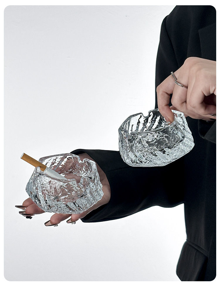 Стеклянная пепельница Glacier, стильная, элегантная, стильная ловушка для дыма, офисная, гостиная, домашняя, креативная пепельница с защитой от летучей золы