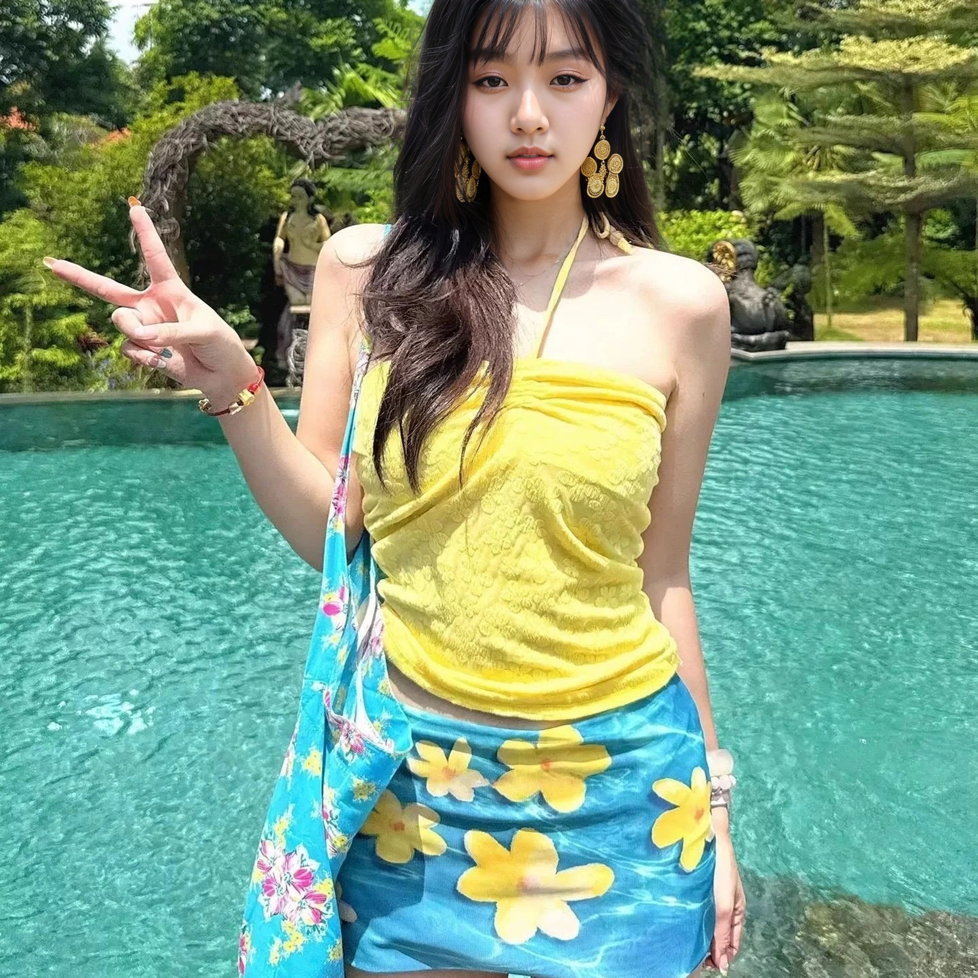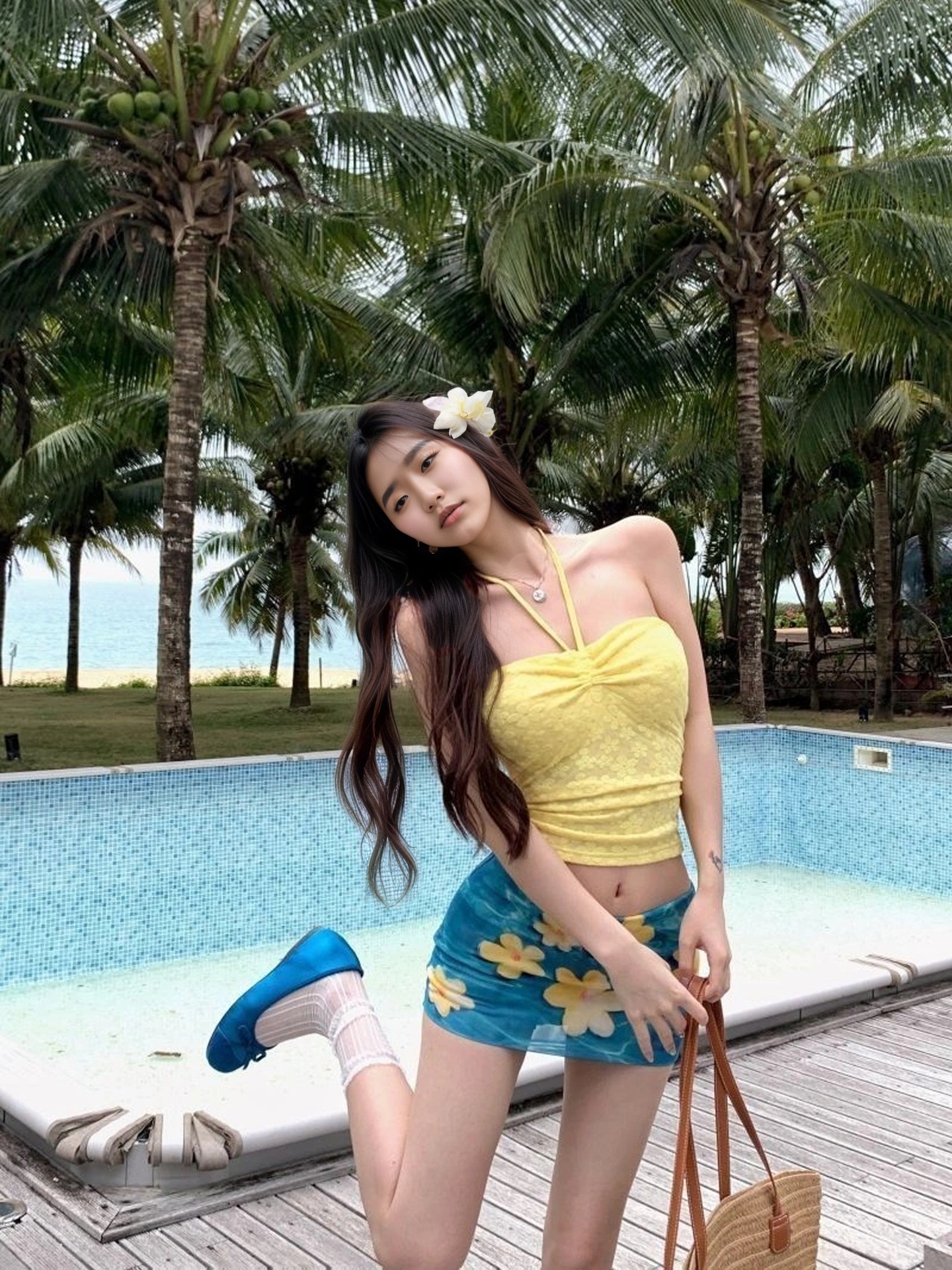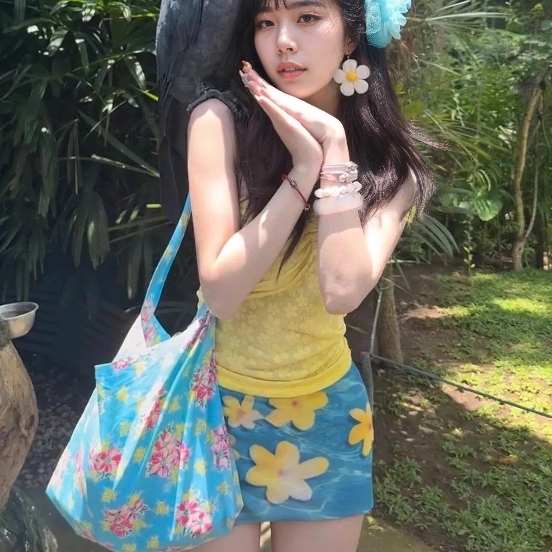 Купальник Sea Holiday Wind сплит набор французский тряпка топ женский летний синий цветок студенческий купальник