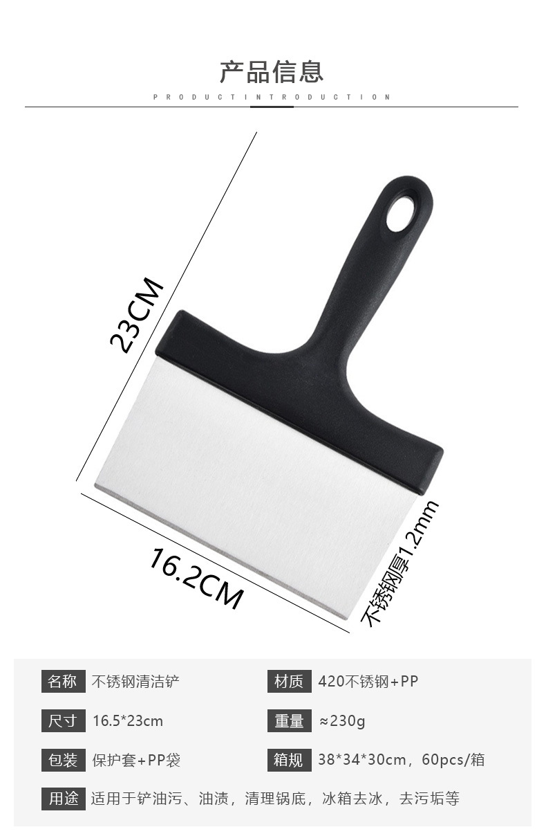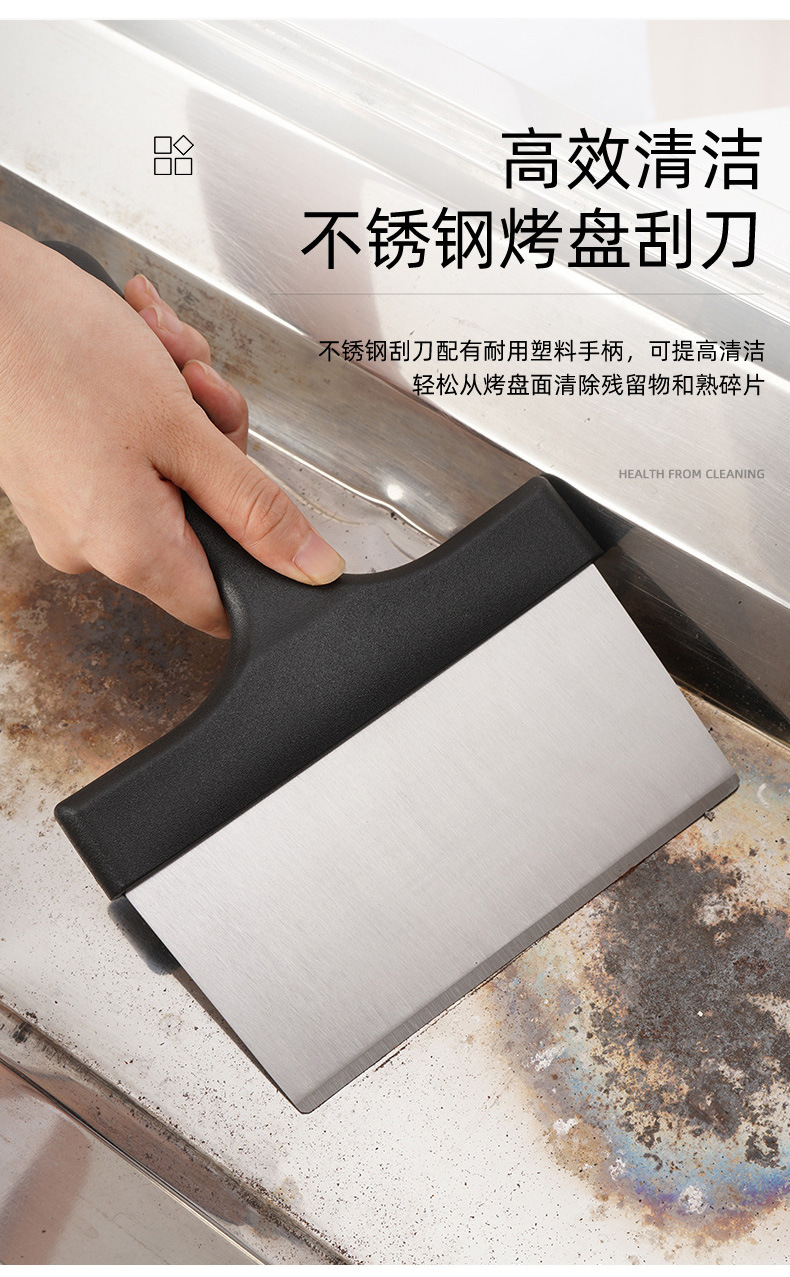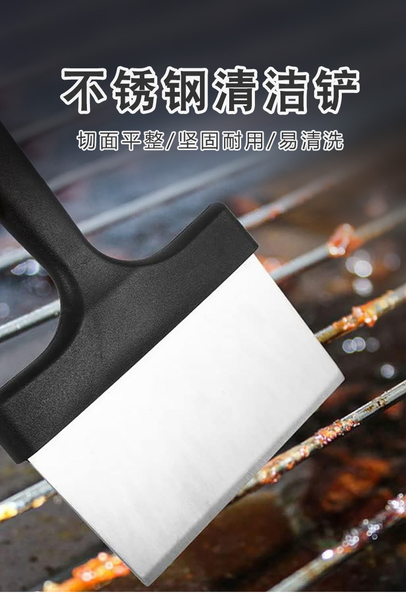 不锈钢烧烤清洁铲bbq清洁工具 铲柄铲油渍刮刀多功能烧烤台清洁铲