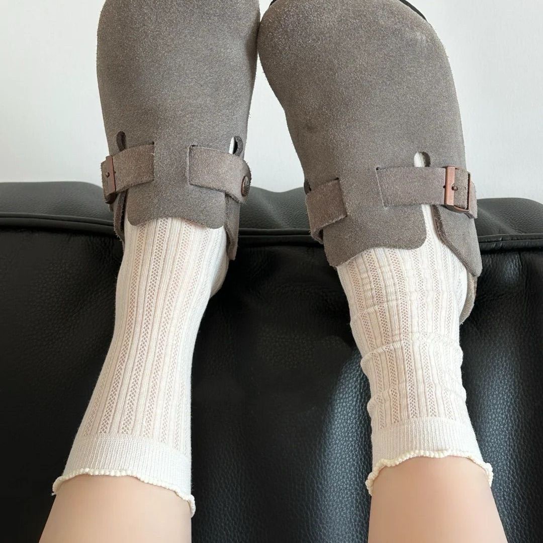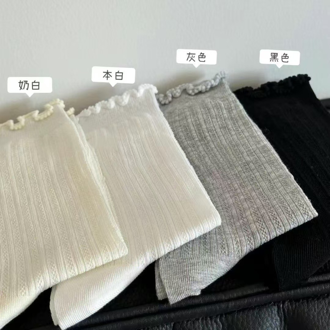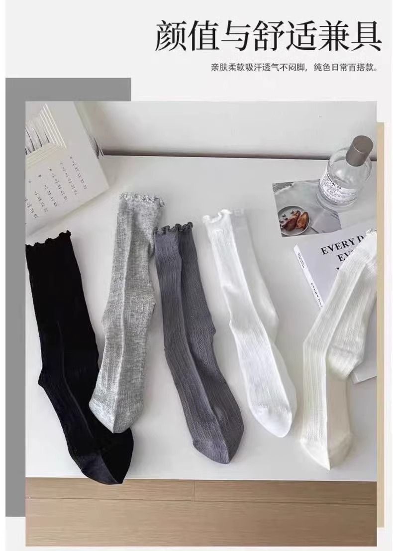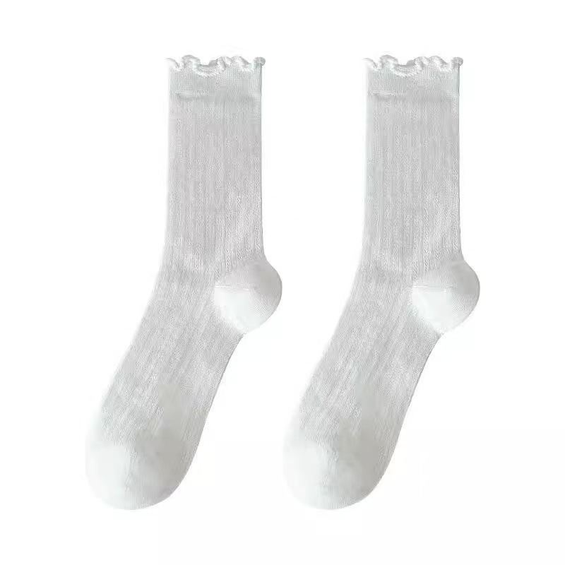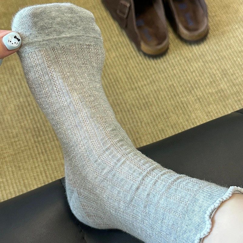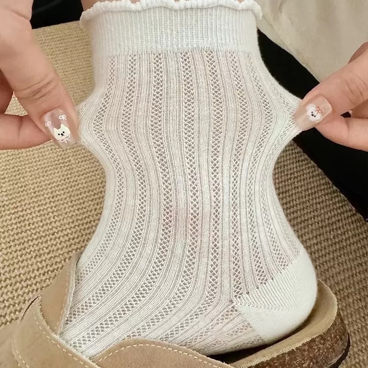 Летние тонкие носки для женщин, однотонные носки до середины икры с полой сеткой, белые дышащие кружевные носки без запаха для девочек.