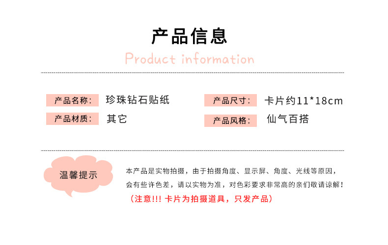 1 # Жемчужная капля с бриллиантами; 2 # Средняя алмазная наклейка; 3 # Большая ромбовидная наклейка; 4 # Средняя жемчужная наклейка; 5 # Большая жемчужная наклейка; 6 # Алмазная наклейка с бабочкой; 7 # Круглая жемчужная алмазная наклейка; 1 # Набор из двух предметов «Бабочка» с бриллиантом и жемчугом среднего размера; 2 # Комплект из двух частей: большой жемчуг + большой бриллиант; 3 # Набор из 2 предметов «Средний жемчуг + Средний бриллиант»; 4 # Набор из двух предметов «Бабочка» с бриллиантом и жемчужным бриллиантом; 5 # Набор из двух предметов «Бабочка» с бриллиантом и круглым жемчужным бриллиантом; 6 # Сказочный набор из 3 предметов; 7 # Универсальный набор из трех предметов.