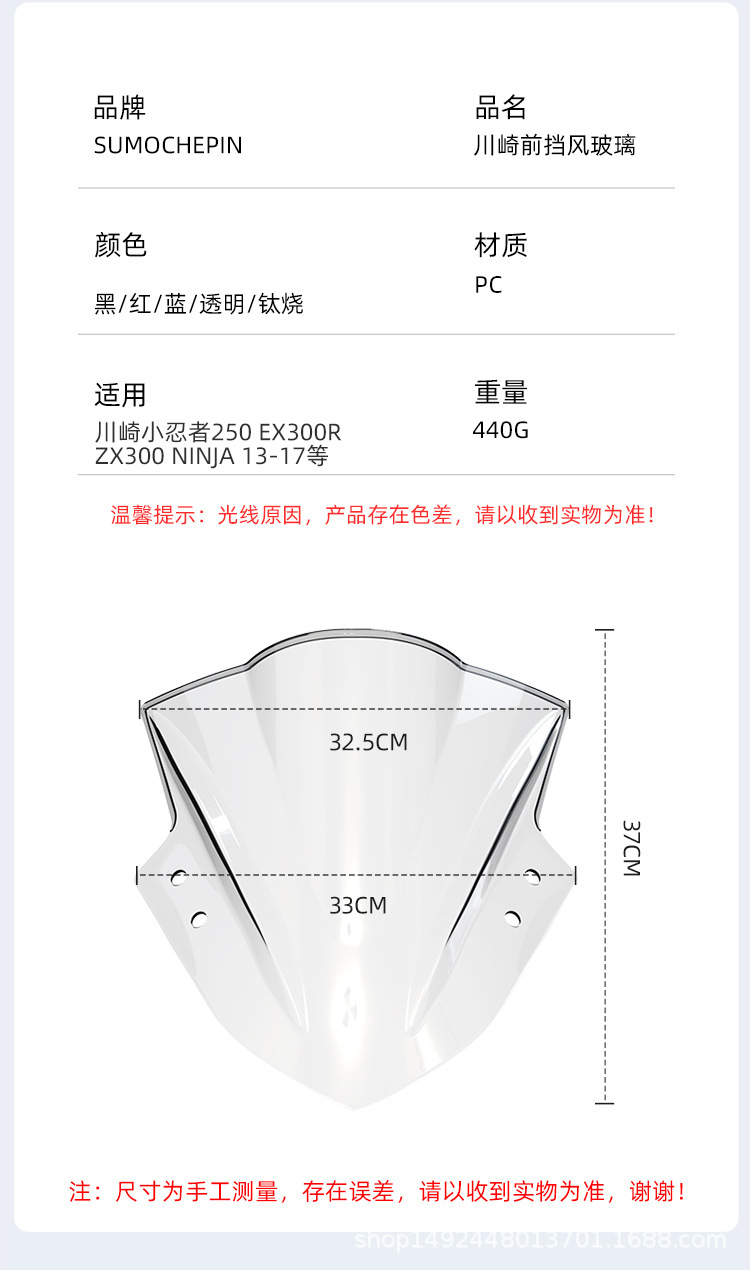 Подходит для мотоциклов Kawasaki Ninja 250/EX300R/ZX330/NINJA, переднее ветровое стекло, защитная пленка.