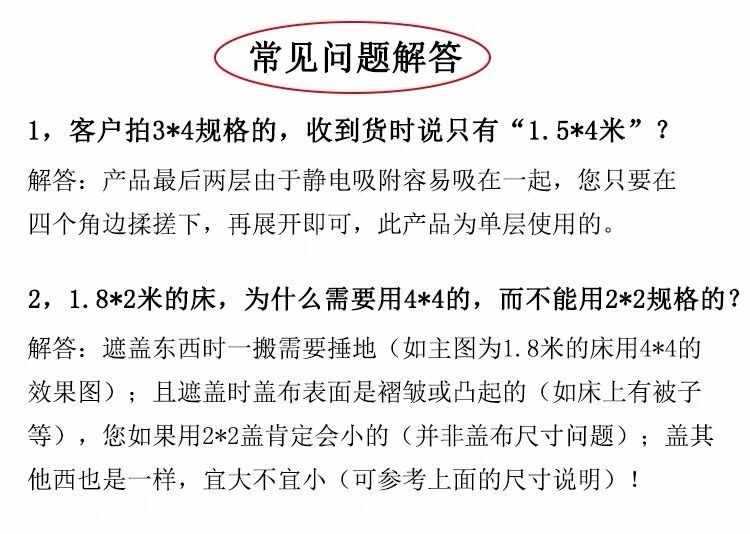 1m * 1m (подходит для мелких предметов); 1m * 2m (подходит для всех видов мелкой бытовой техники); 2m * 2m (подходит для небольшой мебели, такой как столы); 2m * 3m (подходит для телевизора-холодильника); Длина 2m * 4m (подходит для телевизионного шкафа); 3m * 3m (подходит для больших предметов); 3m * 4m (подходит для кроватей ниже 1.5m лет); 4m *4m (подходит для кроватей 2.2m и 1.8m); 4m * 5m (подходит для двойного большого гардероба); 4m * 6m (подходит для дивана L-образной формы); 4m * 8m (подходит для общего покрытия украшения)