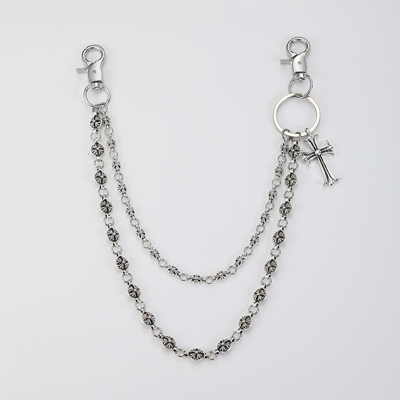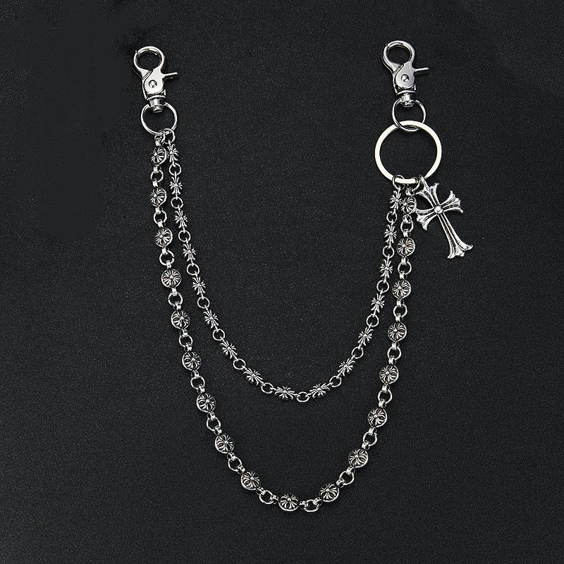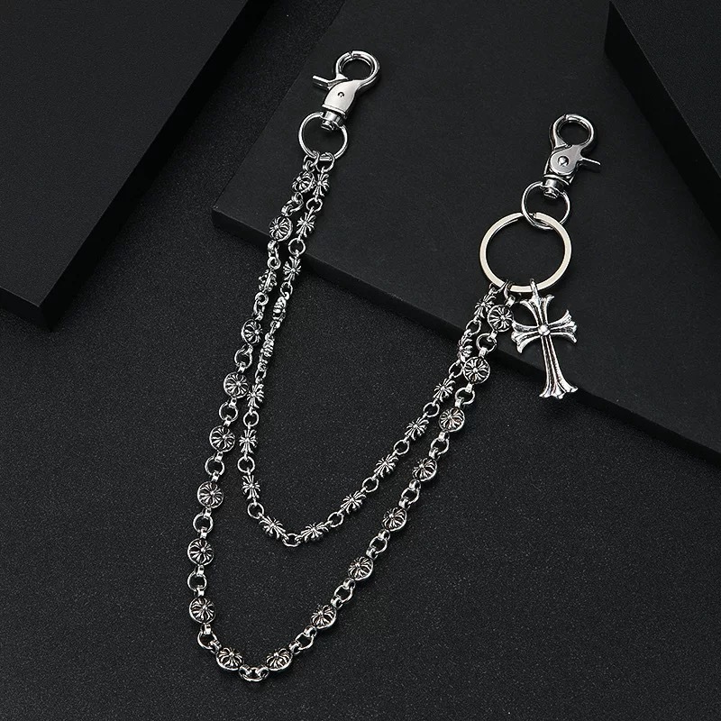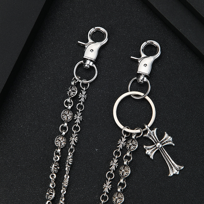 Модная цепочка для сумки в темном стиле, универсальная, с бусинами-мечами и крестиками, поясная цепь для джинсов, трендовая мужская цепочка