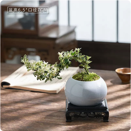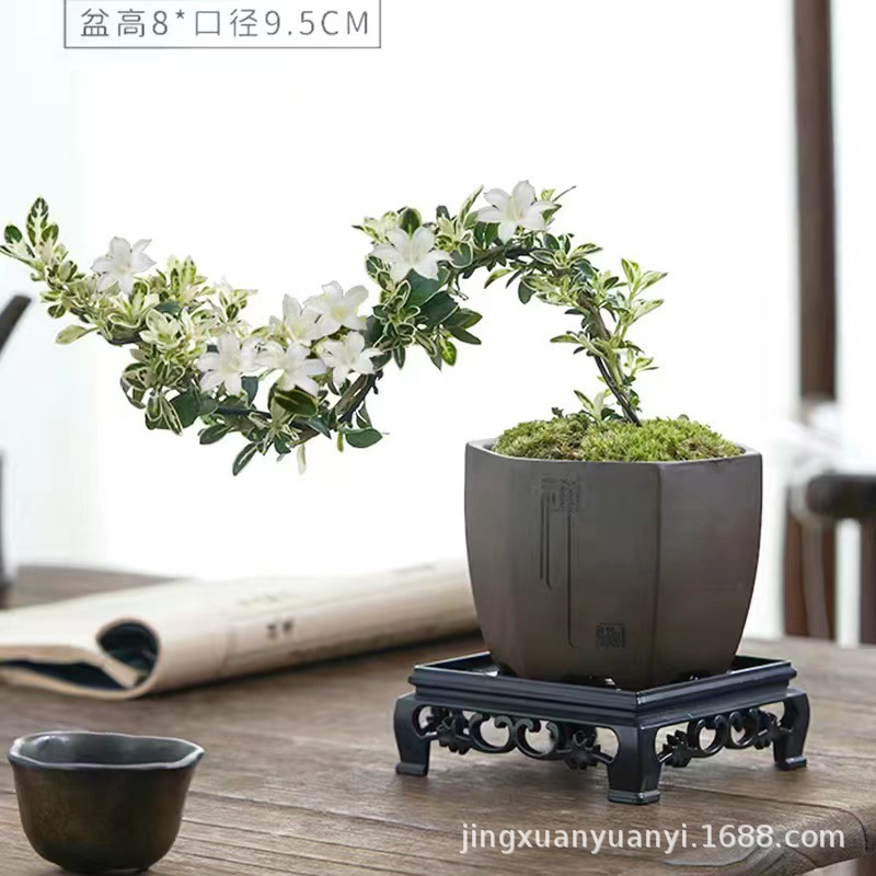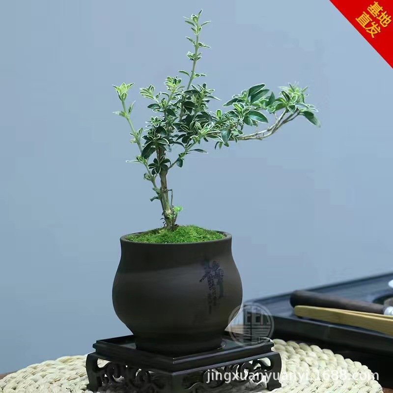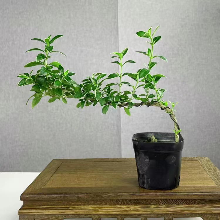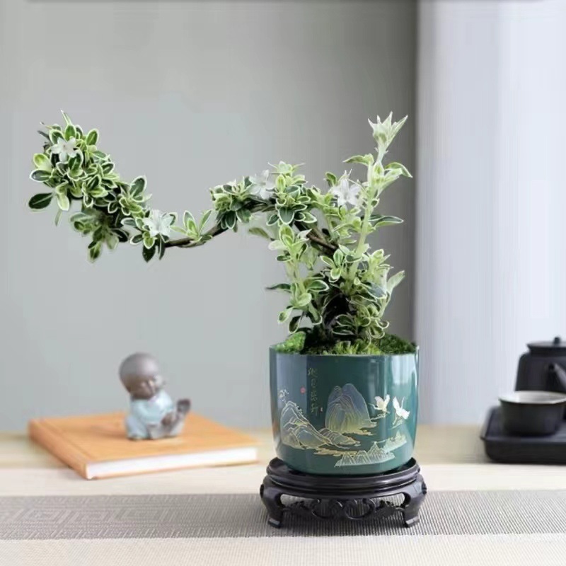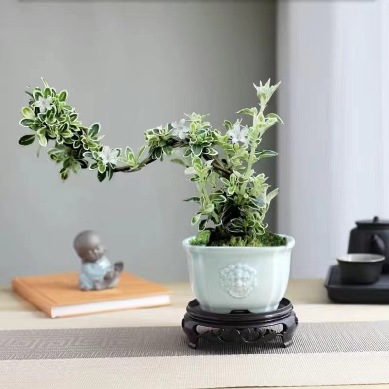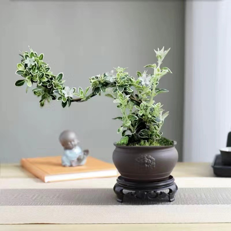 Маленькое горшечное растение «Летняя снежная скала» с золотистыми краями, приподнятыми корнями и цветущим старым корнем, бонсай в стиле дзен, настольные офисные цветы