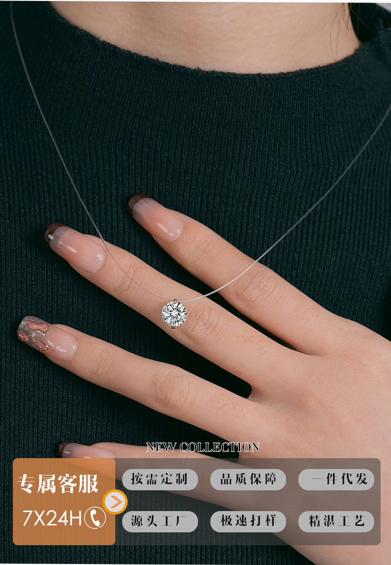 Ожерелье из стерлингового серебра 925 пробы с муассанитом «Слезы русалки», универсальная цепочка на ключицу, изысканная ниша, прозрачная невидимая модная рыболовная леска