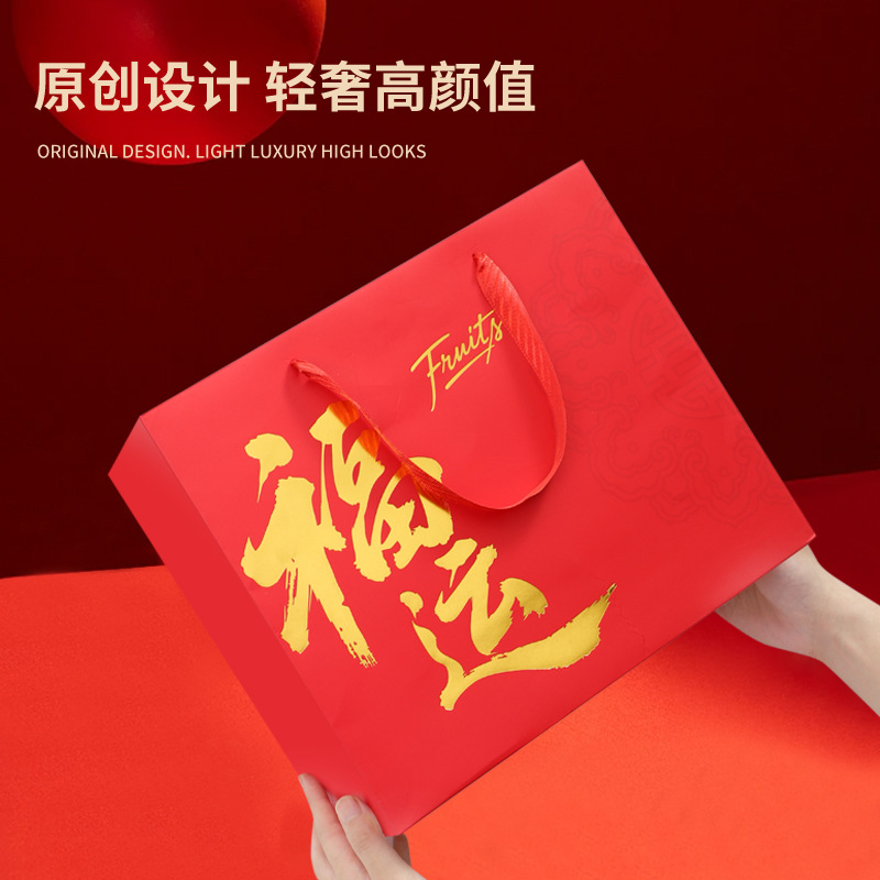Элитная подарочная коробка-сумка с золотым тиснением для фруктов (апельсины, яблоки), универсальная пустая подарочная коробка оптом