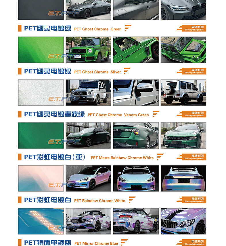 Автомобильная гальваническая серия, литейная ПВХ-пленка, меняющая цвет, зеркало на основе ПЭТ, ультраматовое гальваническое покрытие без «апельсиновой корки», сверхпроводящий газ, прямая продажа.